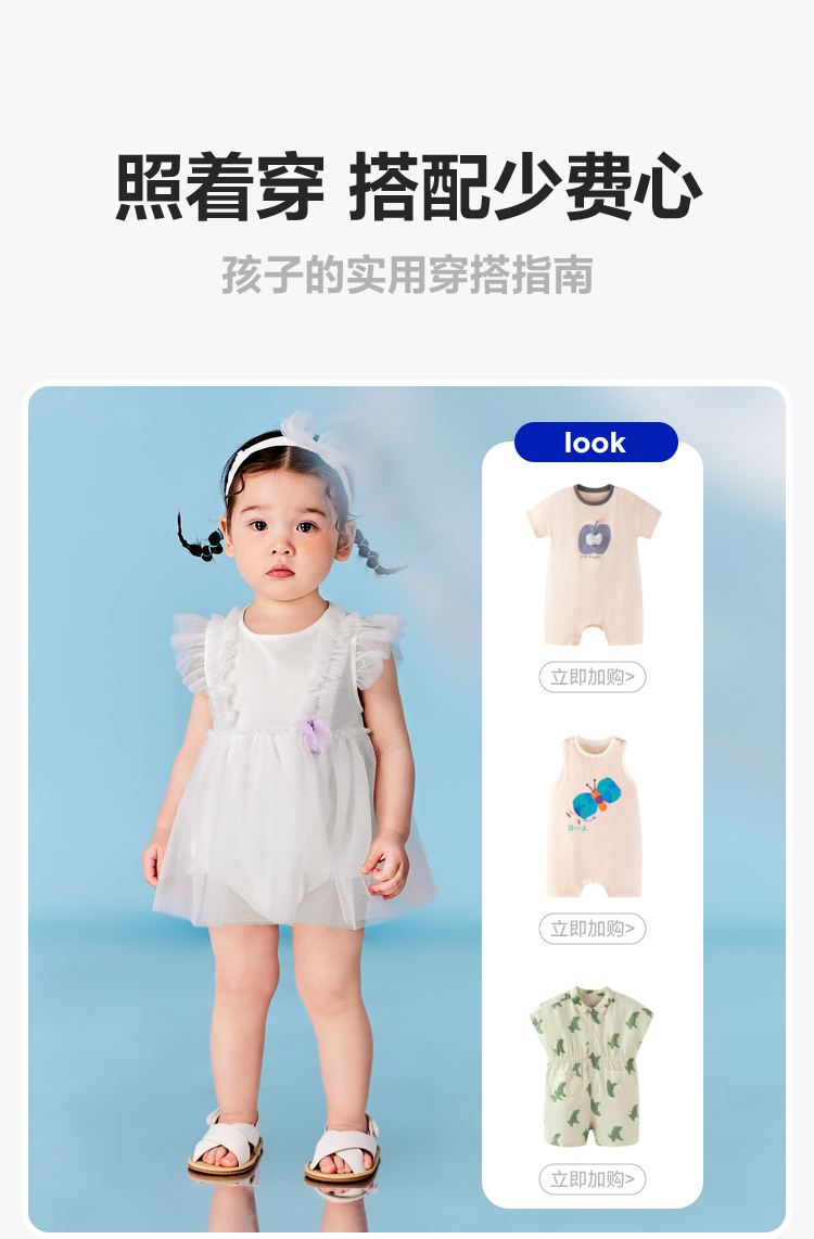 迷你巴拉女童天丝柔软三角衣婴儿宝宝甜美可爱连体衣夏季新款