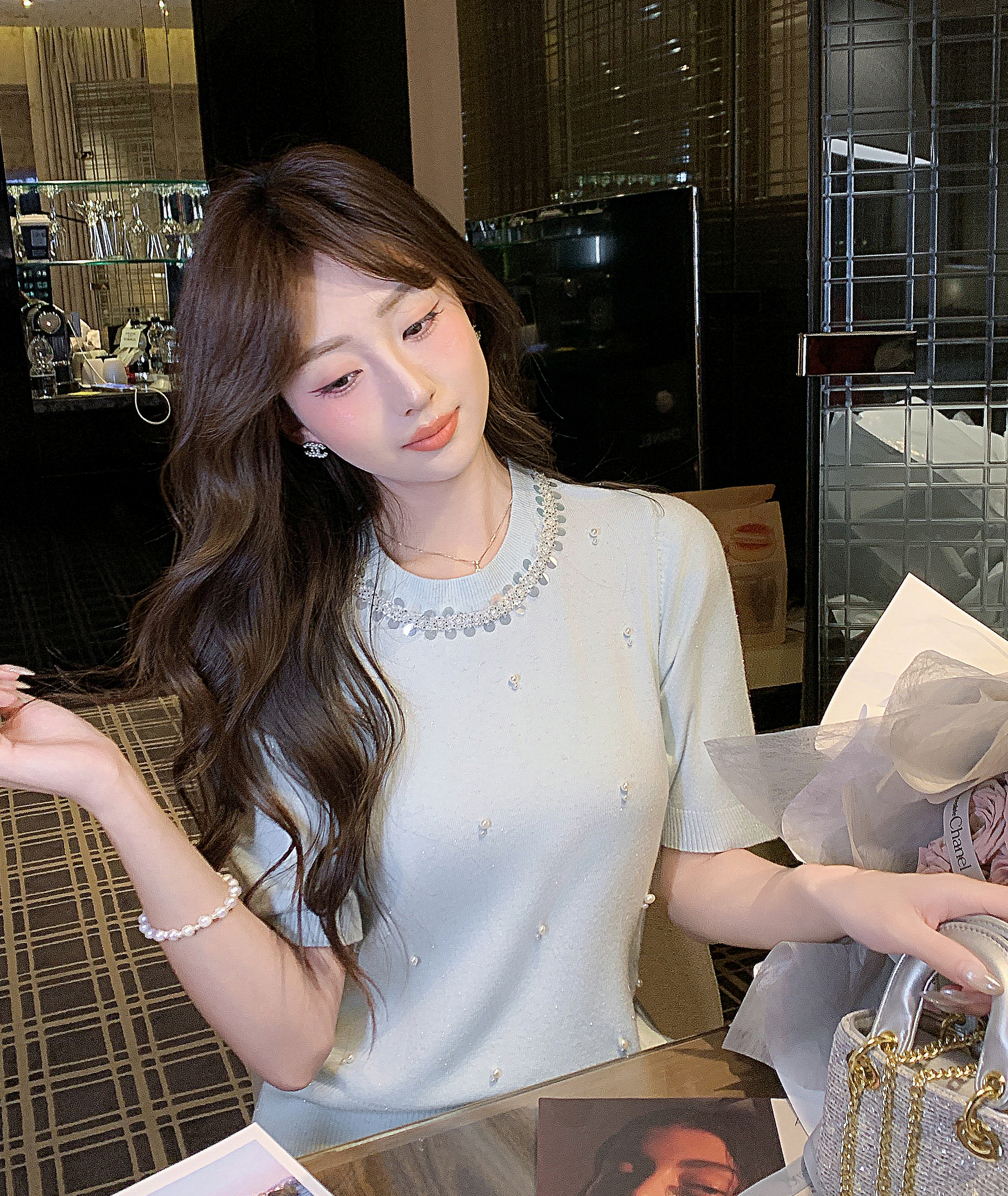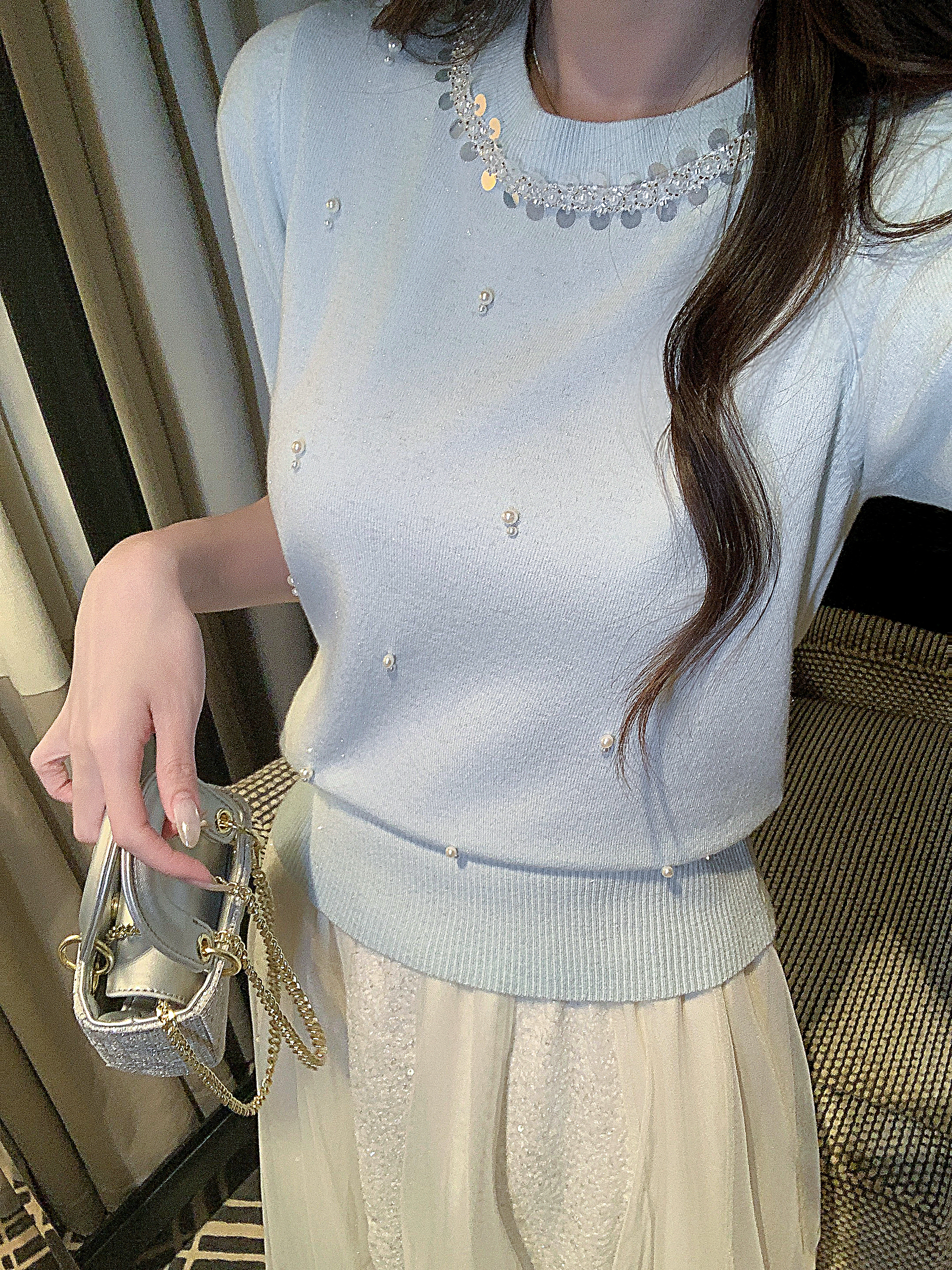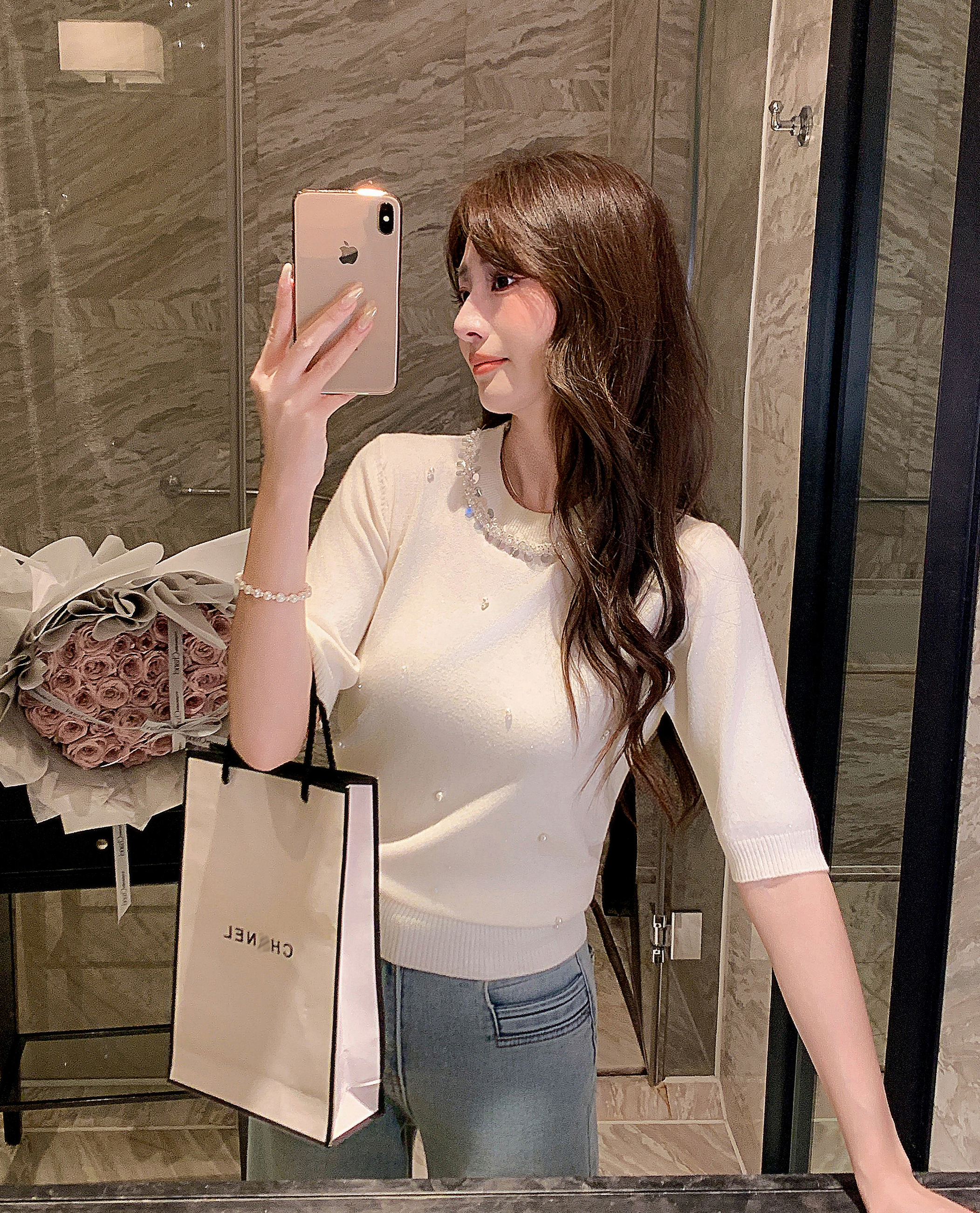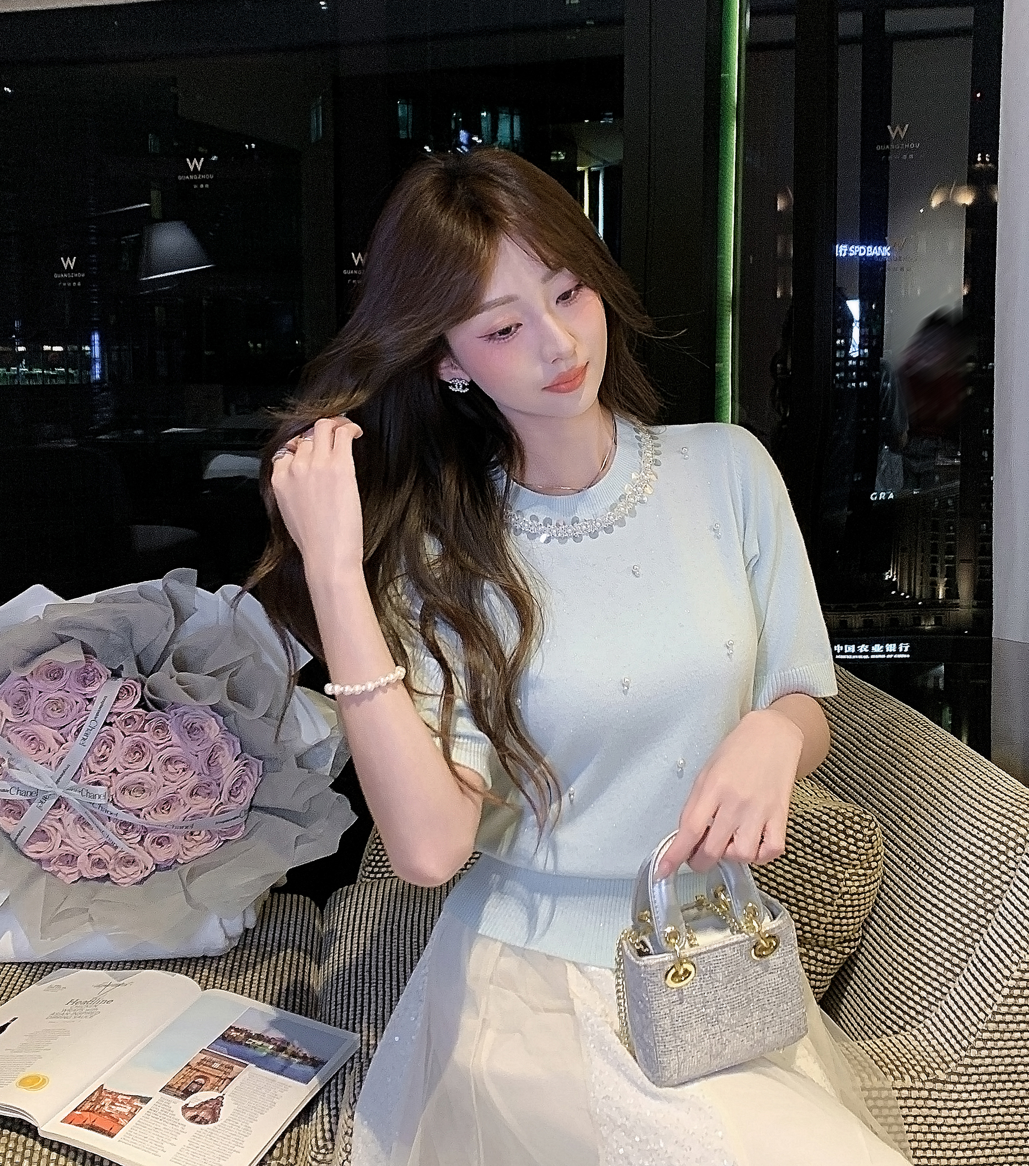张心子【心动赴约】圆领软糯亲肤钉珠针织衫上衣 U2602041