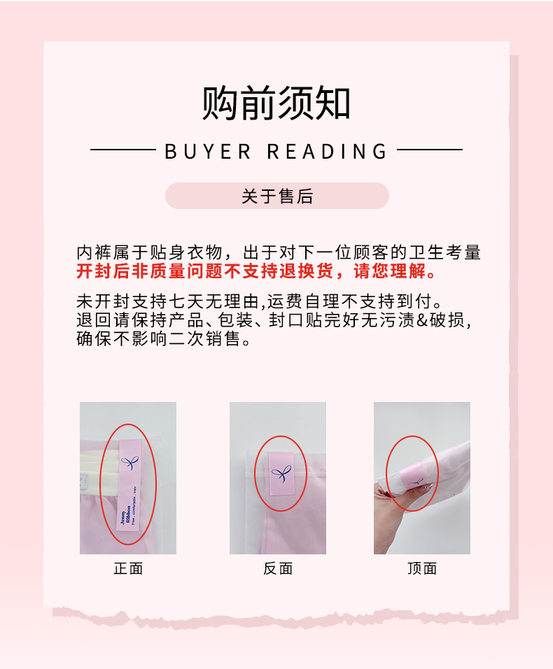 底裤🩲贴身穿着,从卫生角度考量,拆封后无质量问题,不接受七天无理由退换