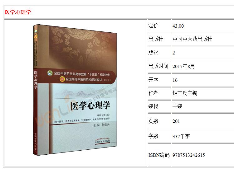 医学心理学 十三五规划教材 钟志兵主编 中国中医药出版社 9787513242615