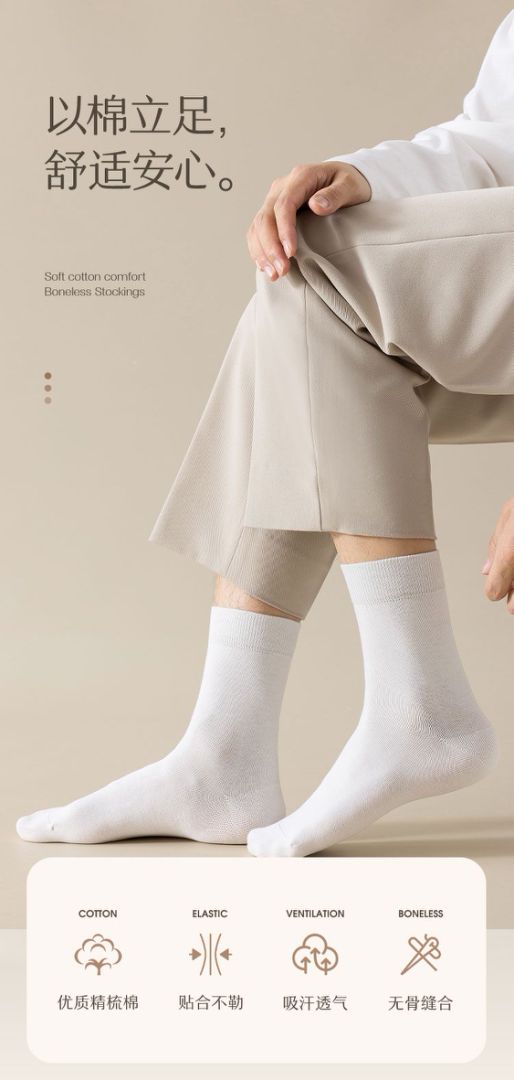 男士抗菌棉质中筒四季袜黑色1双/份