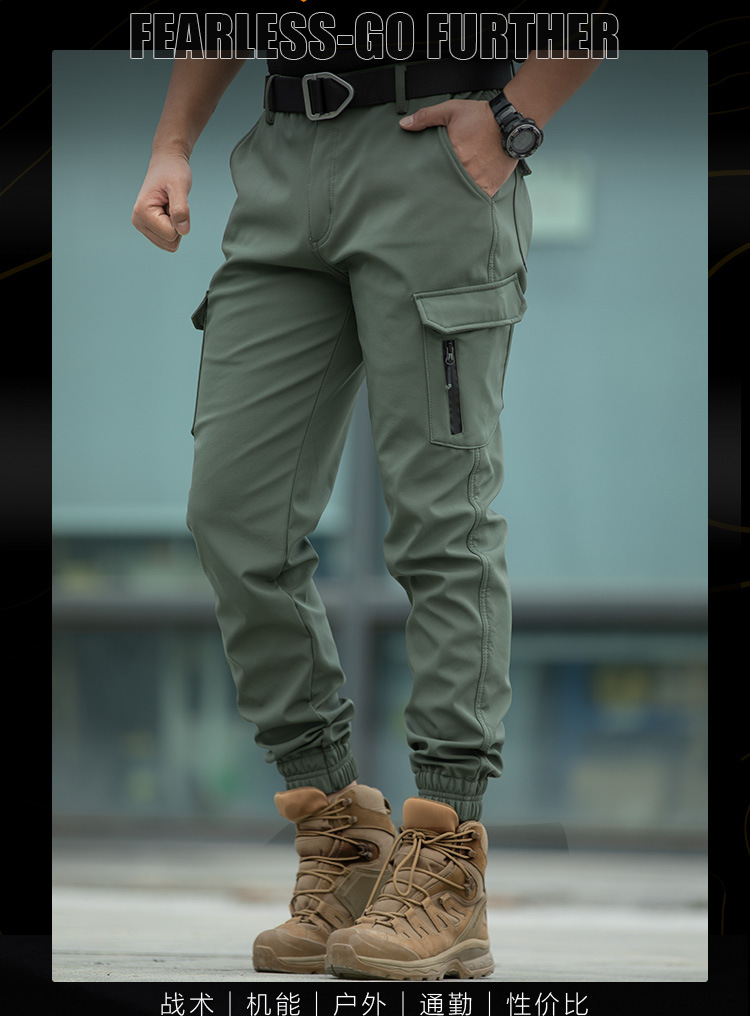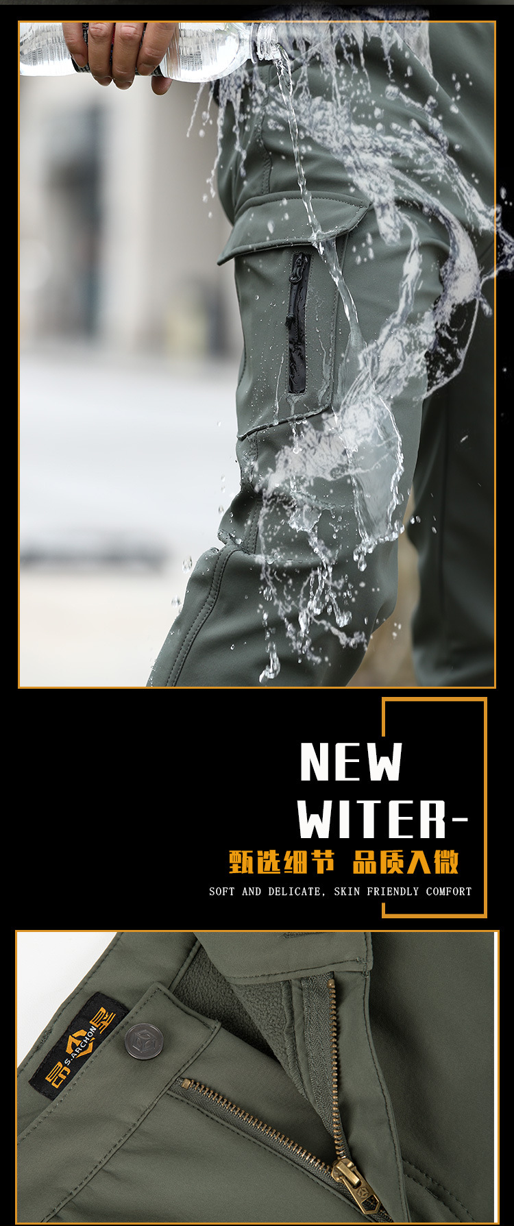 【新品】昂垦加绒束脚裤男款秋冬户外休闲裤机能迷彩工装裤登山宽松冲锋裤