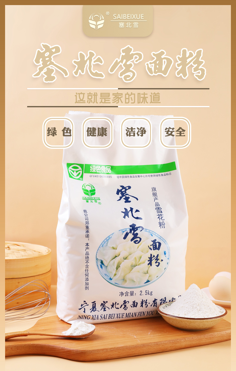 塞北雪雪花家用高筋小麦粉面包粉烘焙专用包子饺子馒头2.5kg*4