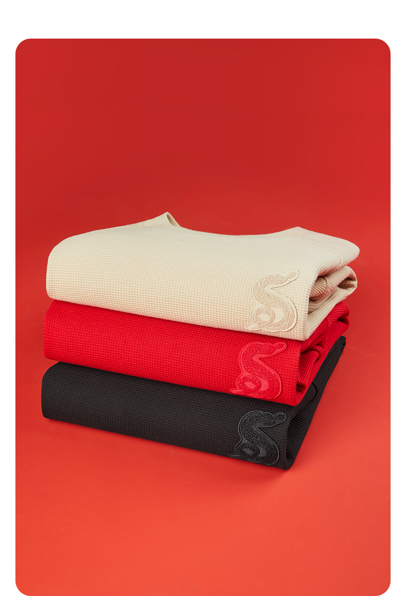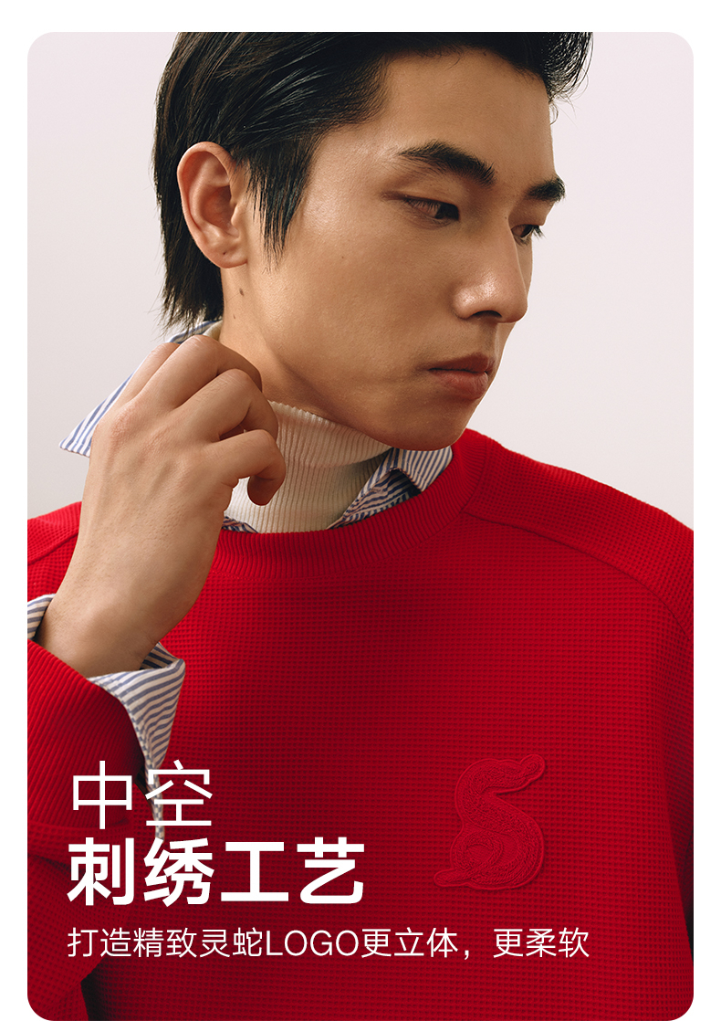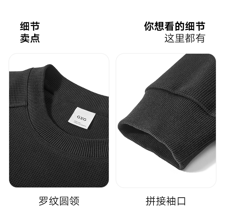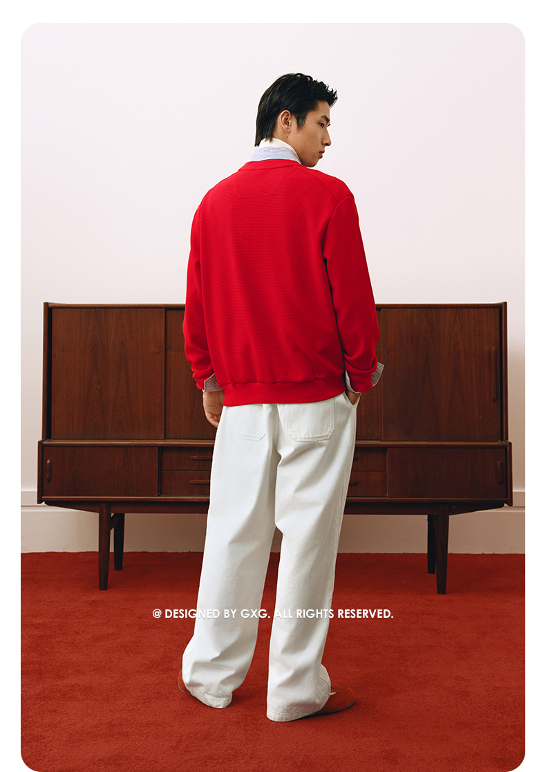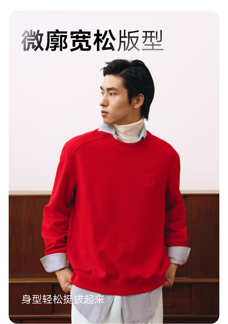 GXG男装 圆领多色肌理卫衣红色长袖上衣新年卫衣 2025春季热卖