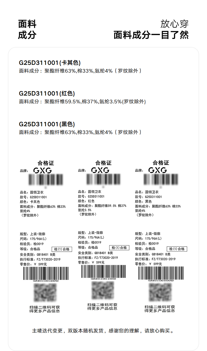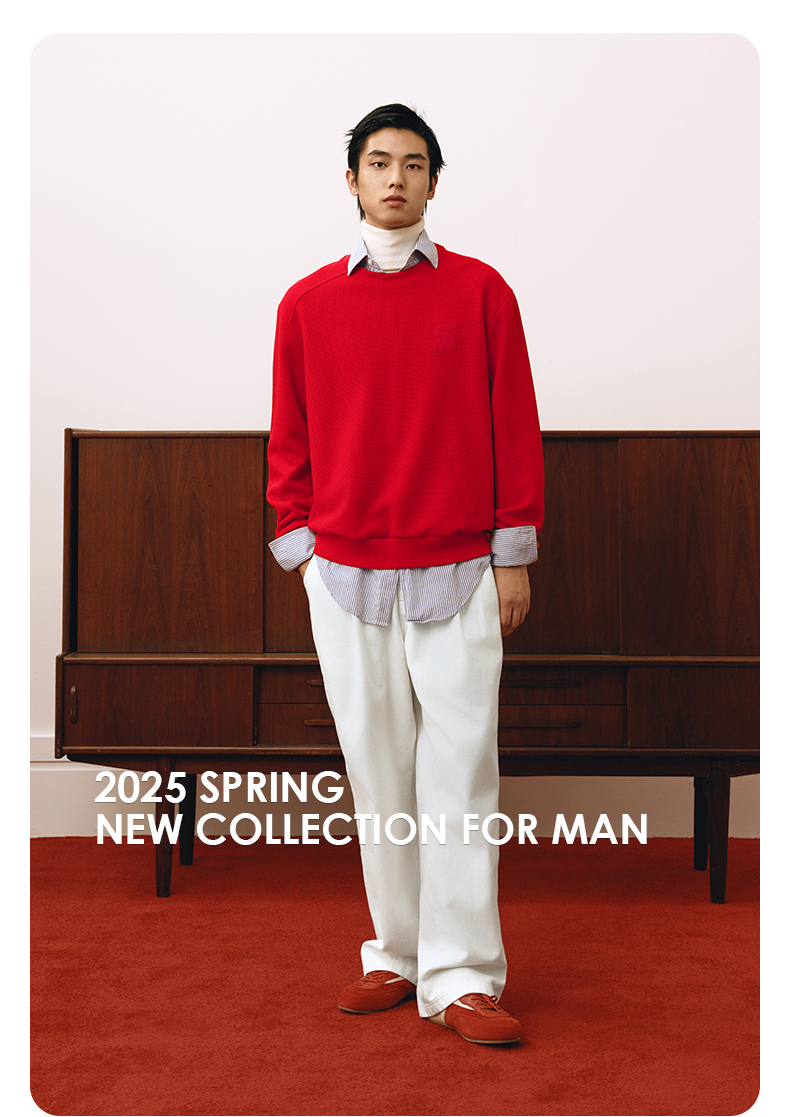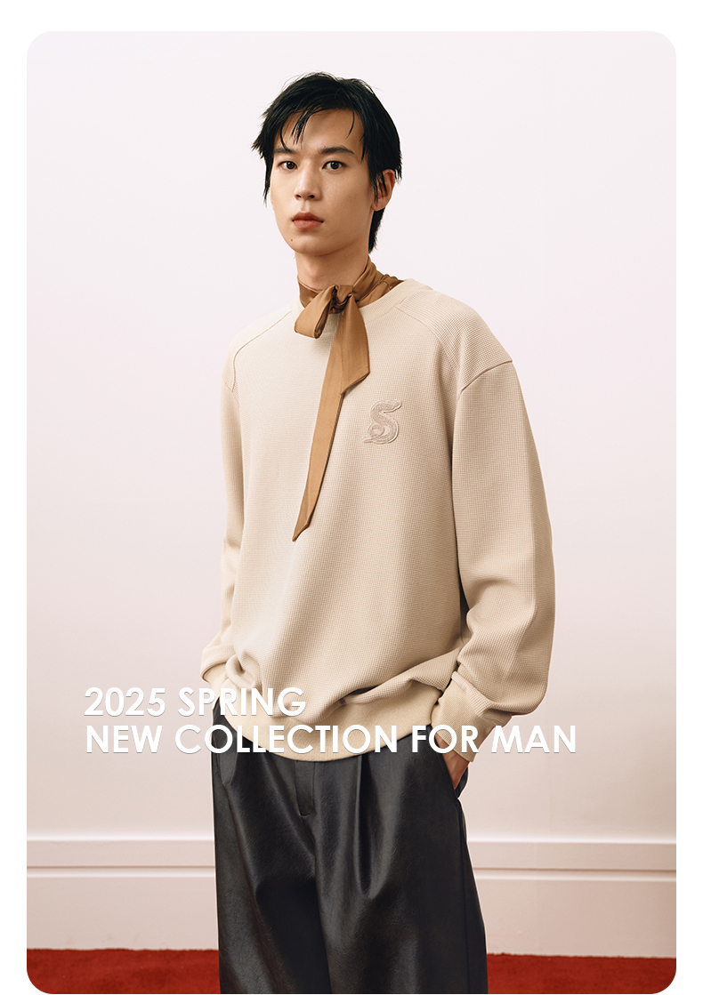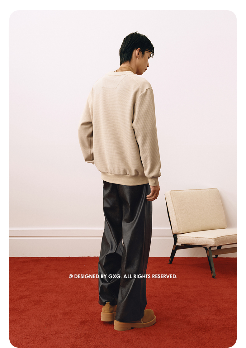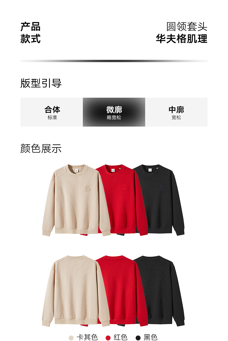 GXG男装 圆领多色肌理卫衣红色长袖上衣新年卫衣 2025春季热卖