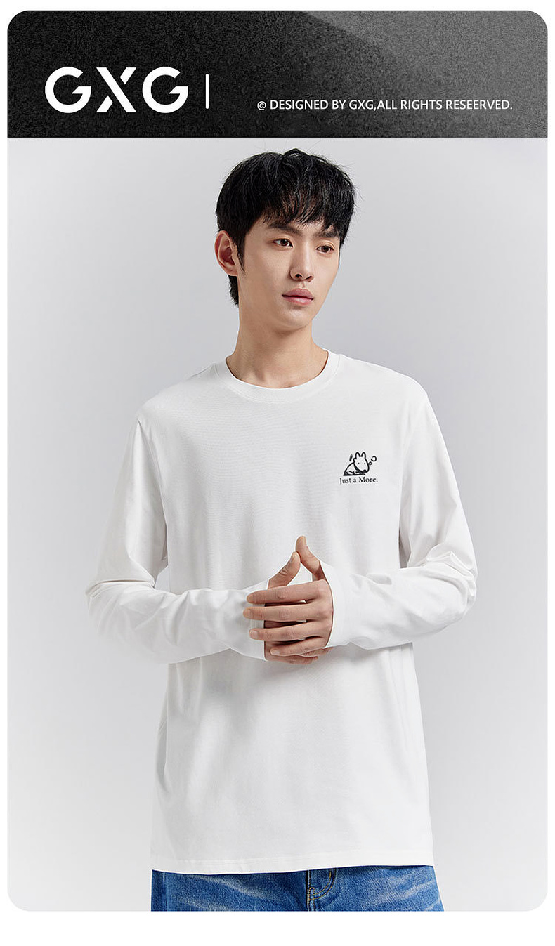 GXG男装【100棉】25春季时尚卡通小狗圆领男式休闲长袖T恤K&C