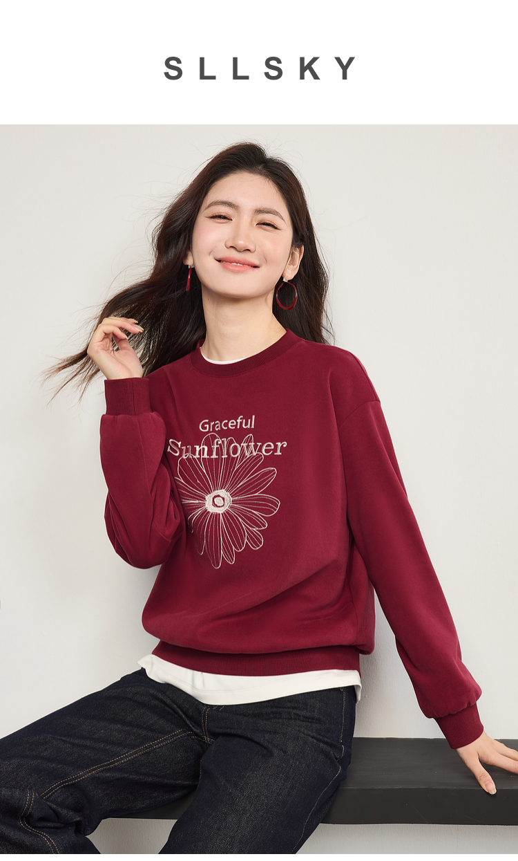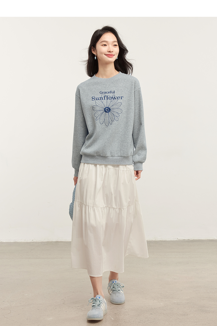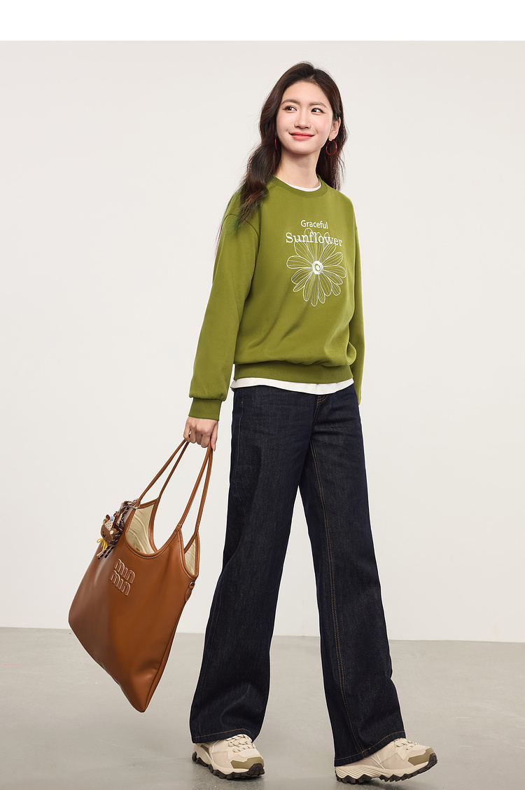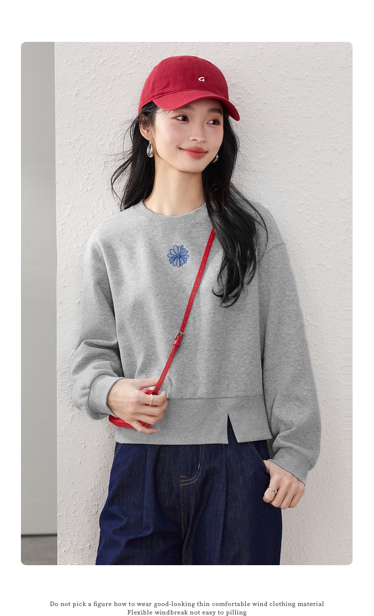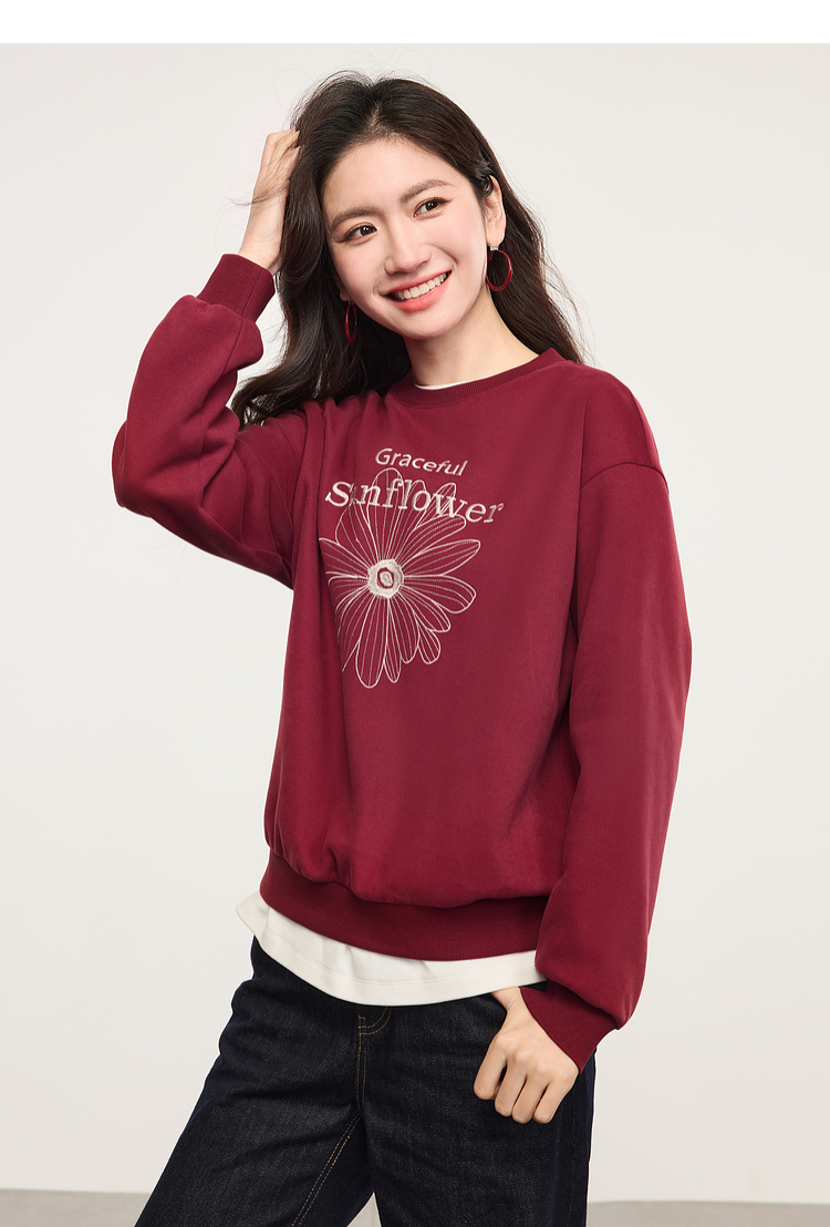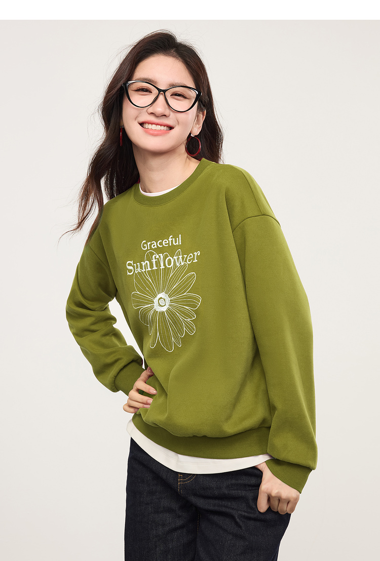 【周四狂欢价】熙世界小雏菊刺绣卫衣女慵懒风2025春秋新款休闲宽松圆领套头上衣
