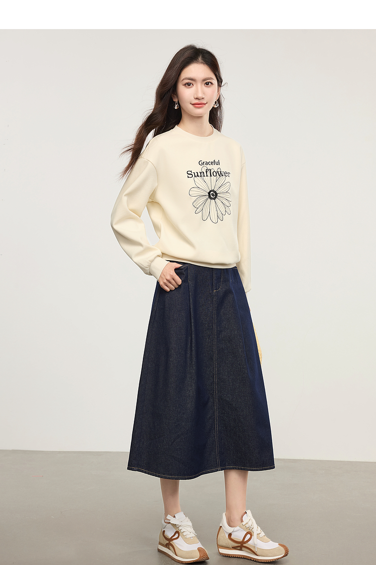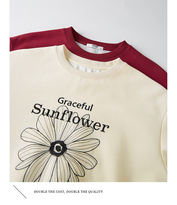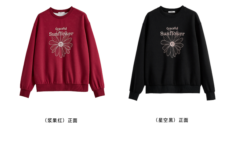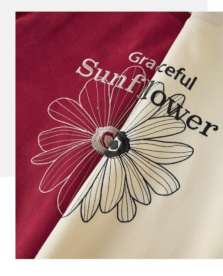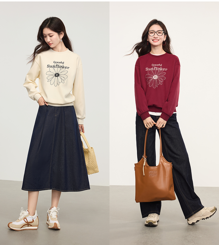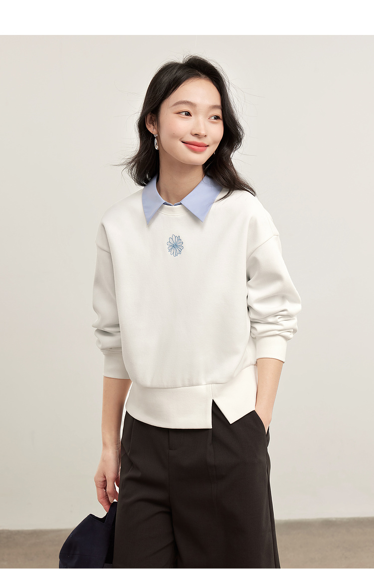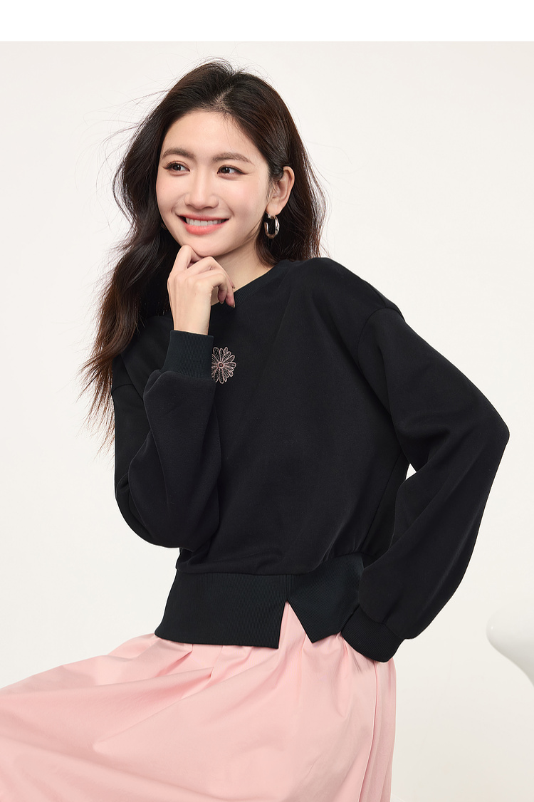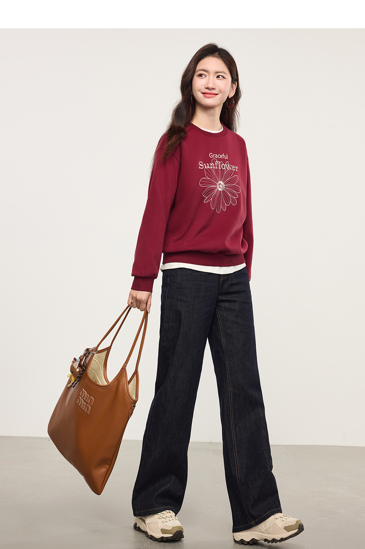 【周四狂欢价】熙世界小雏菊刺绣卫衣女慵懒风2025春秋新款休闲宽松圆领套头上衣