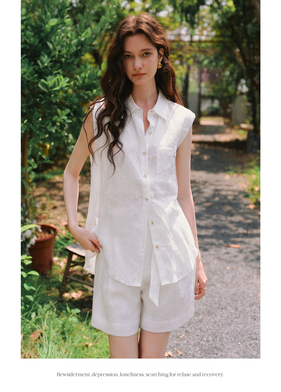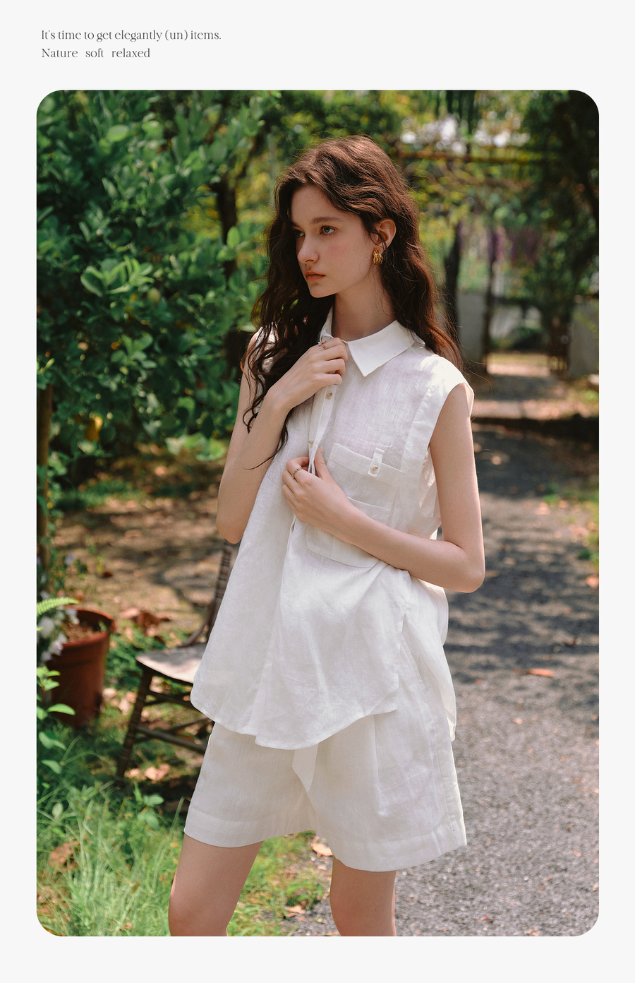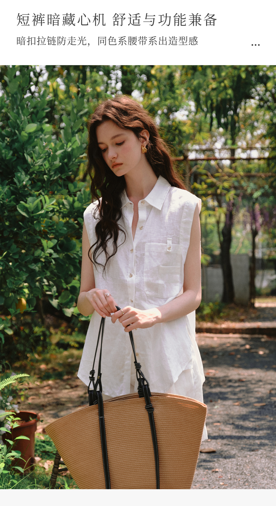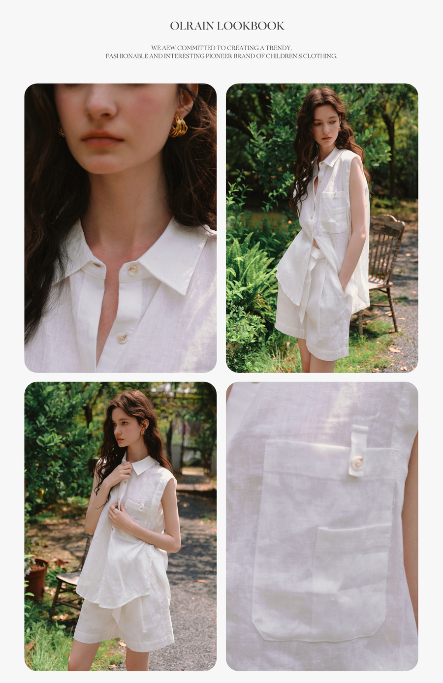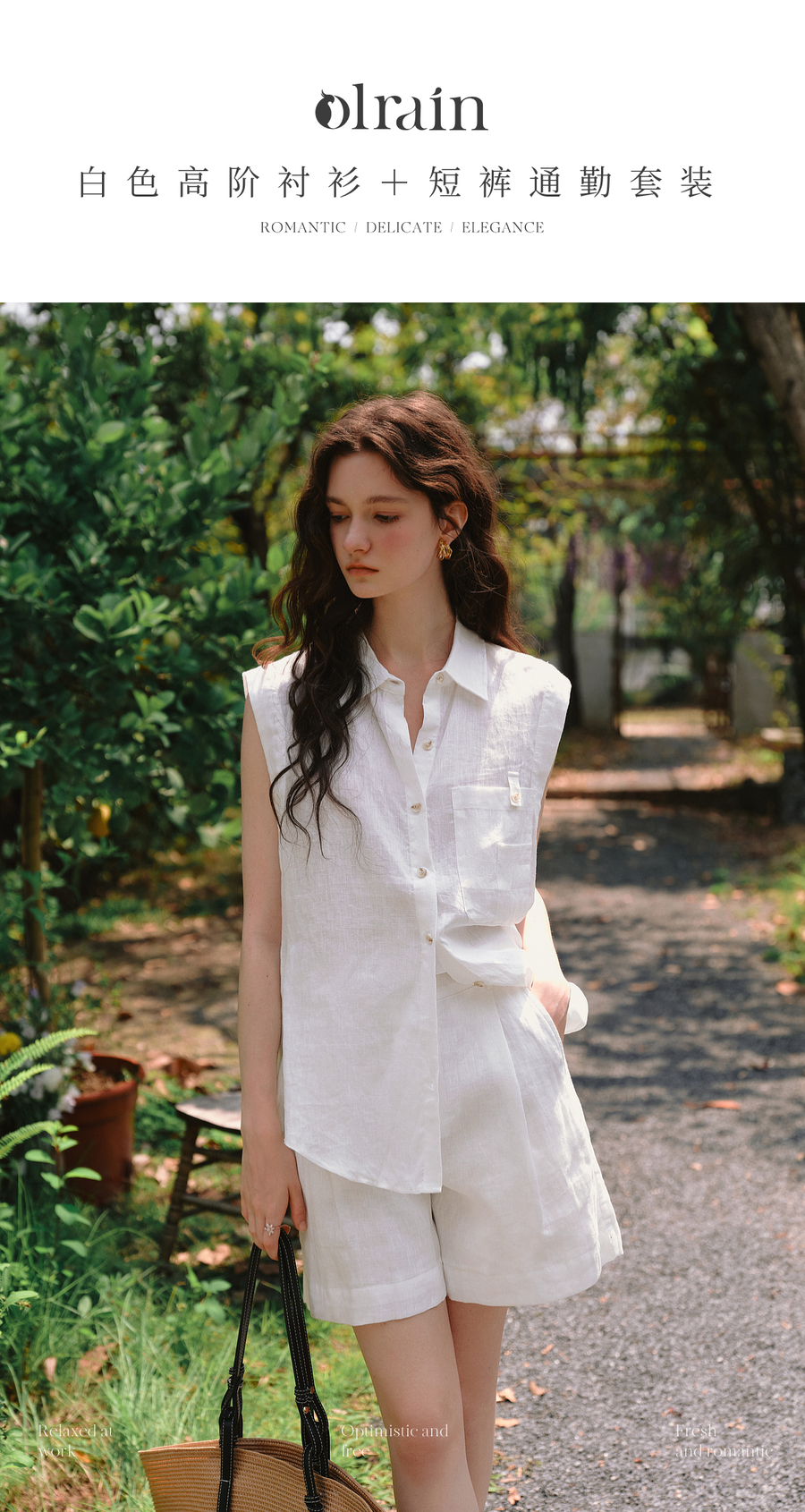 OLrain欧芮儿白色衬衫短裤通勤套装女夏季2025新款百搭时尚两件套