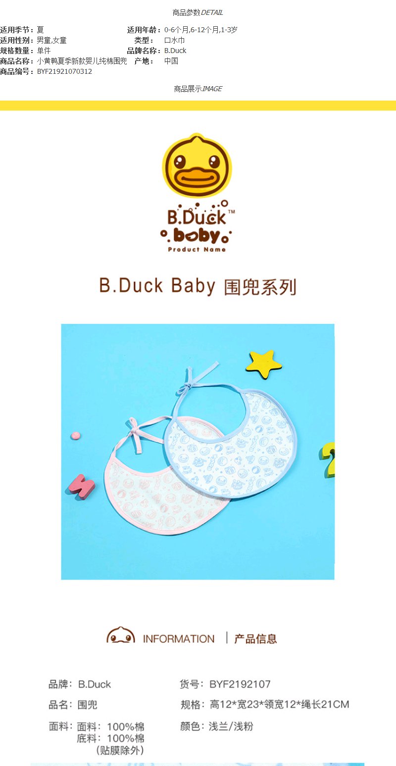 B.Duck小黄鸭精品夏季婴儿围兜 均码均码 BYF2192109