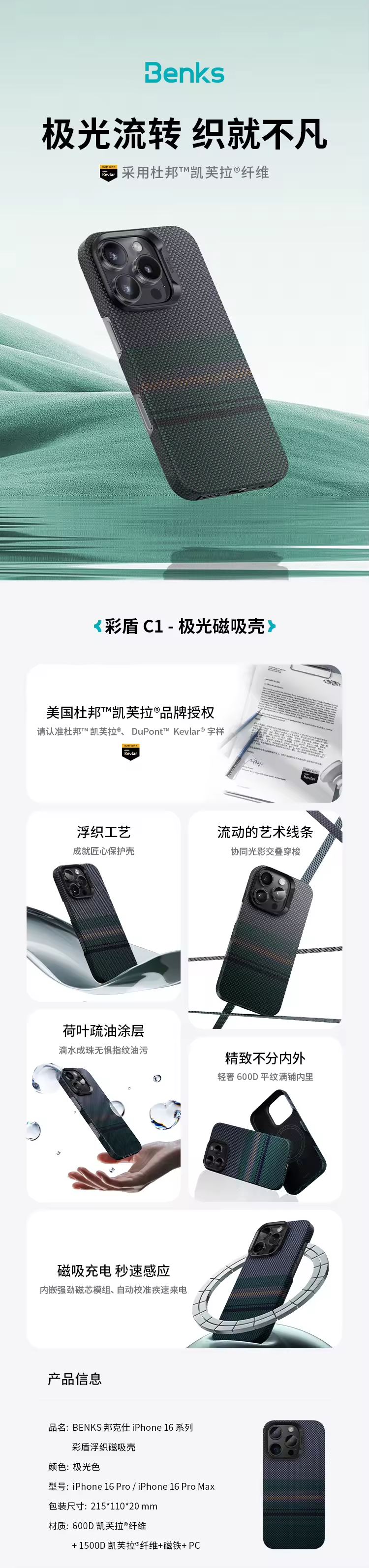 保护壳 iPhone 16 pro max 彩盾浮织磁吸 - 黑色- 邦克仕