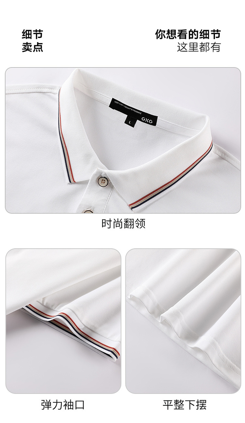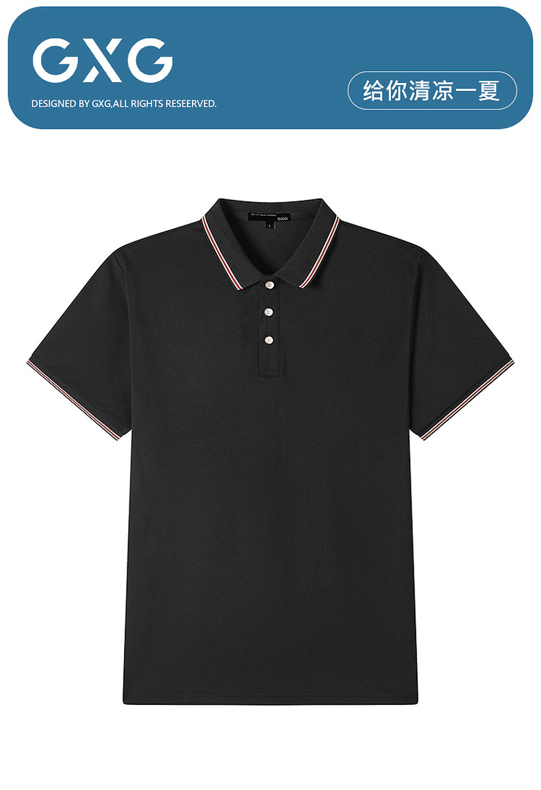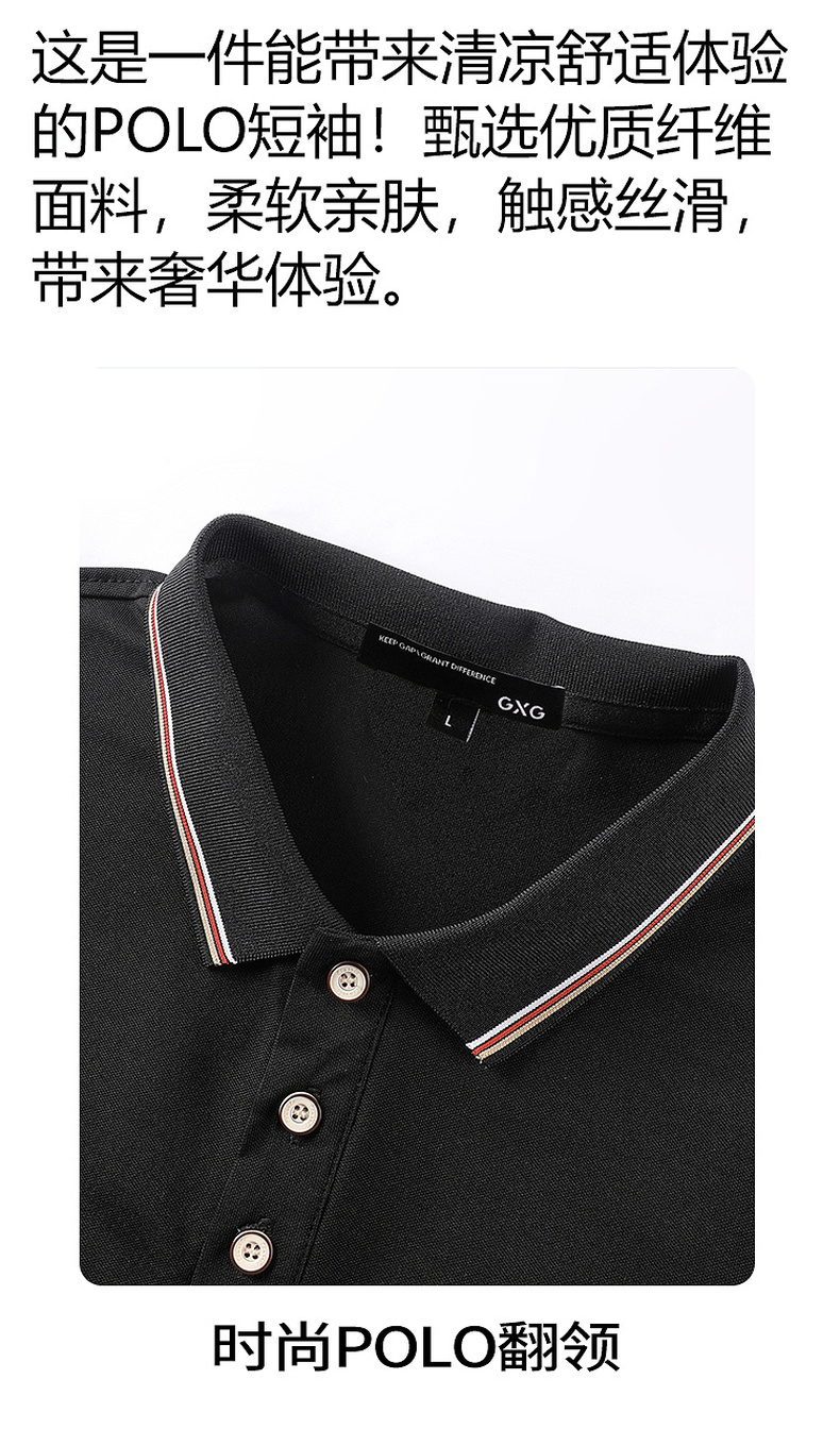 GXG男装夏季舒适透气快速导汗撞色拼接袖口经典翻领Polo衫K&C