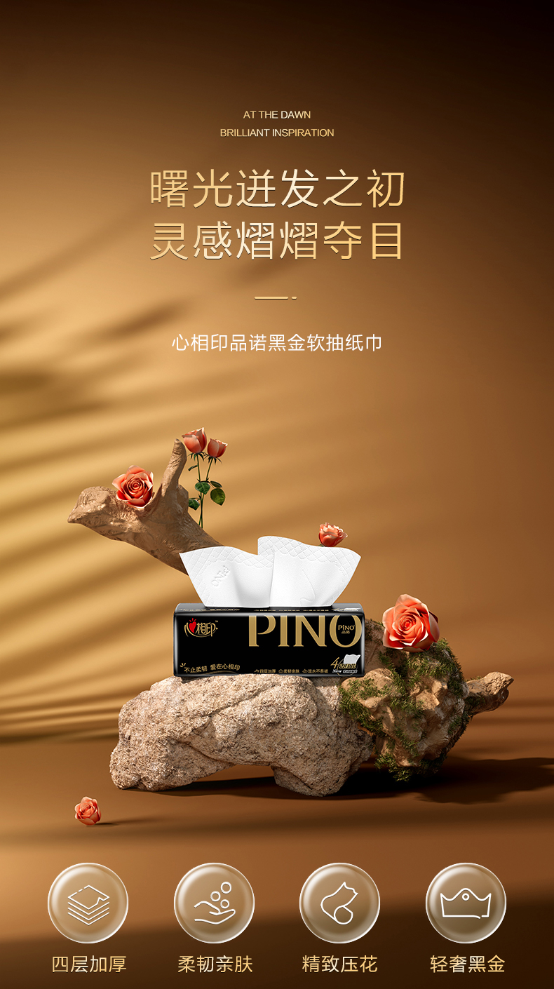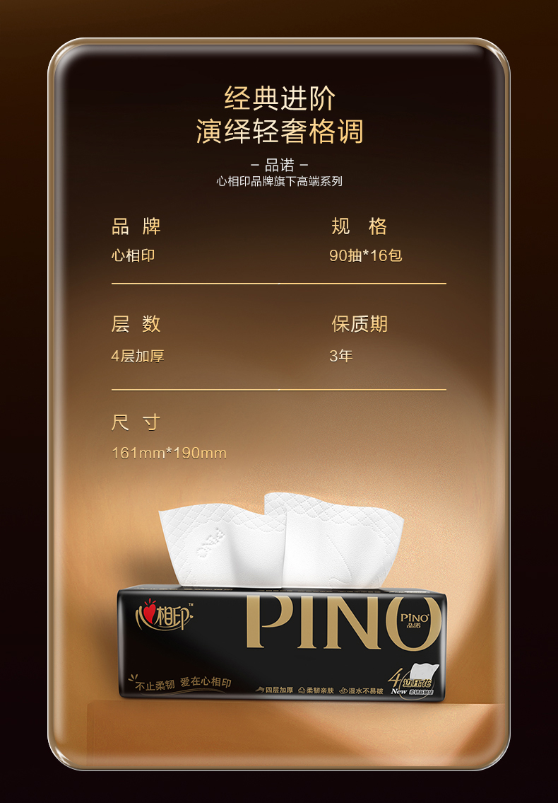PDT3090(箱装)心相印品诺系列90抽16包装四层塑装纸面巾