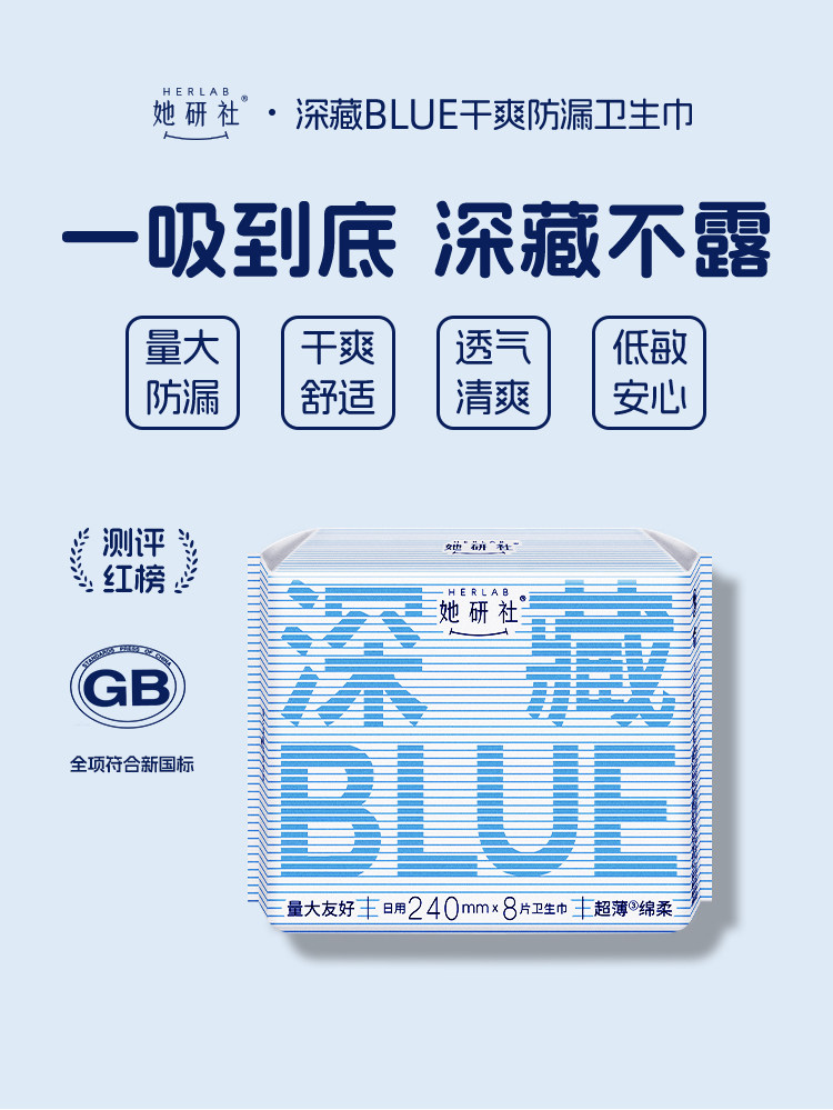 Herlab她研社 深藏BLUE棉柔卫生巾240mm*8片装