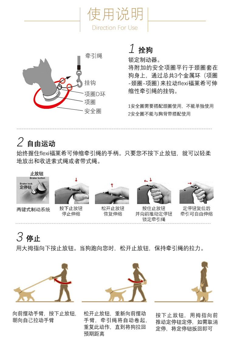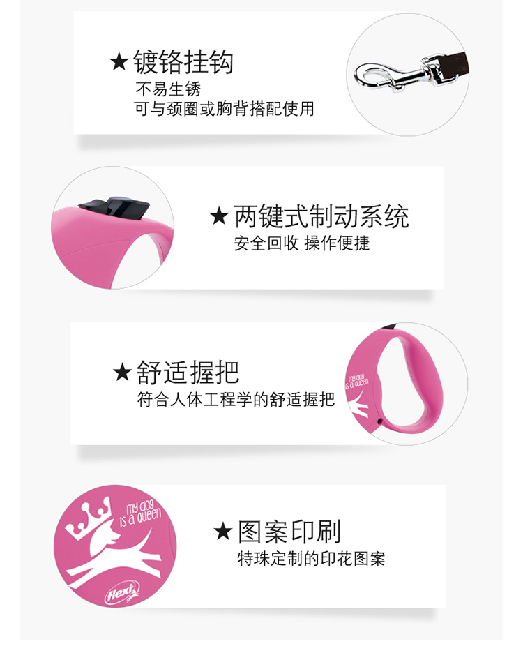 福莱希女神系列 flexi福莱希牵引绳狗绳自动伸缩器小型犬泰迪金毛宠物中型犬遛狗