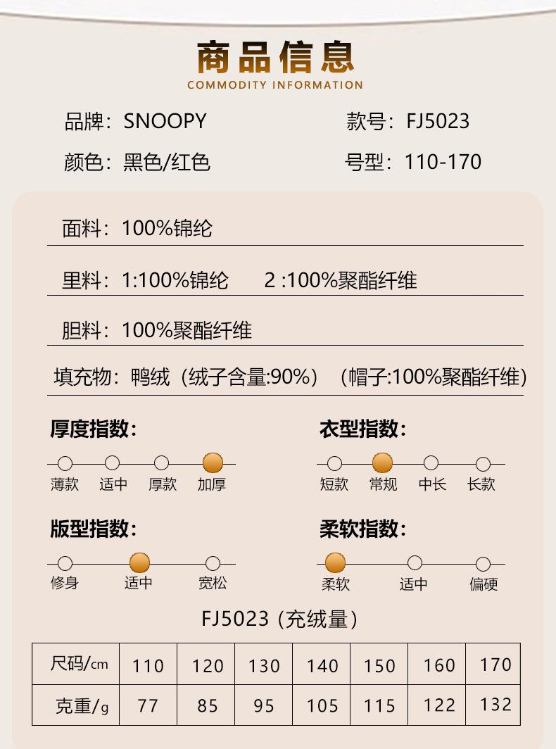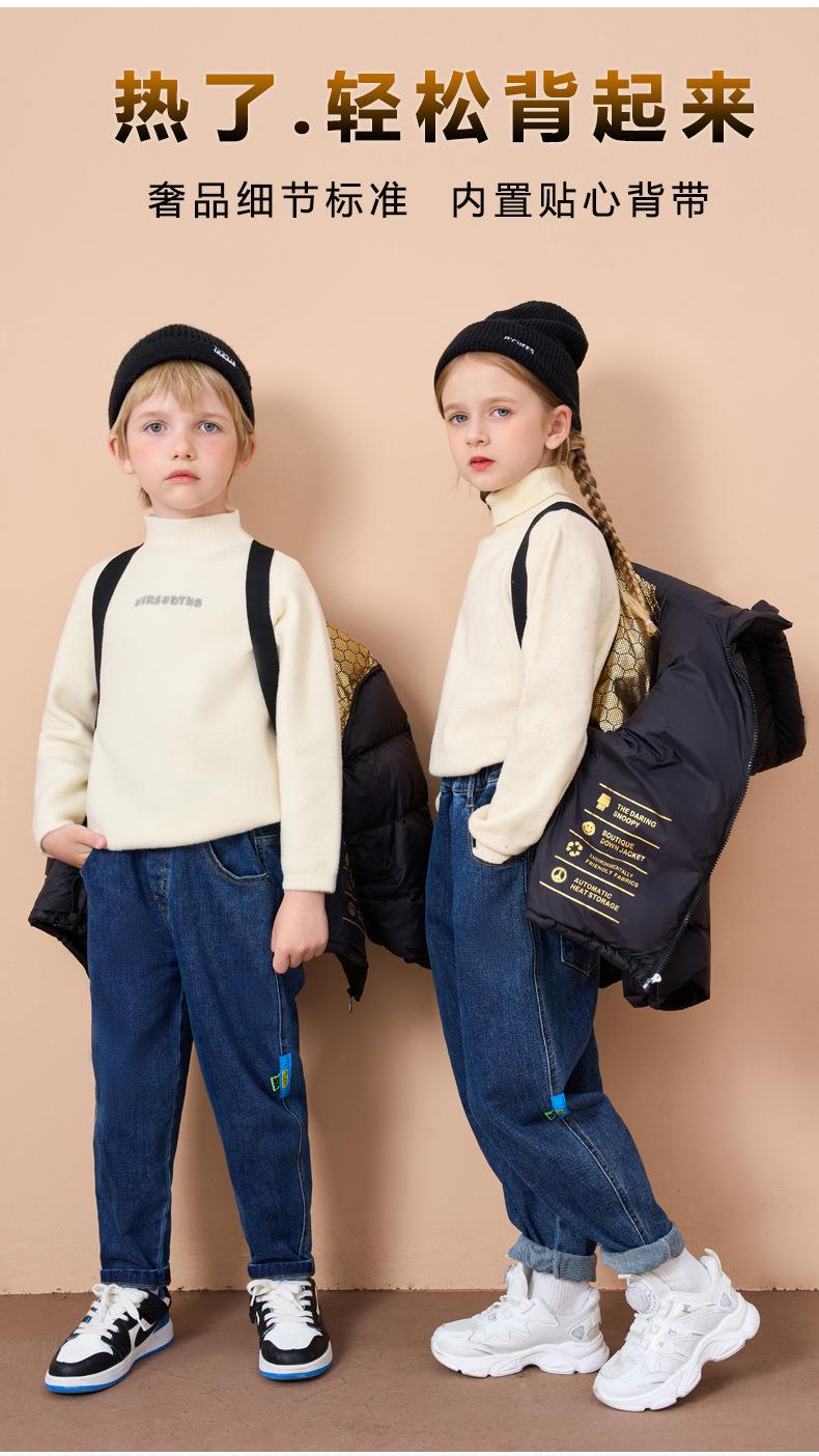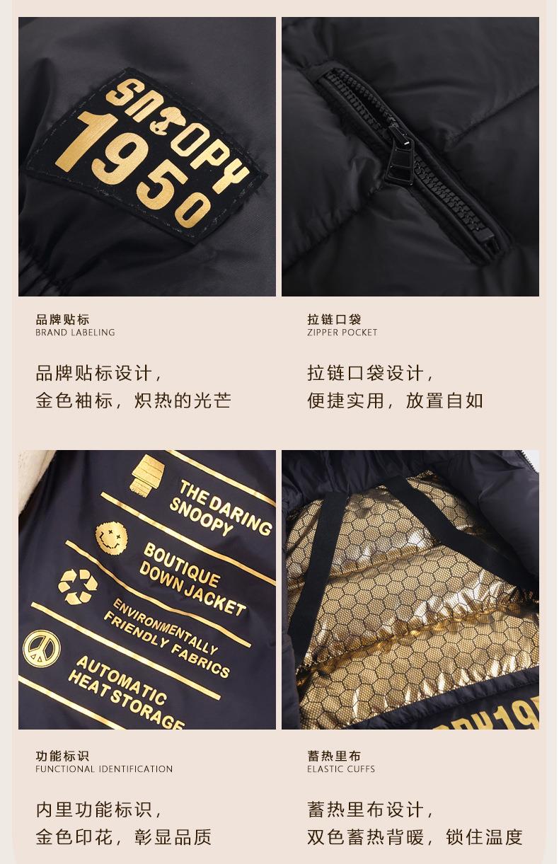 史努比儿童羽绒服2024秋冬新款黑色金标男女童加厚90白鸭绒羽绒服