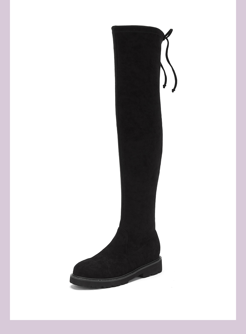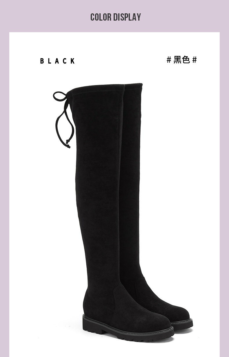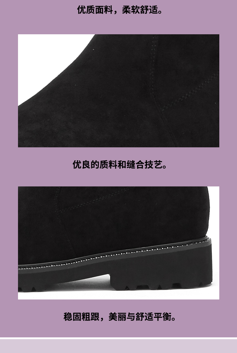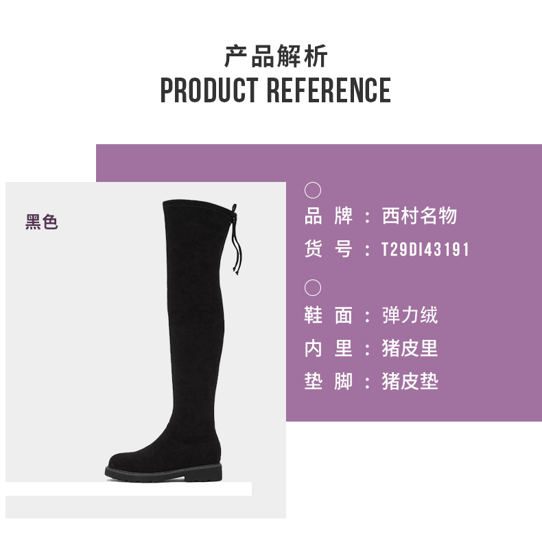 西村名物2020冬季新款黑色绒面长筒靴粗跟时尚靴子女T29DI43191