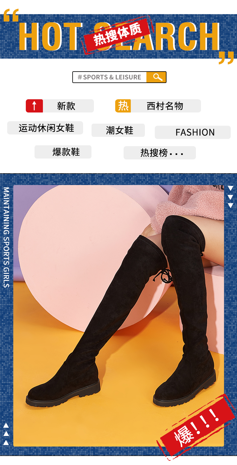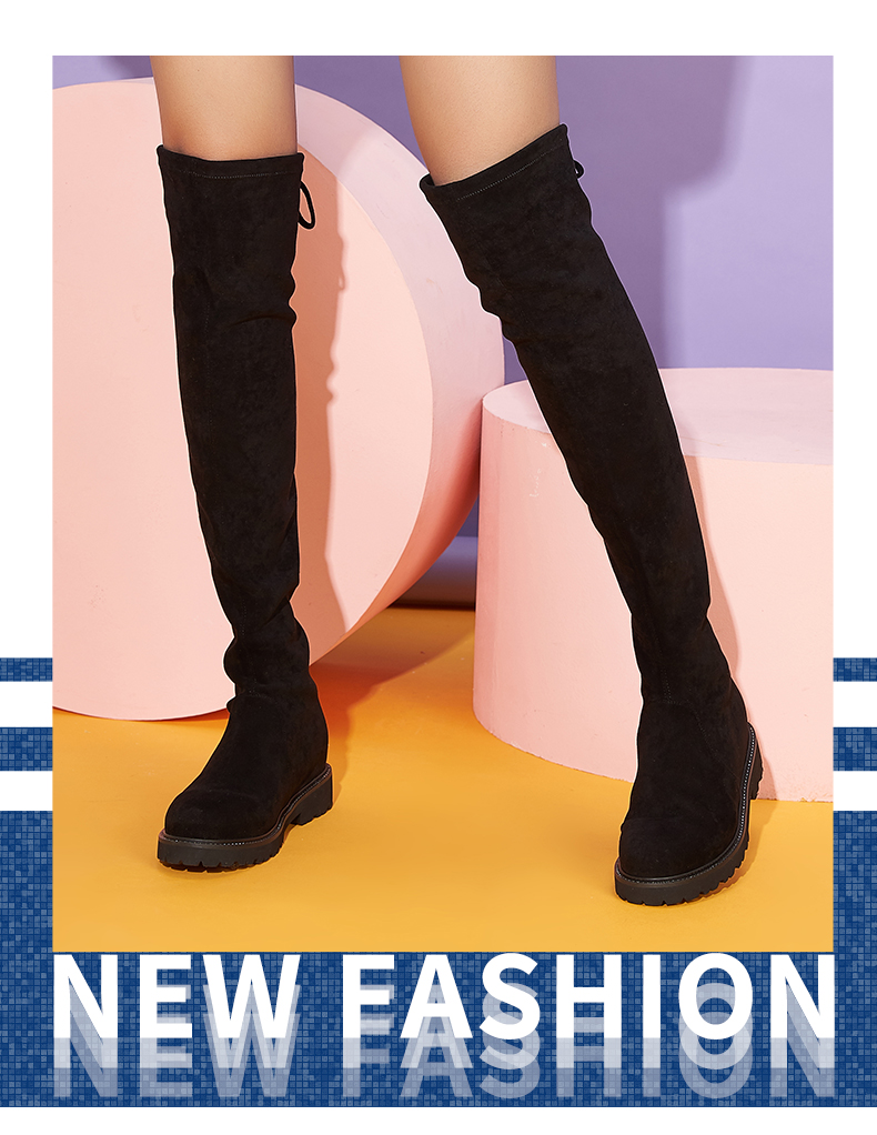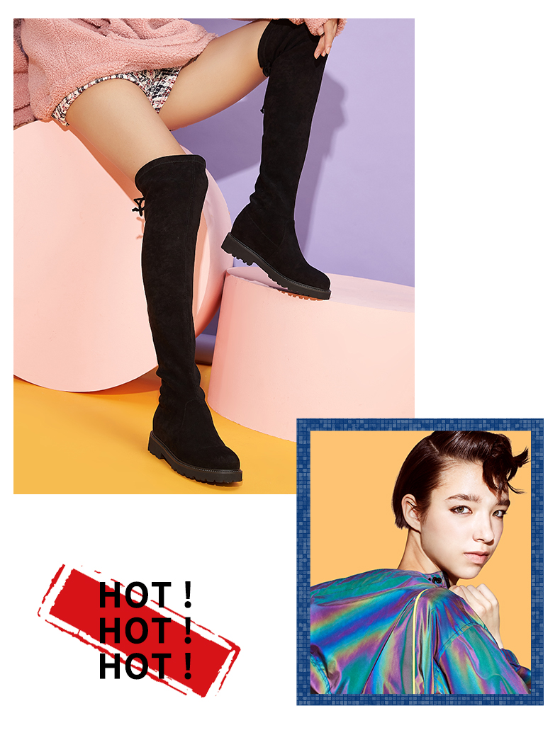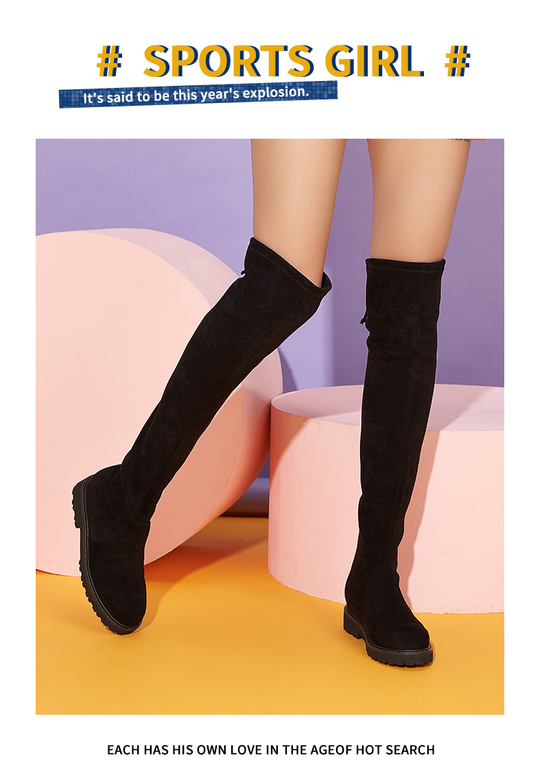 西村名物2020冬季新款黑色绒面长筒靴粗跟时尚靴子女T29DI43191