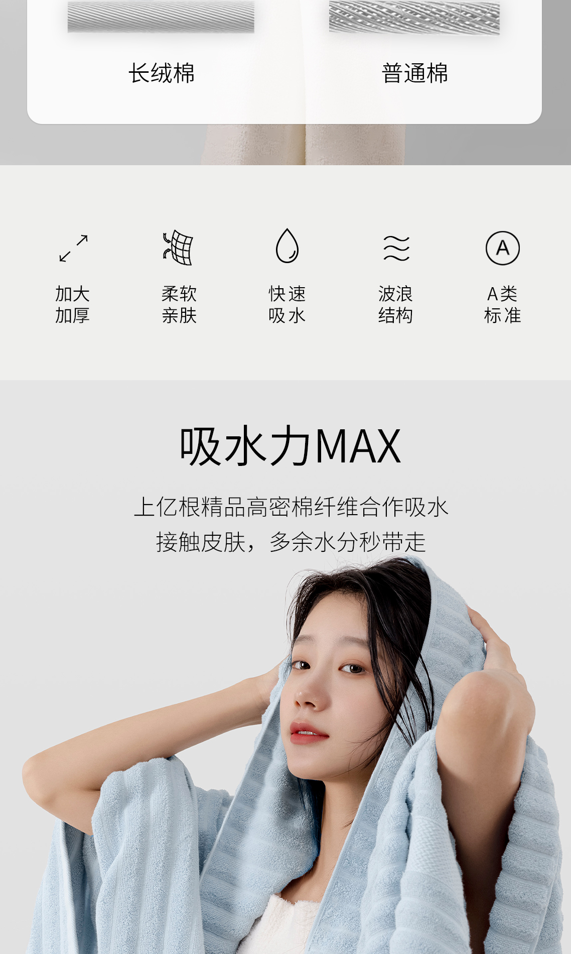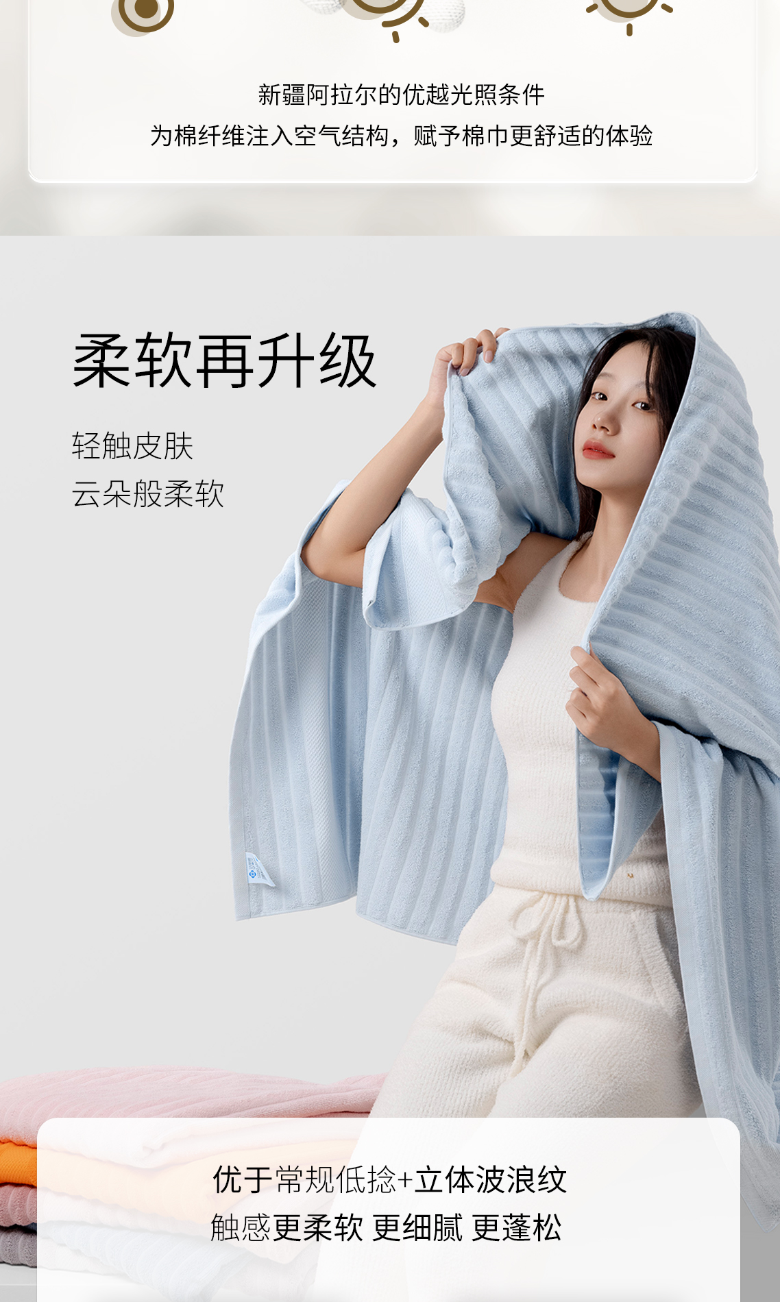 【新疆棉波浪纹大浴巾】家用纯棉吸水柔软加厚加大全棉洗澡裹巾