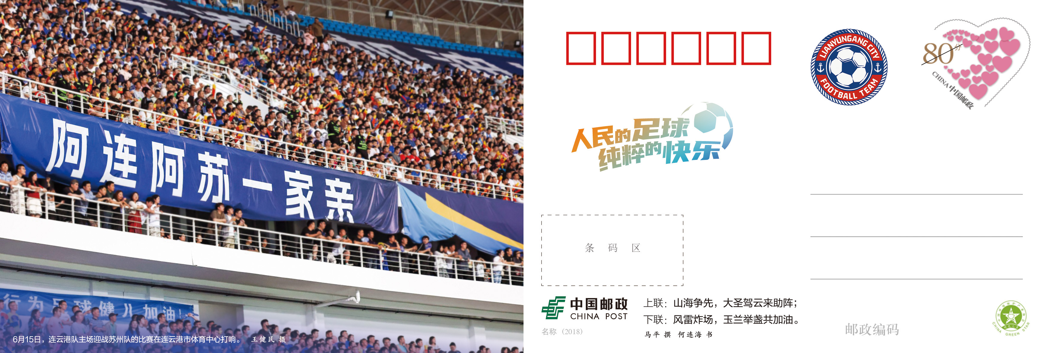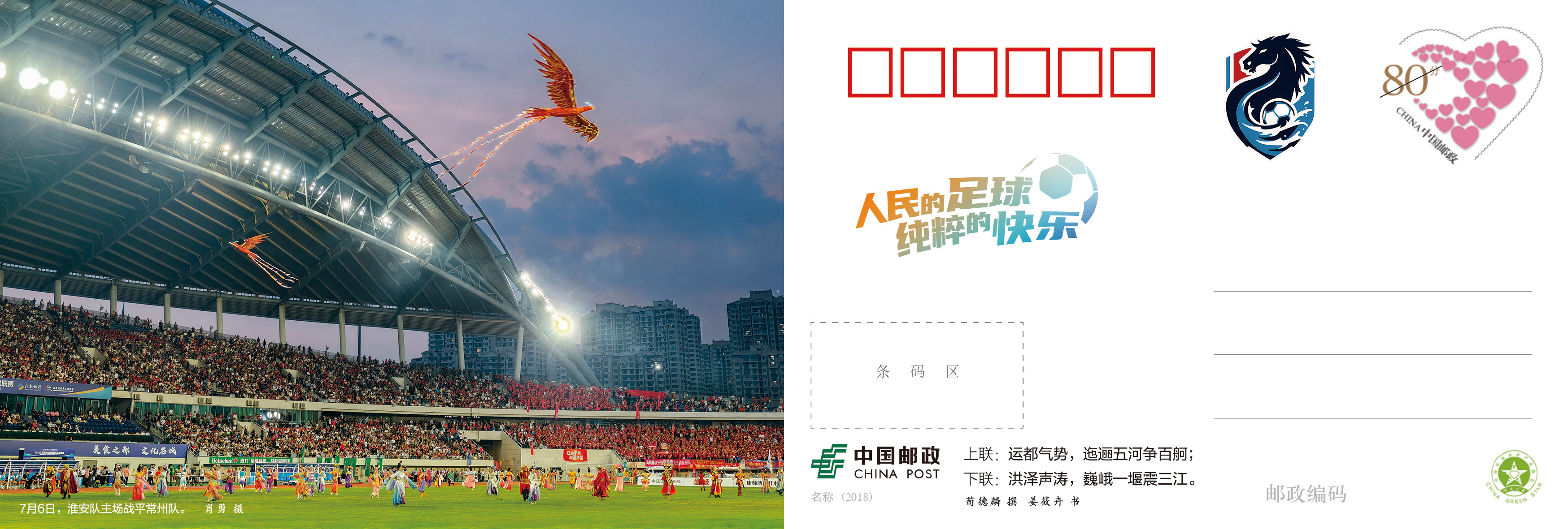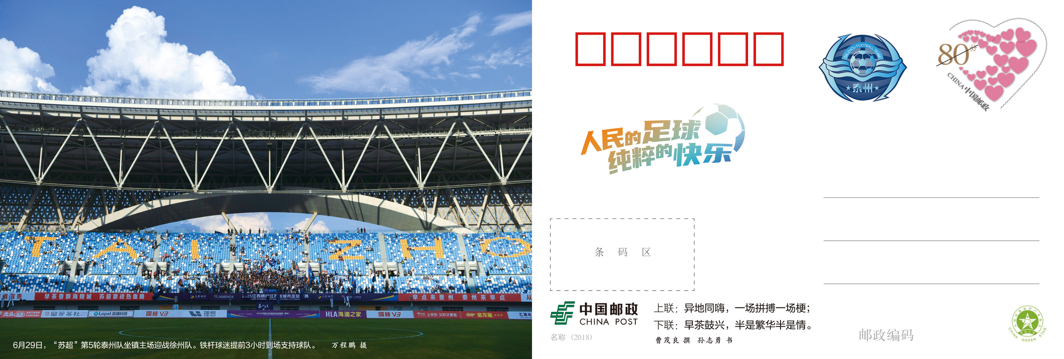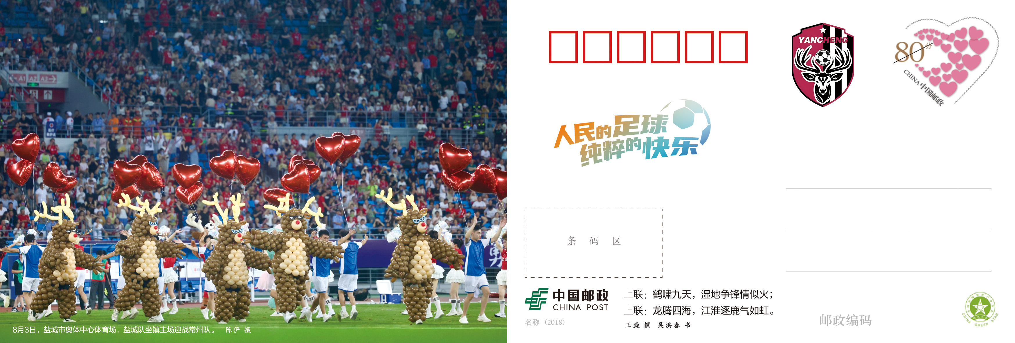“苏超”楹联明信片每套共14枚,其中13枚分别对应江苏十三市的球队,另1枚则是对整个“苏超”赛事的礼赞。设计精美、元素丰富,每张明信片都“诚意满满”——既有全国著名书法家、楹联家为各市球队精心创作题写的助威楹联,也有活跃于“苏超”一线的摄影师定格捕捉的精彩瞬间。