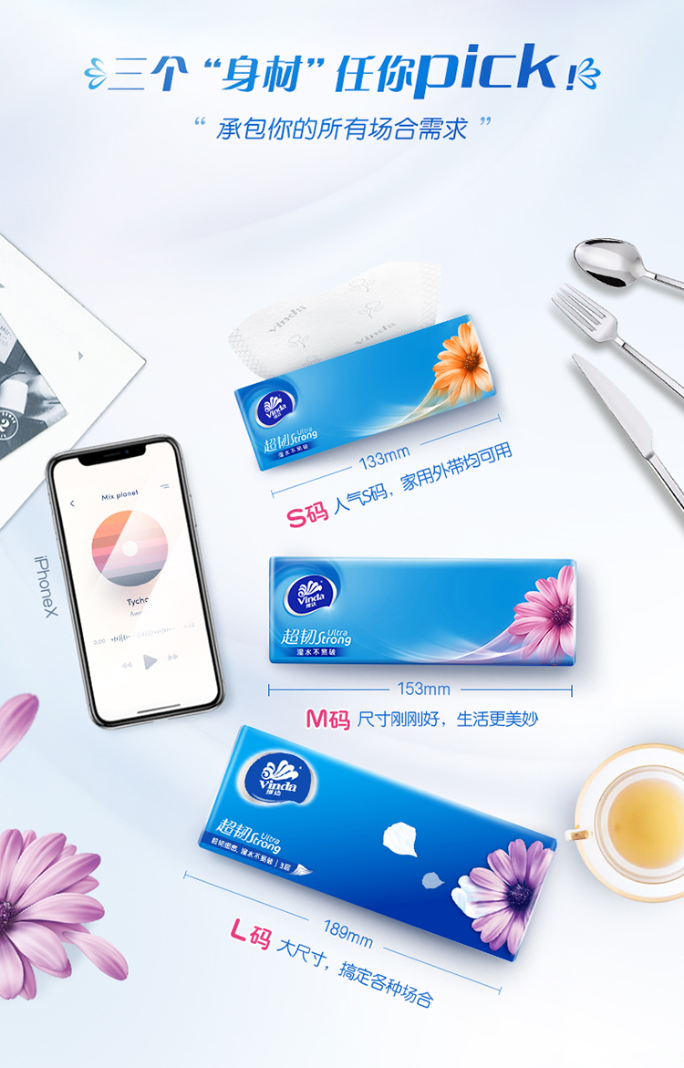 【官方包邮】维达超韧抽取面巾3层S码100抽×24包/箱