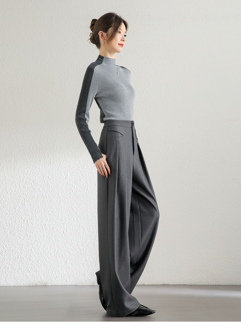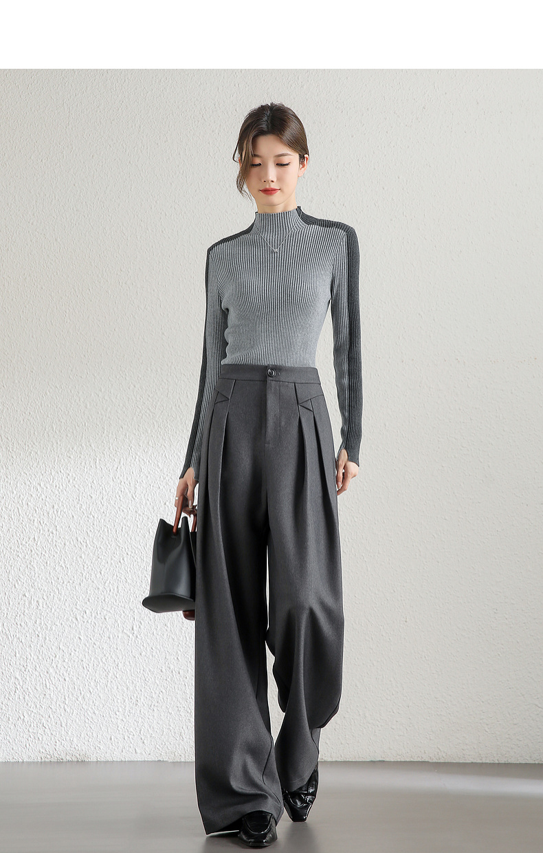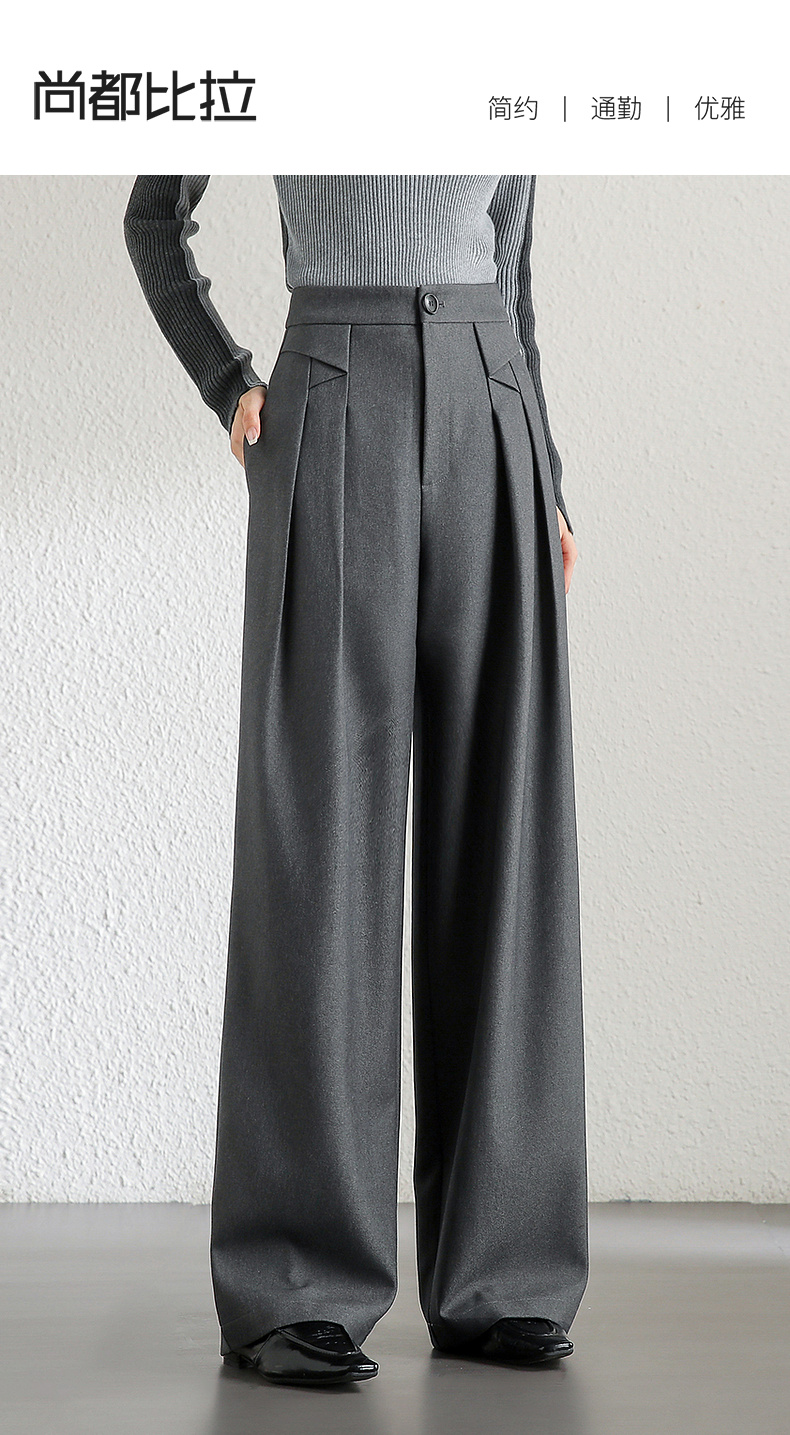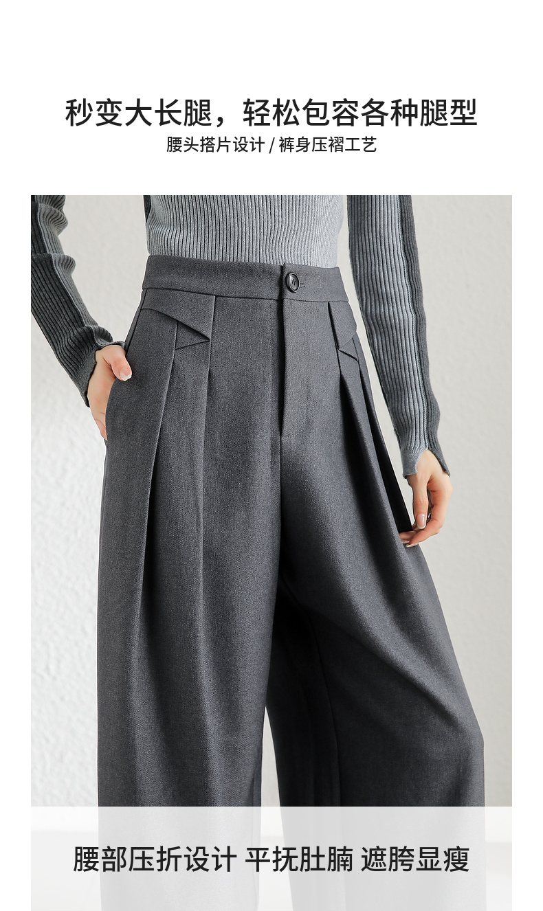 【内购】都市气质通勤百搭宽松立体感腰间压折叠高腰垂感通勤阔腿裤-143K57149