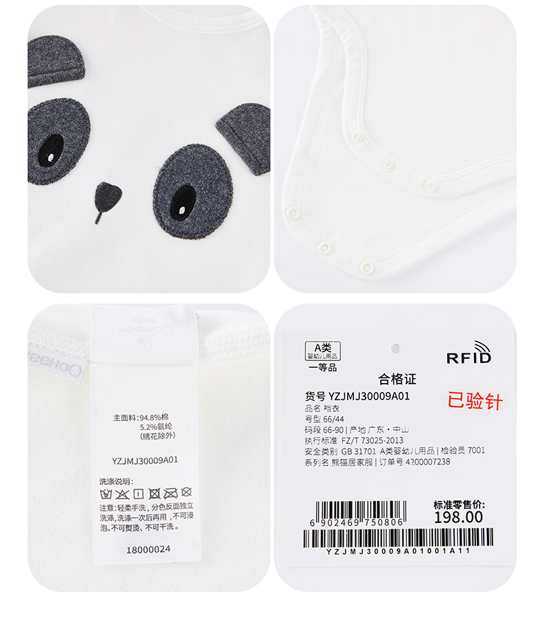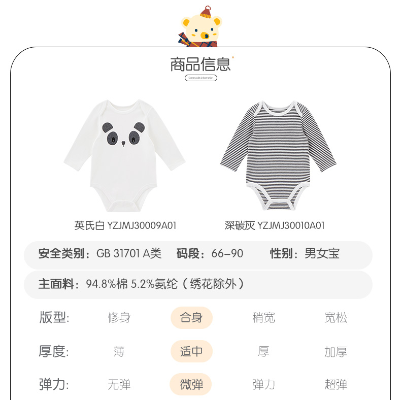 英氏婴儿连体衣男女宝宝绣花长袖哈衣YZJMJ30009A01 2020新款秋装
