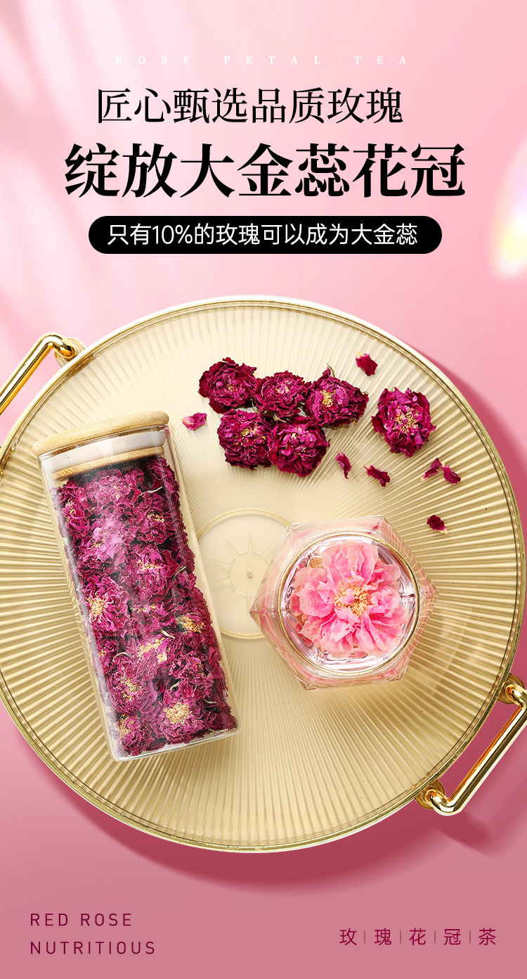 璞匠 平阴重瓣玫瑰花茶干玫瑰花冠茶花瓣食用干花泡茶大朵罐装