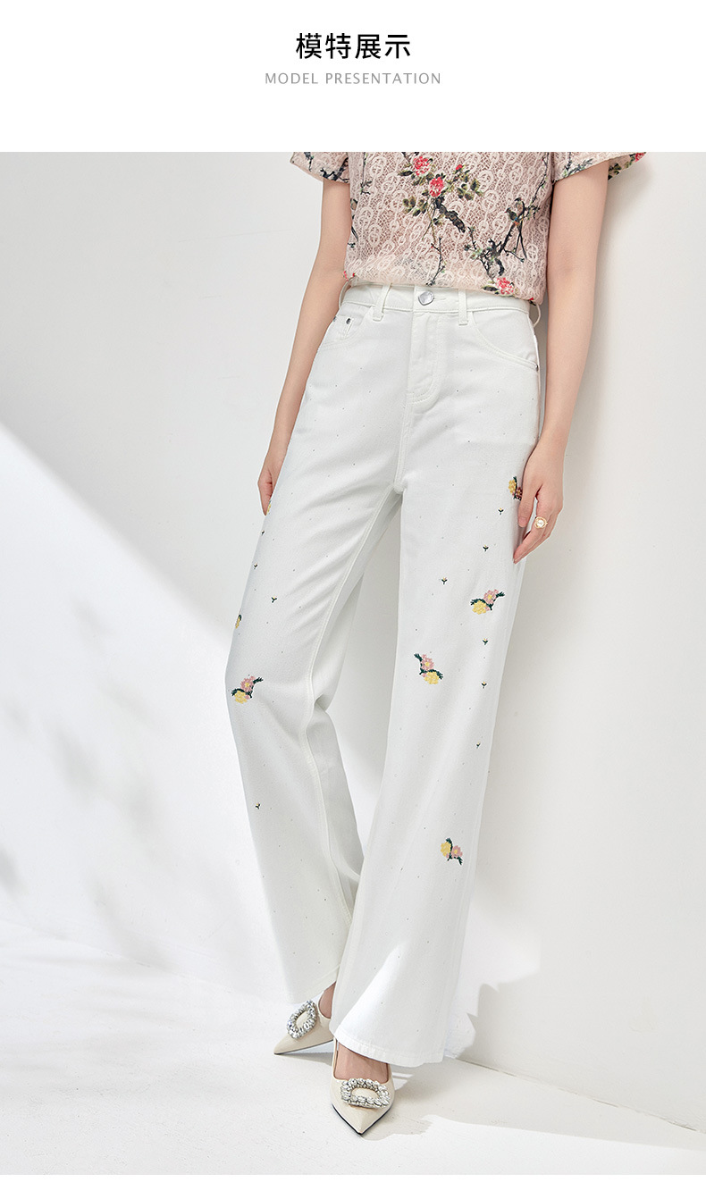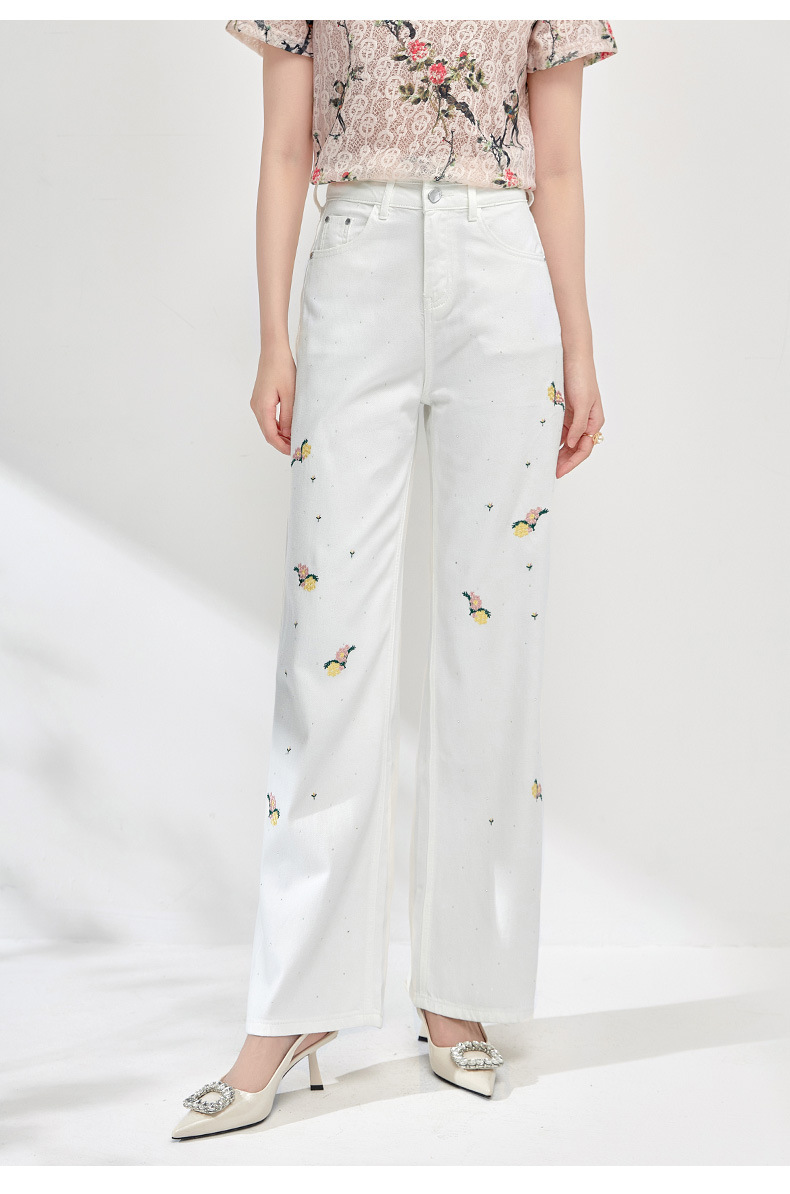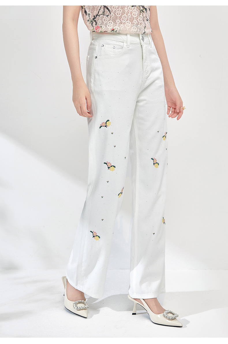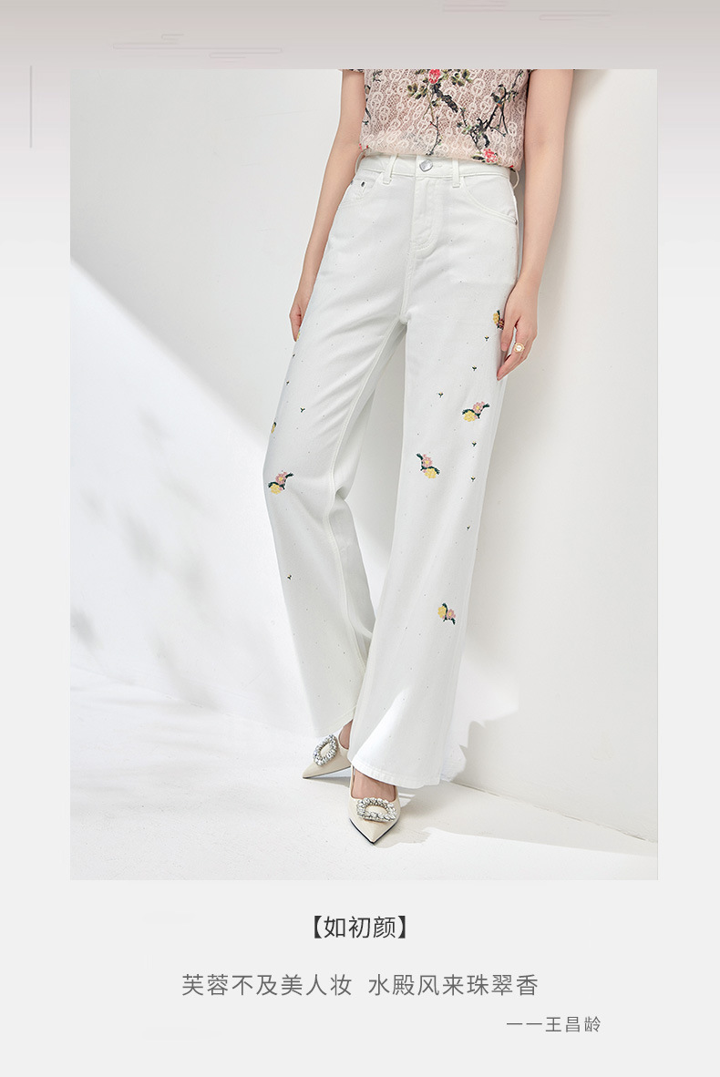 气质百搭,繁花烫钻刺绣小个子高腰牛仔裤WLZD-2413310