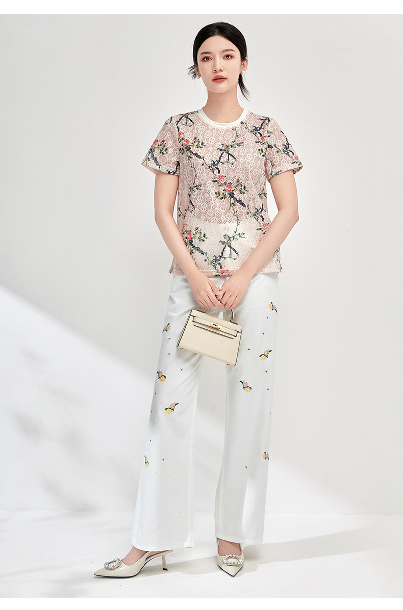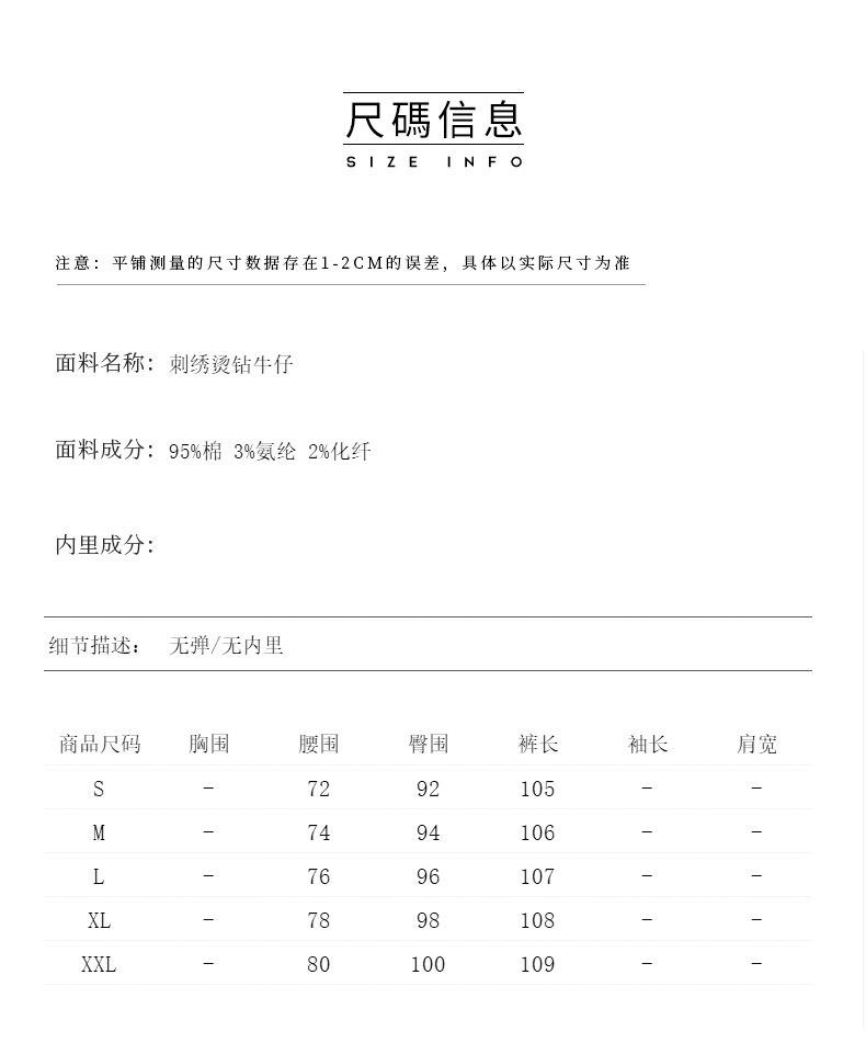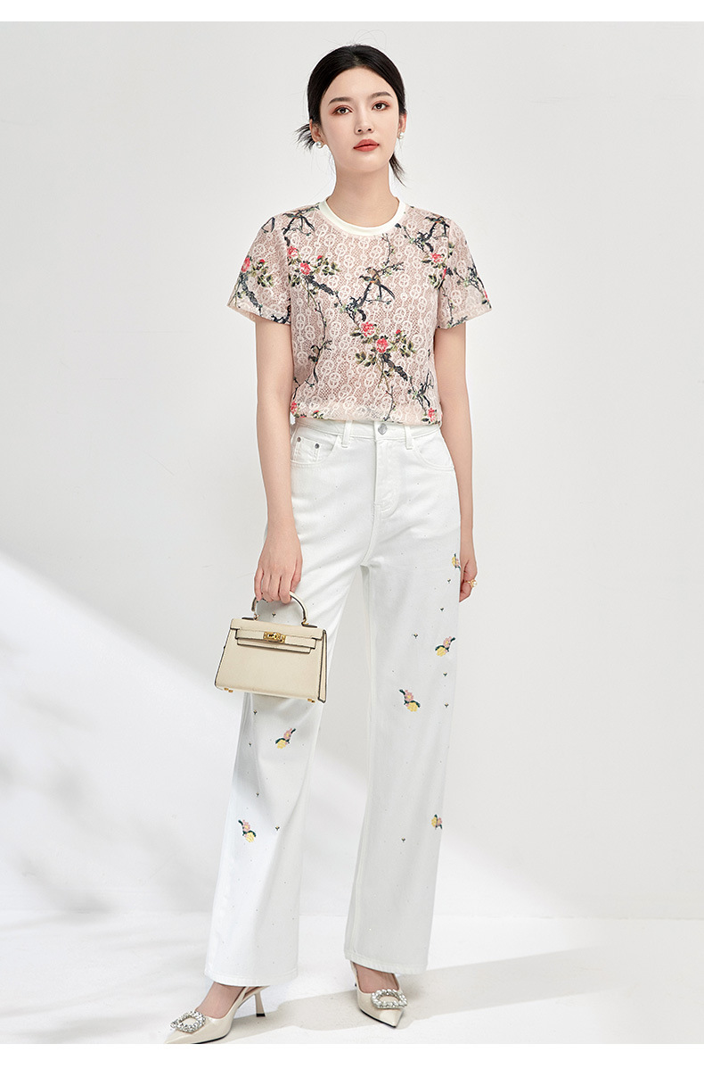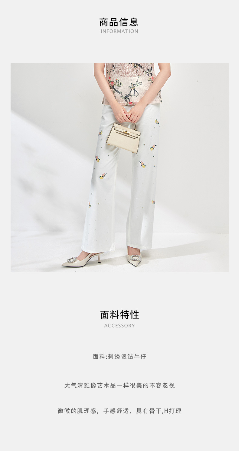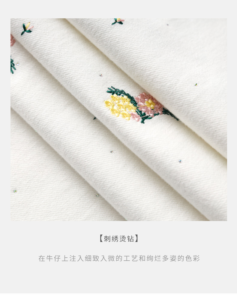气质百搭,繁花烫钻刺绣小个子高腰牛仔裤WLZD-2413310