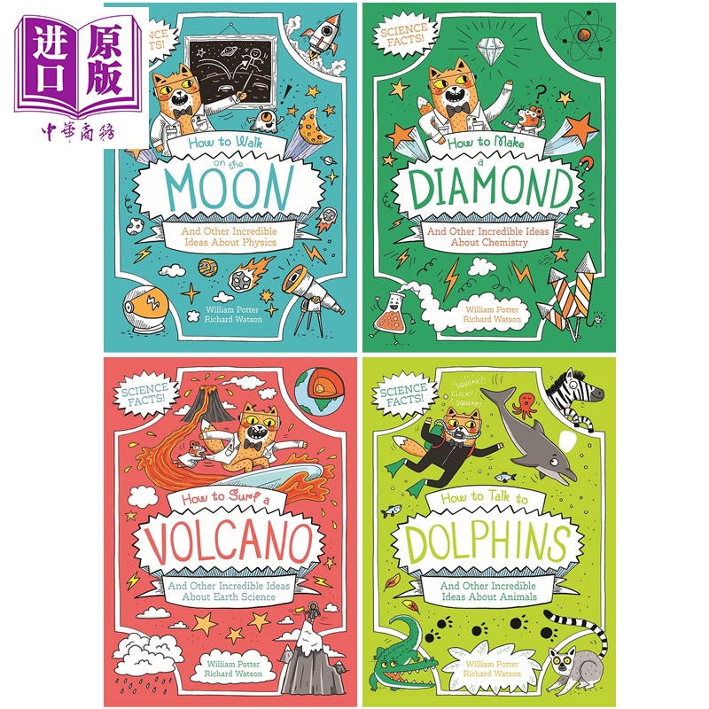 【中商原版】橘猫博士 4册 英文原版趣味知识漫画 如何在月球上行走+如何制作钻石+如何与海豚交谈+如何游走火山 爆笑科普读物