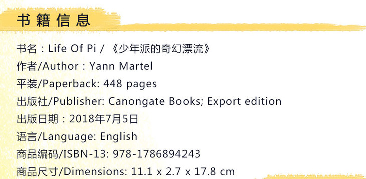 【中商原版】少年派的奇幻漂流 英文原版 Life Of Pi Yann Martel 小说 电影原著