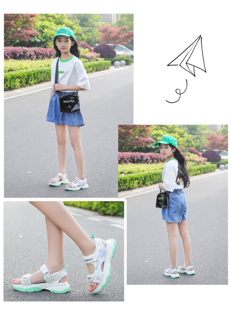 【时尚经典,秒变潮童】女童凉鞋2022新款,夏季中大童女孩公主时尚防滑软底,儿童运动沙滩鞋