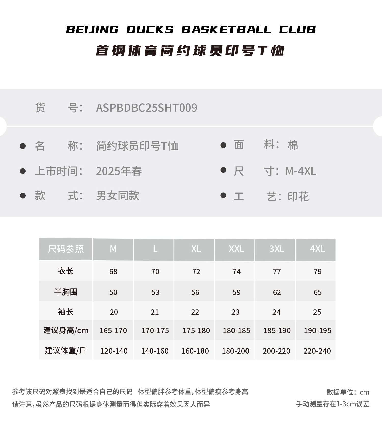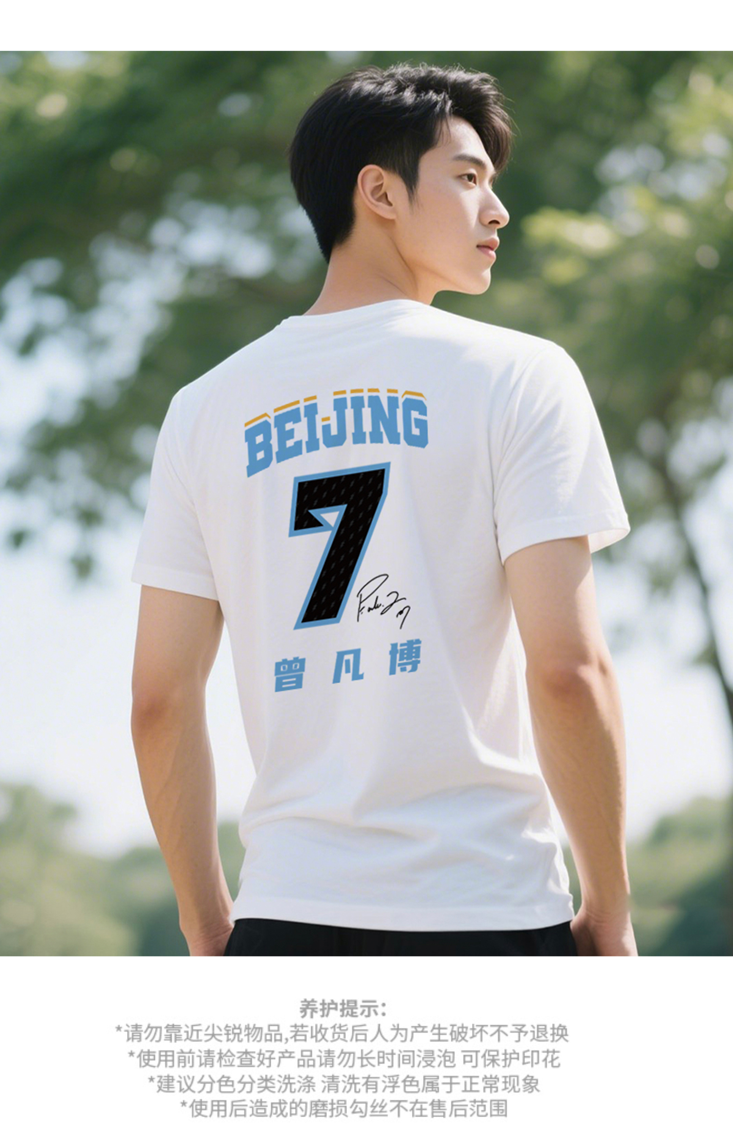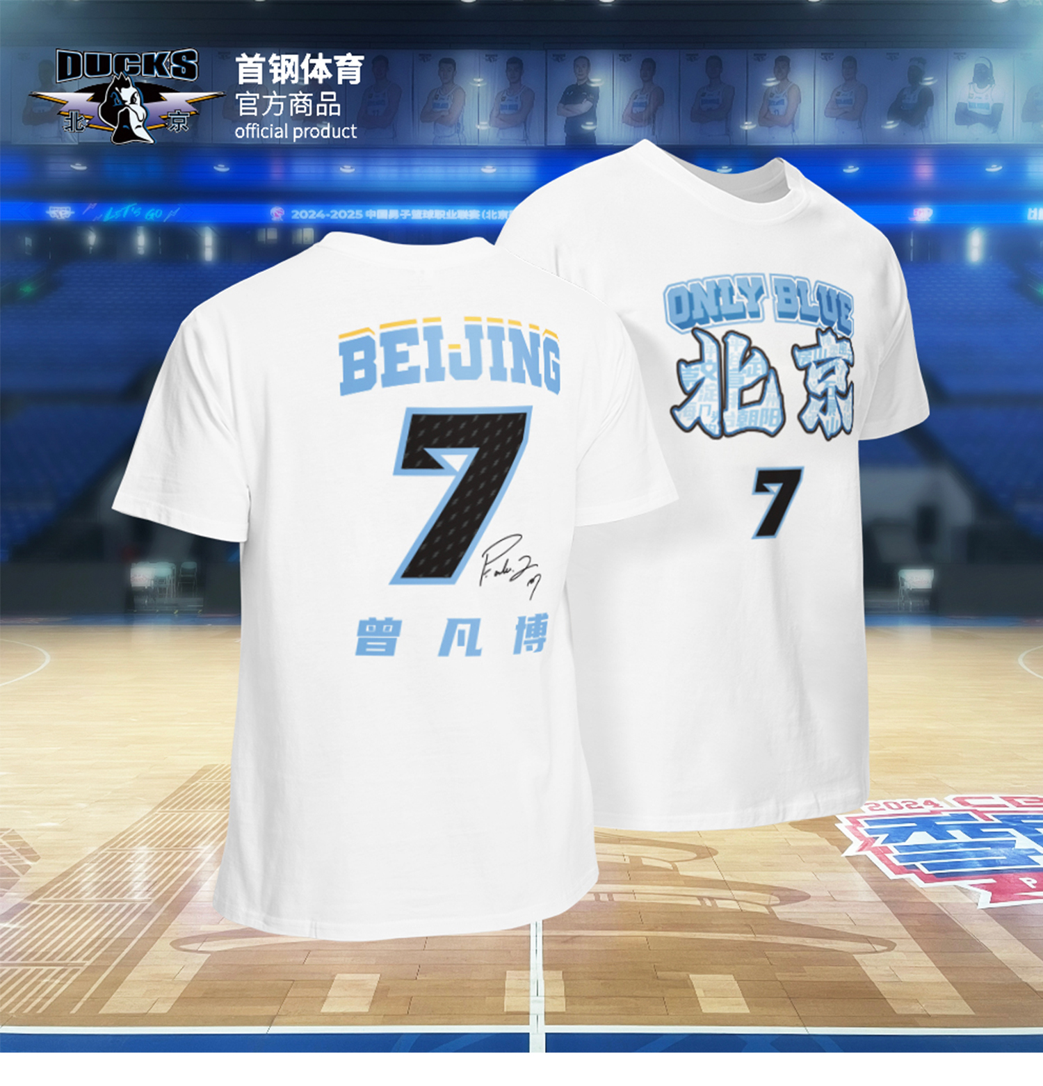 【官方正版】北京首钢 | 简约球员印号T恤白色棉质短袖柔软透气