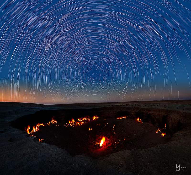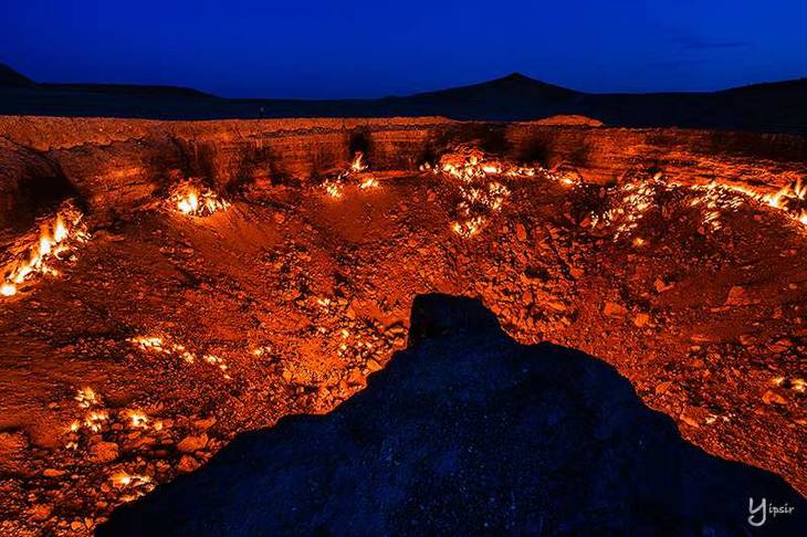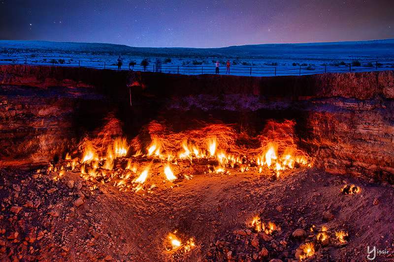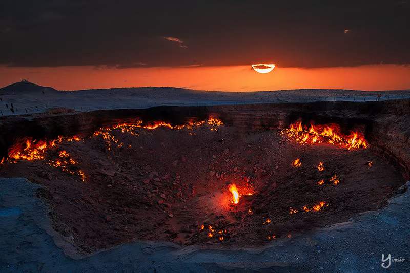 随后前往拍摄“地狱之门”——达瓦札天然气坑。1971年当前苏联地质学家进行钻探时,意外地发现了一个充满天然气的地下洞穴。钻探装置下的一片泥土倒塌,留下一个直径约50-100米的大洞。为了防止有毒气体外泄,他们决定点燃漏出来的天然气。没想到,这把火一烧就烧了47年,截至今日,这洞口的火焰从未间断过。当地人称之为"地狱之门"。我们将在此拍摄地狱之火蓝调及星空。为方便拍摄今晚将入住露营营地简易帐篷或毛毡房,营地条件一般,无法洗澡。