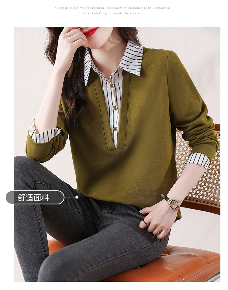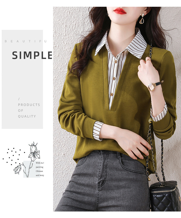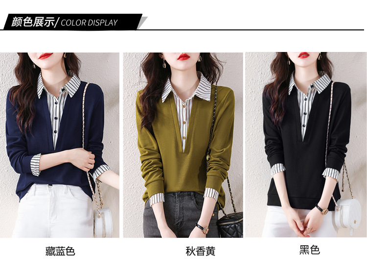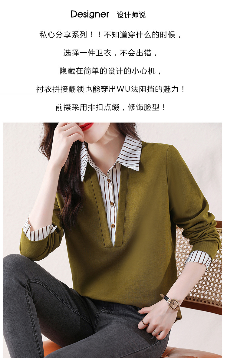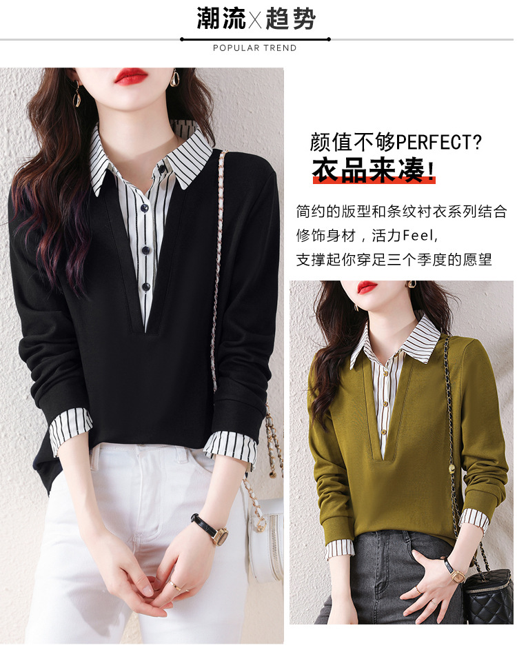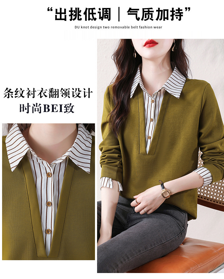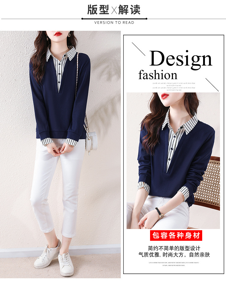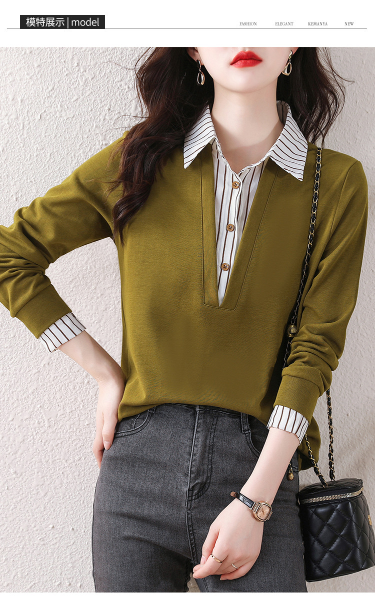 翻领假两件上衣衬衫,棉T休闲显瘦加绒小衫KQL-A77N8277