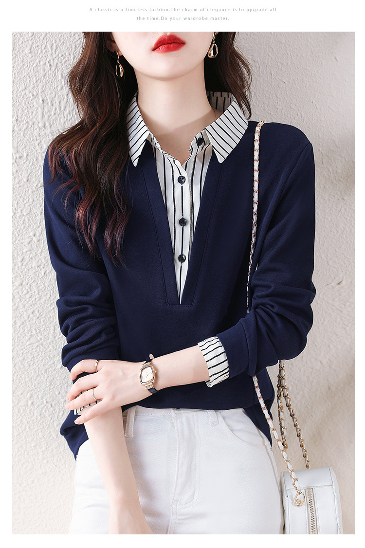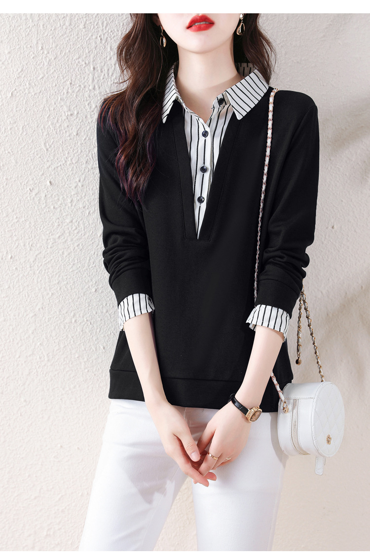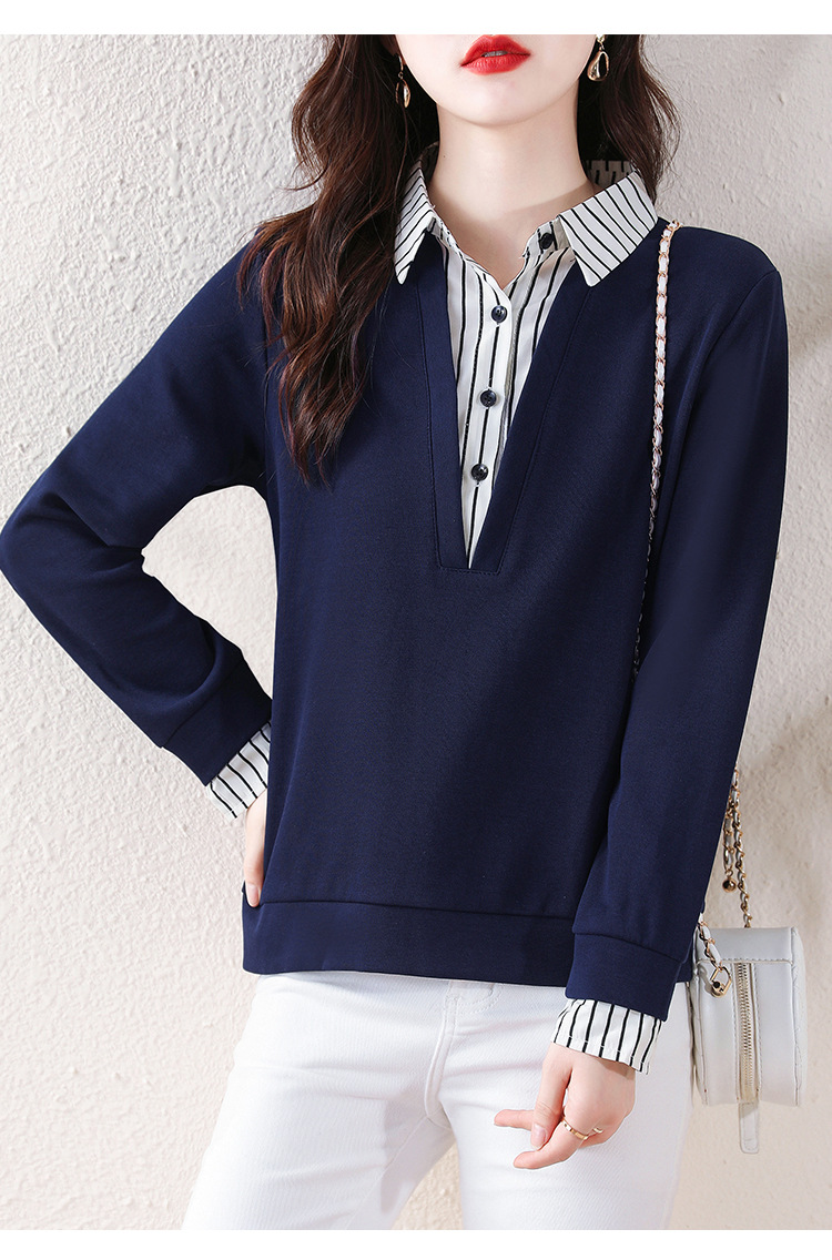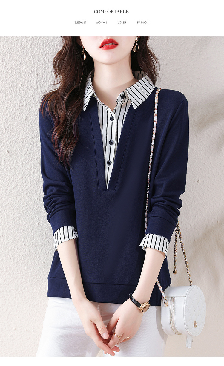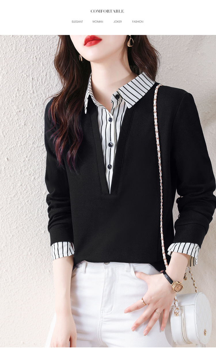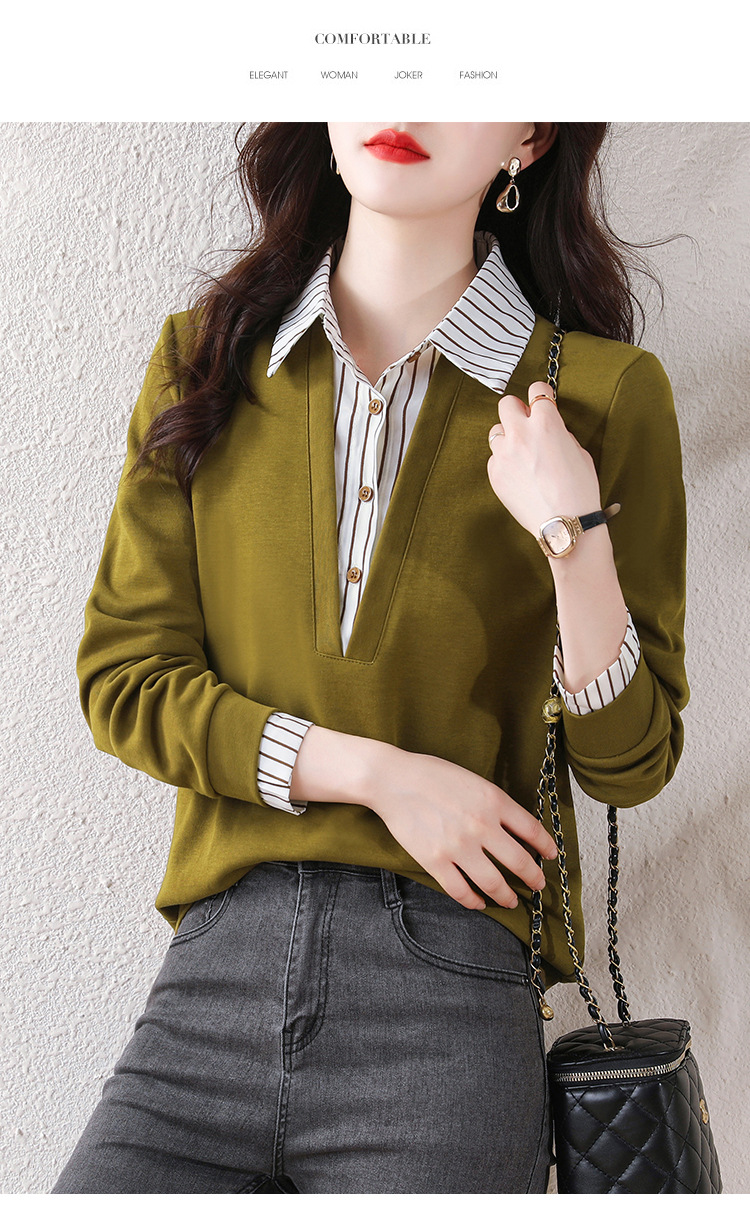 翻领假两件上衣衬衫,棉T休闲显瘦加绒小衫KQL-A77N8277