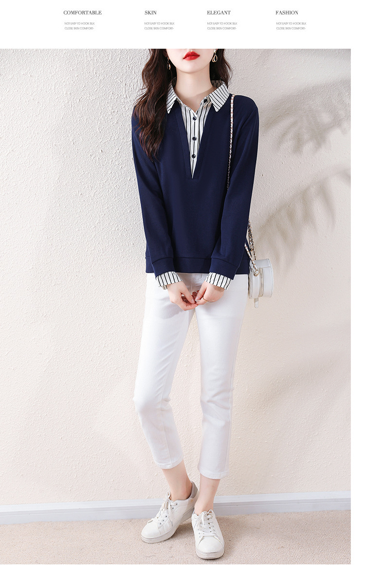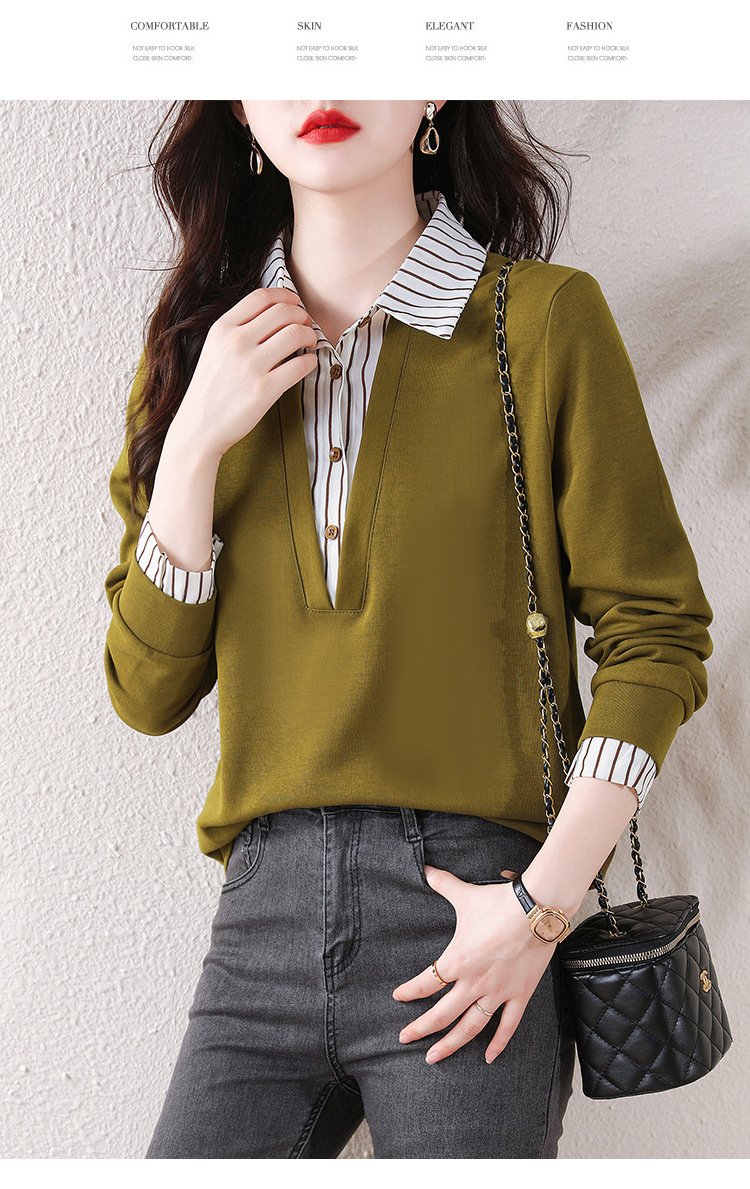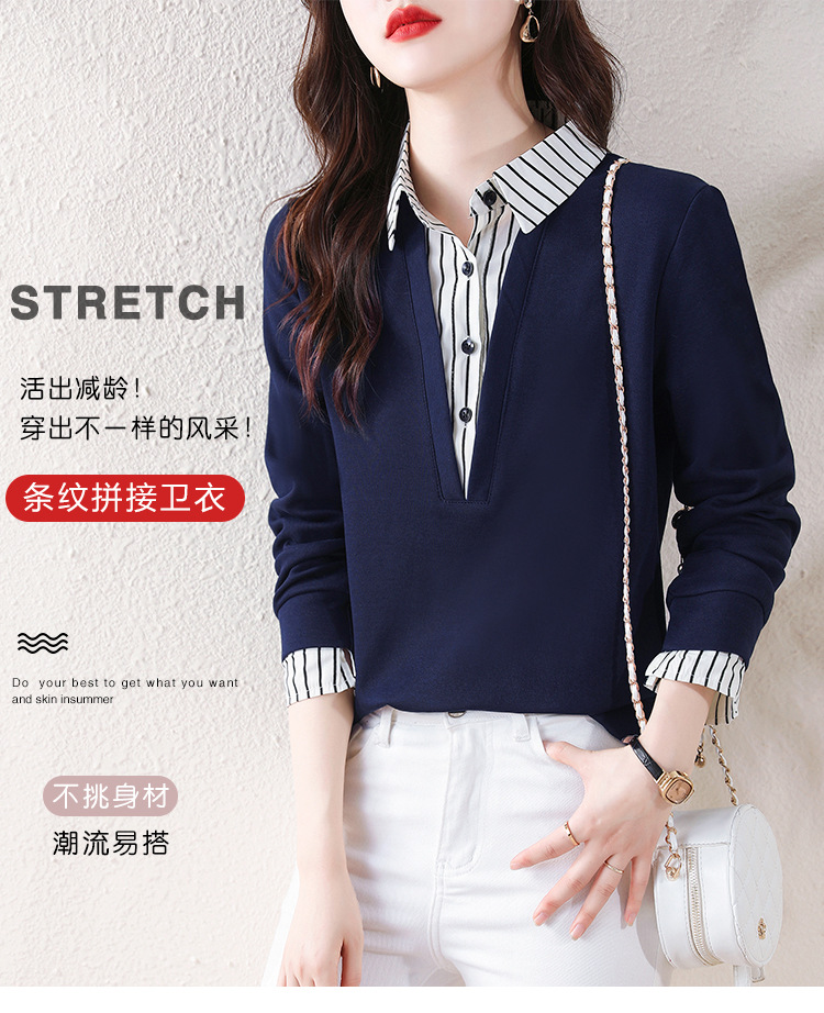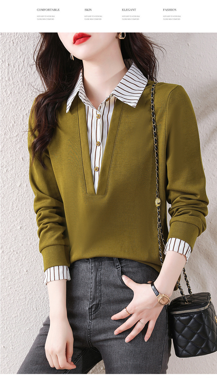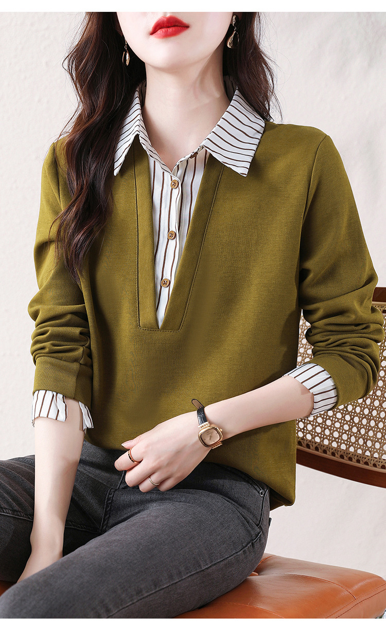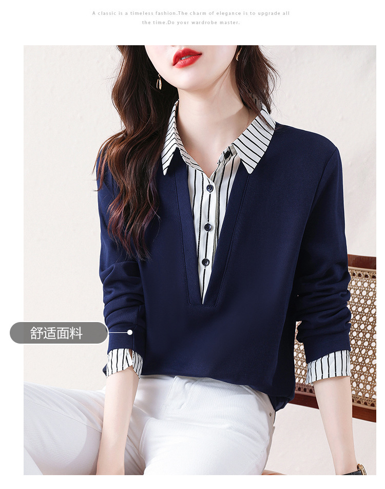 翻领假两件上衣衬衫,棉T休闲显瘦加绒小衫KQL-A77N8277