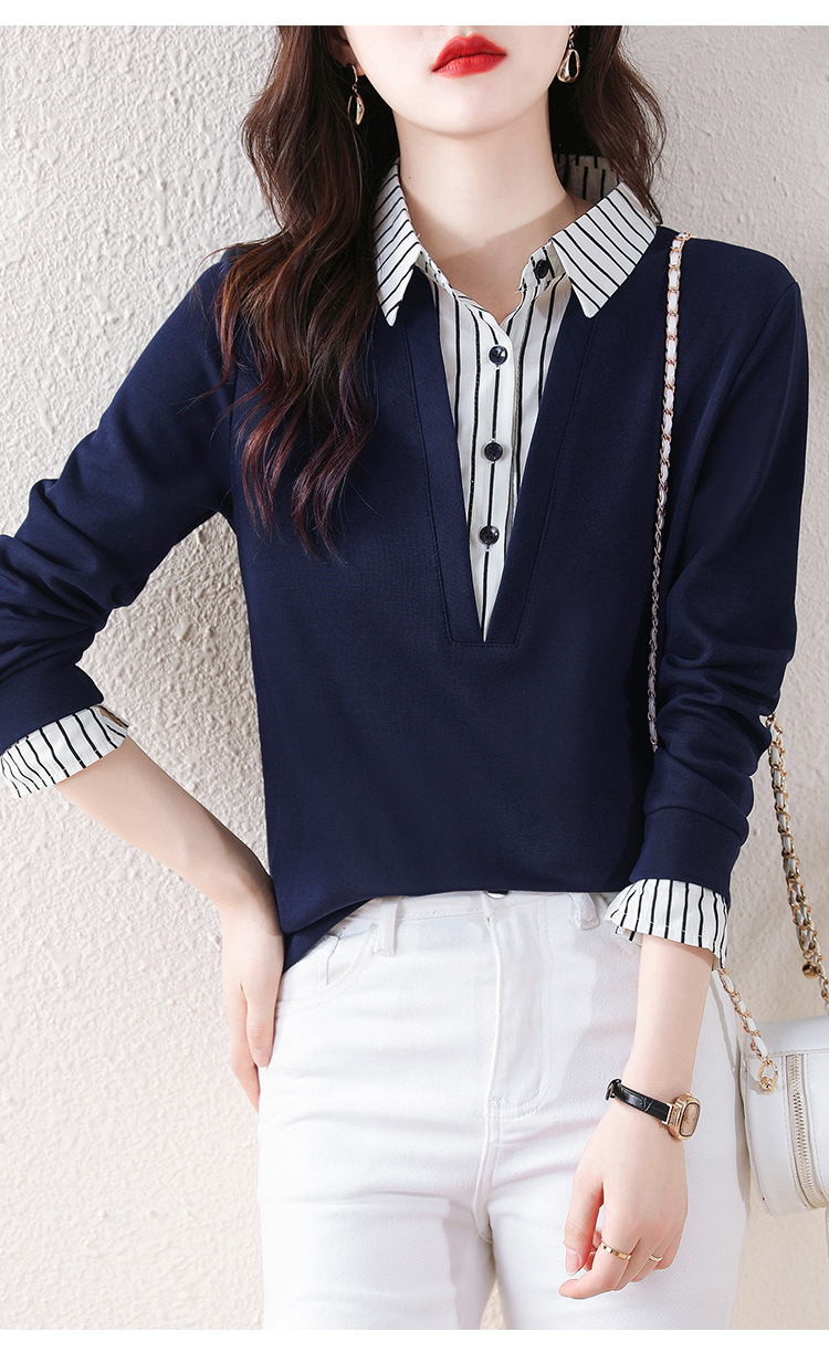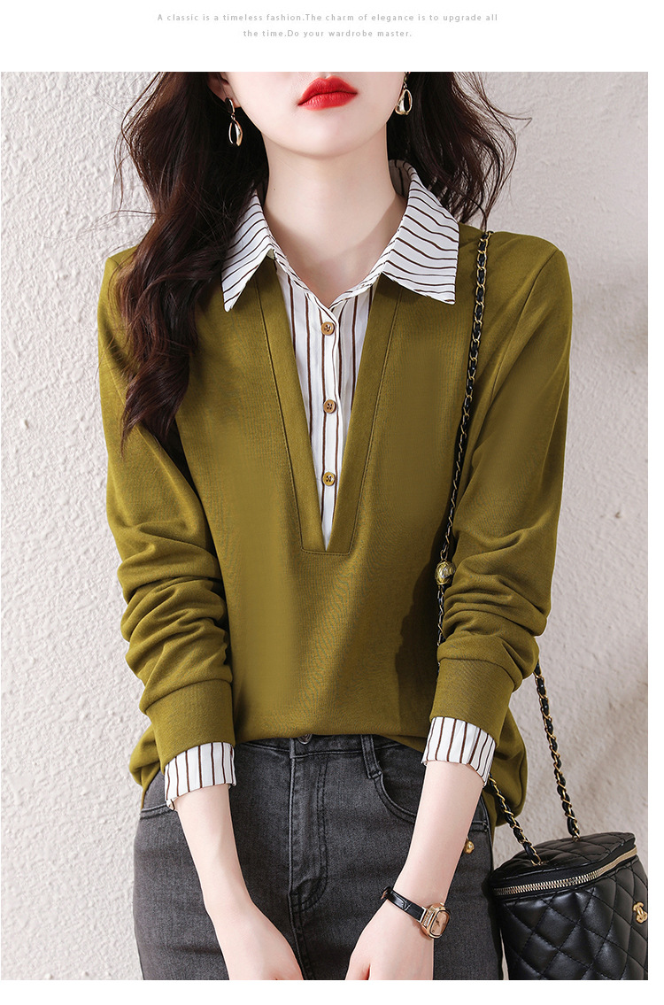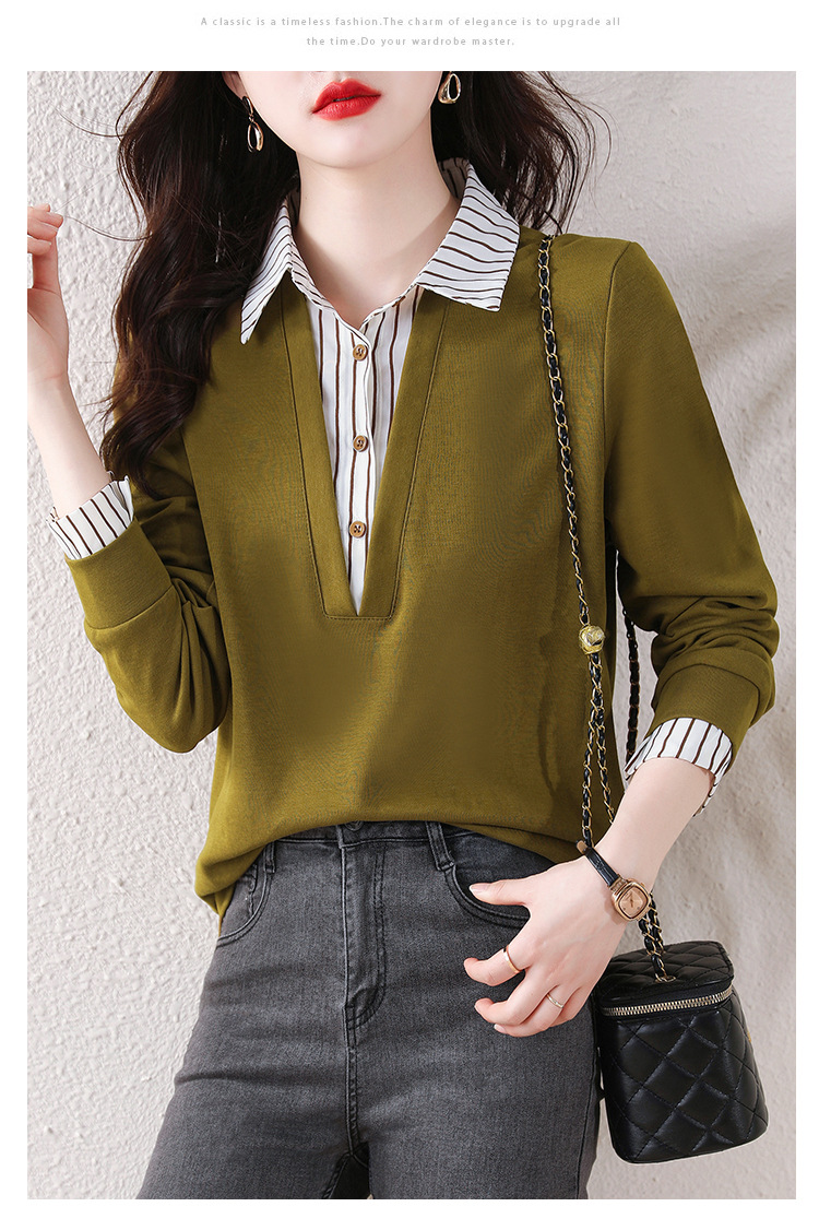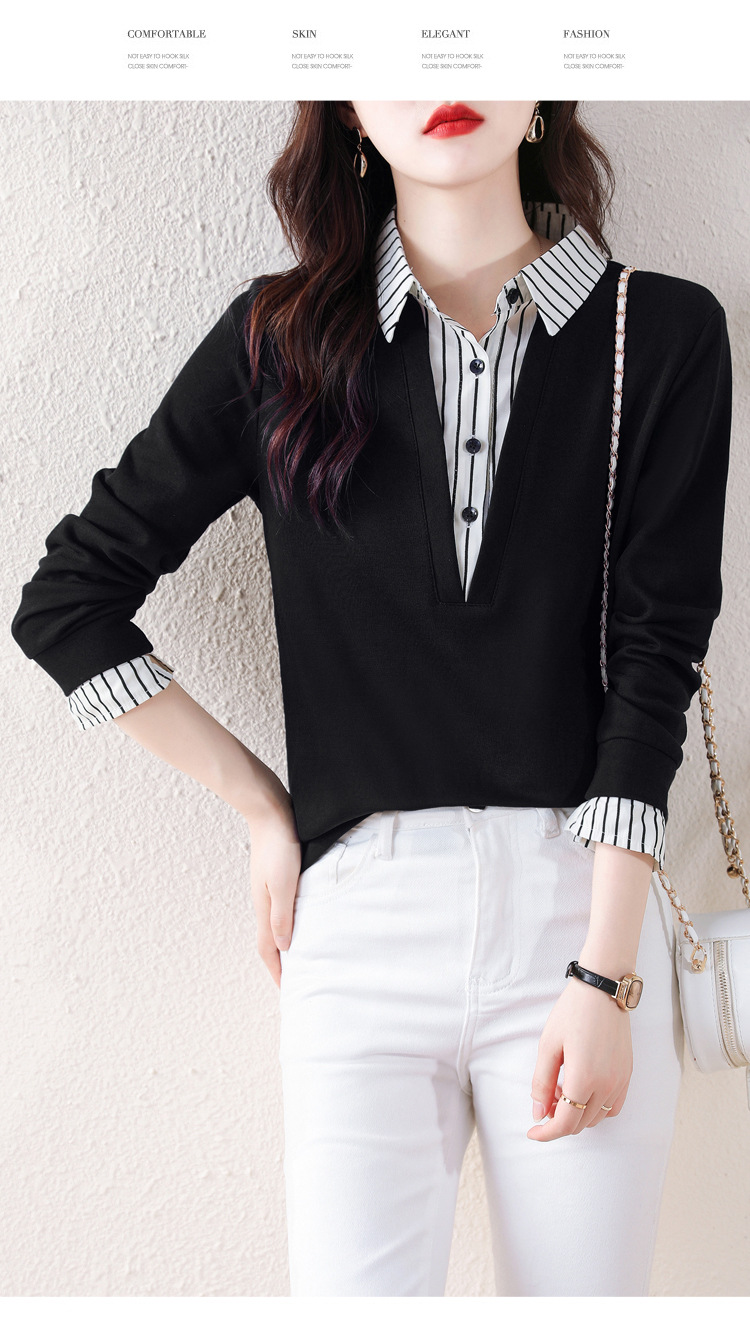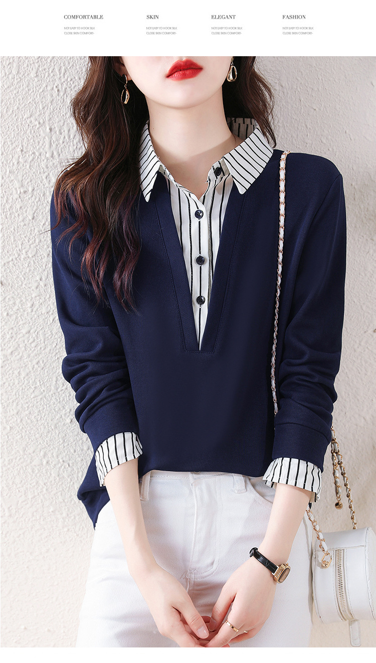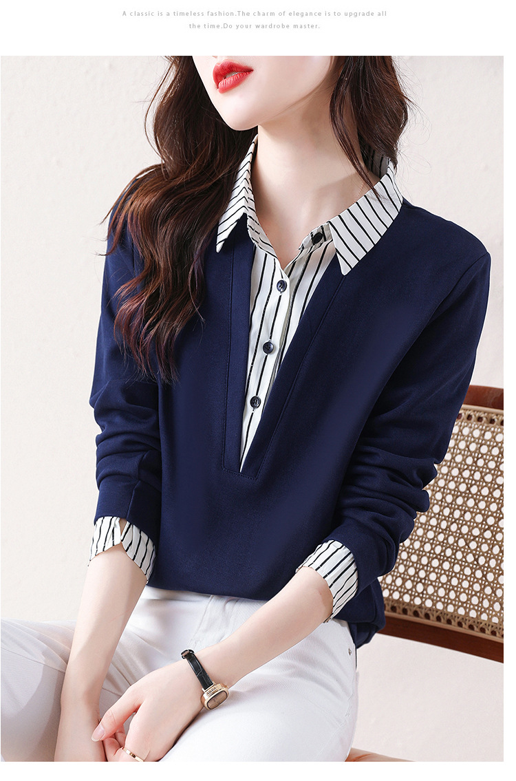 翻领假两件上衣衬衫,棉T休闲显瘦加绒小衫KQL-A77N8277