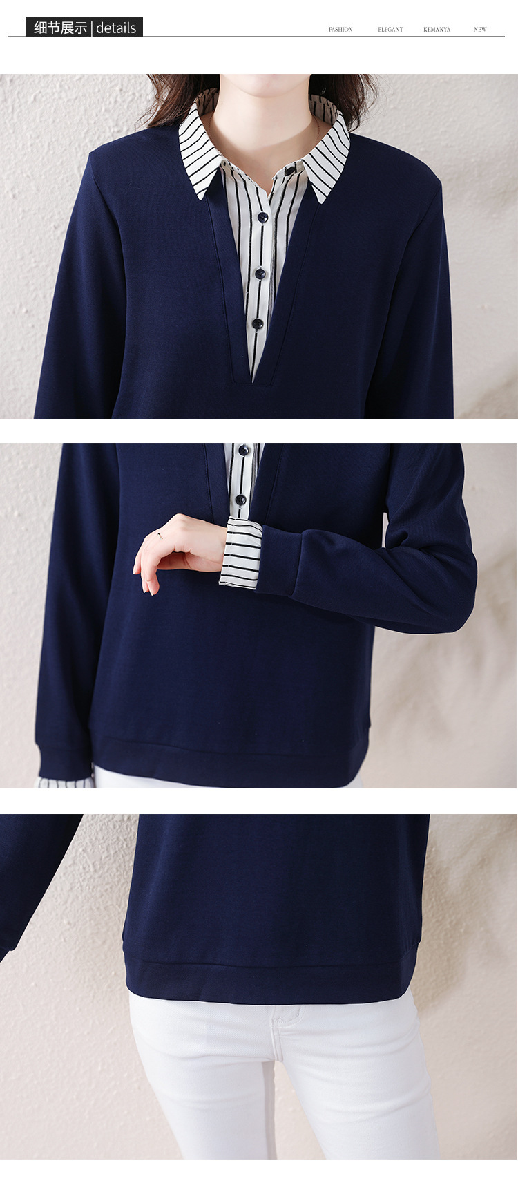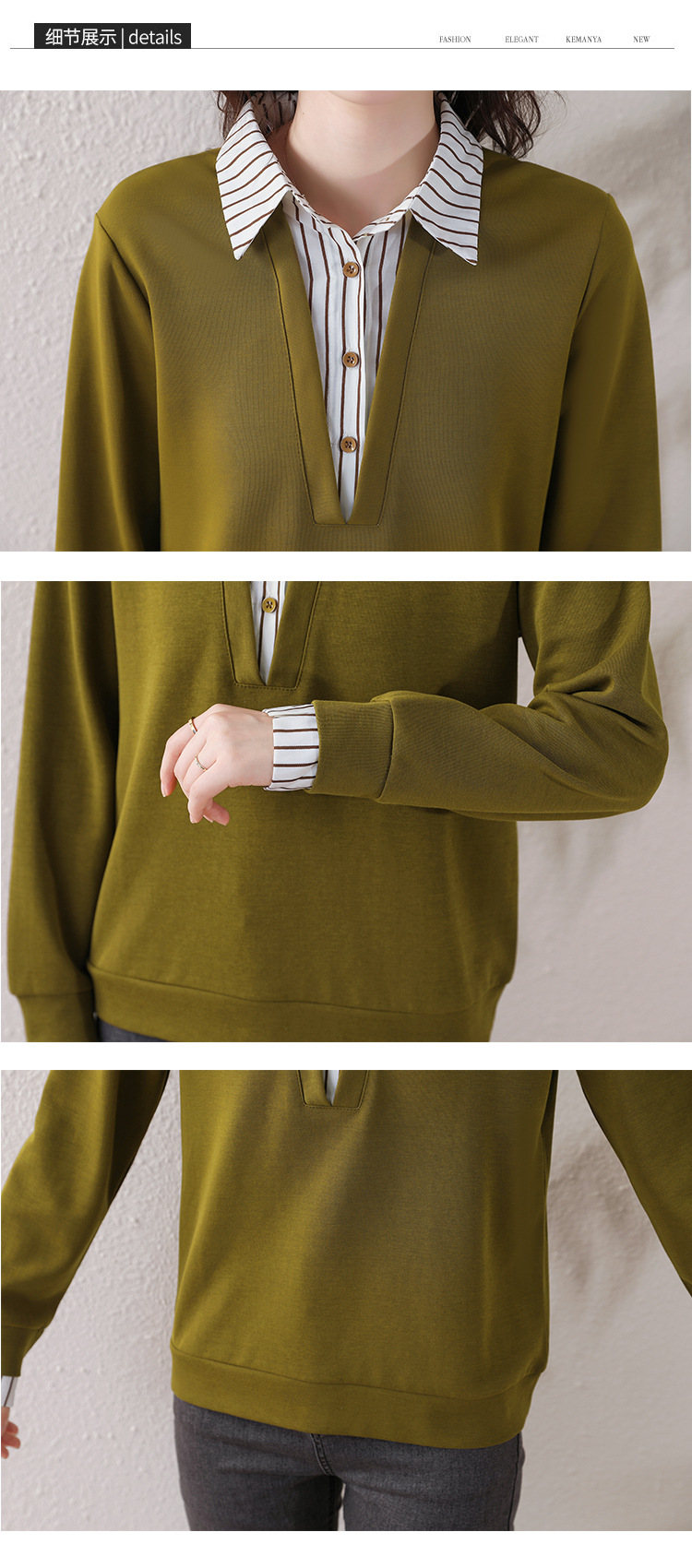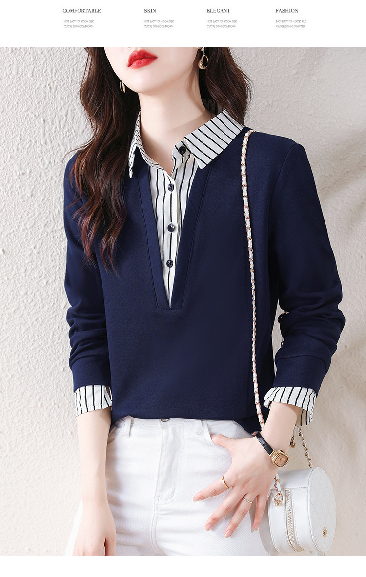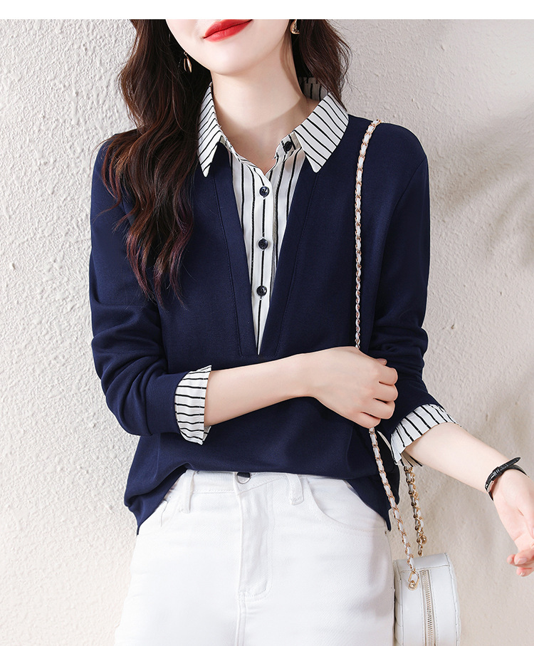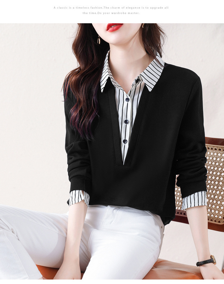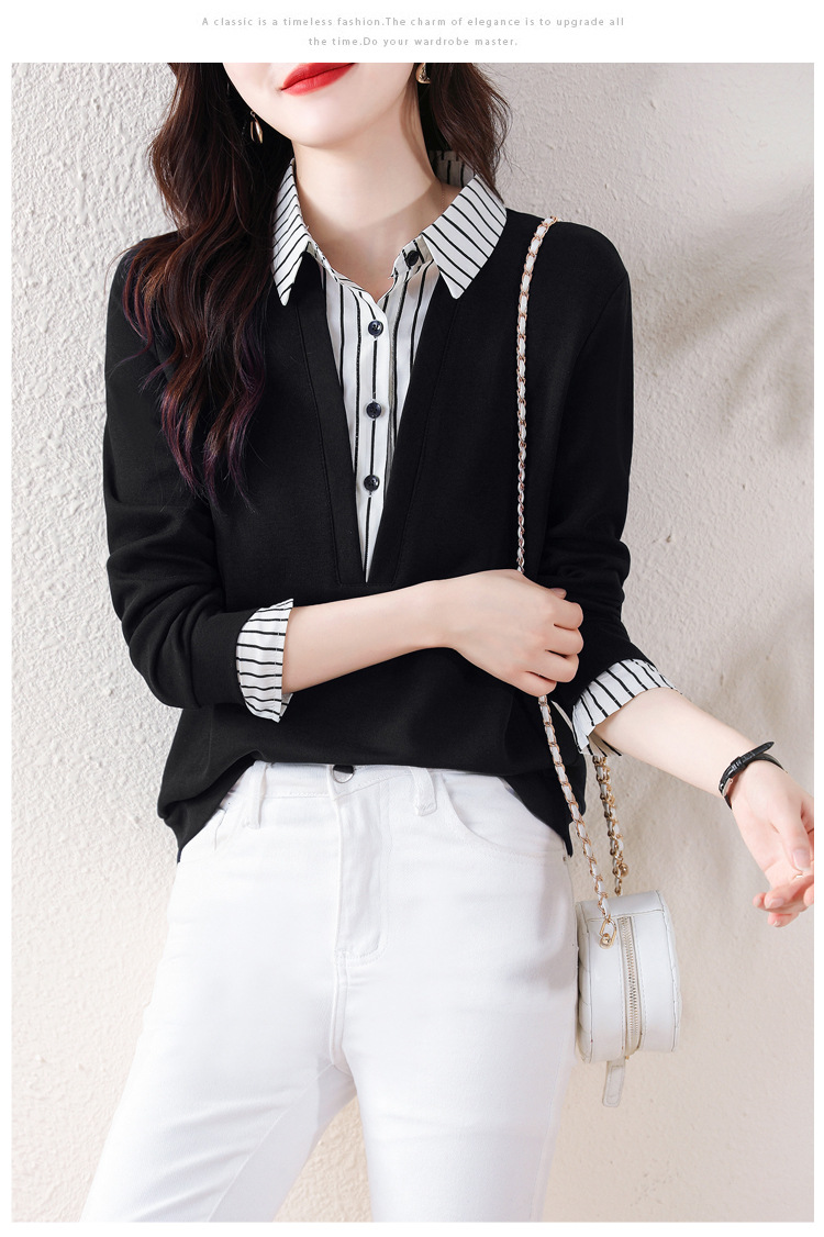 翻领假两件上衣衬衫,棉T休闲显瘦加绒小衫KQL-A77N8277