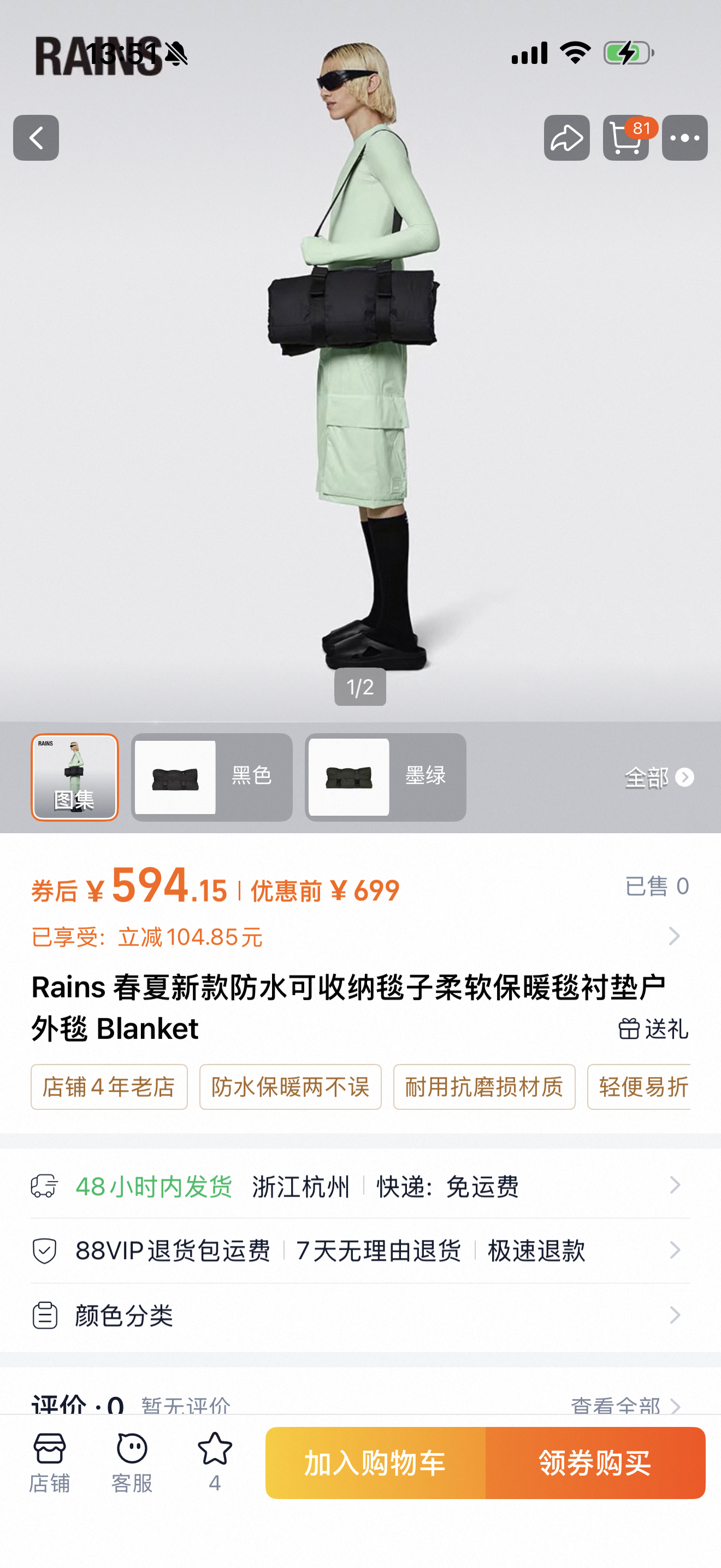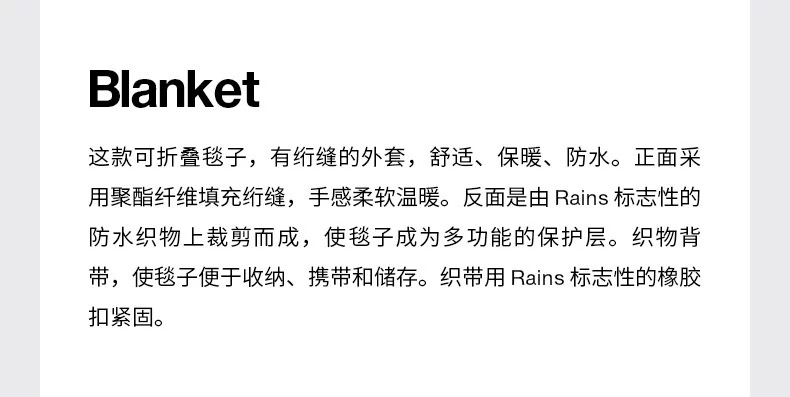说明:一面防水面料,一面绒布面料,内里夹薄棉,柔软舒适,可盖可垫。放条在车里,自驾,露营或者午休都很实用。有个带锁扣的背带,方便收纳携带,吊牌价699元。天猫在售594元。我们卖个零头而已。主洗标齐全,绝大部分带吊牌带原包装,偶有缺失不纠结。好几个颜色,陆续整理上库存。