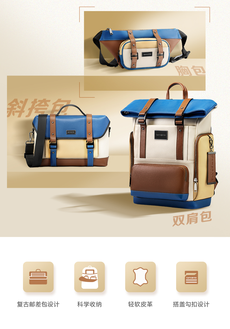 新秀丽LUCIA系列复古款休闲旅行,时尚潮流旅行多用包 TM7*009