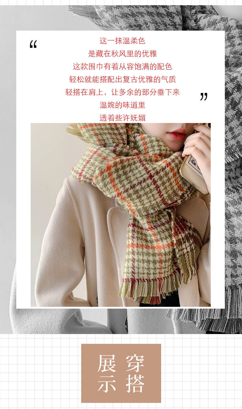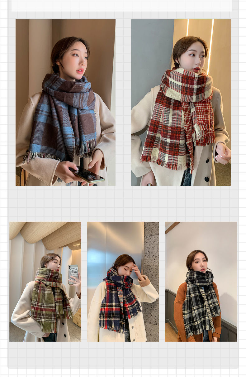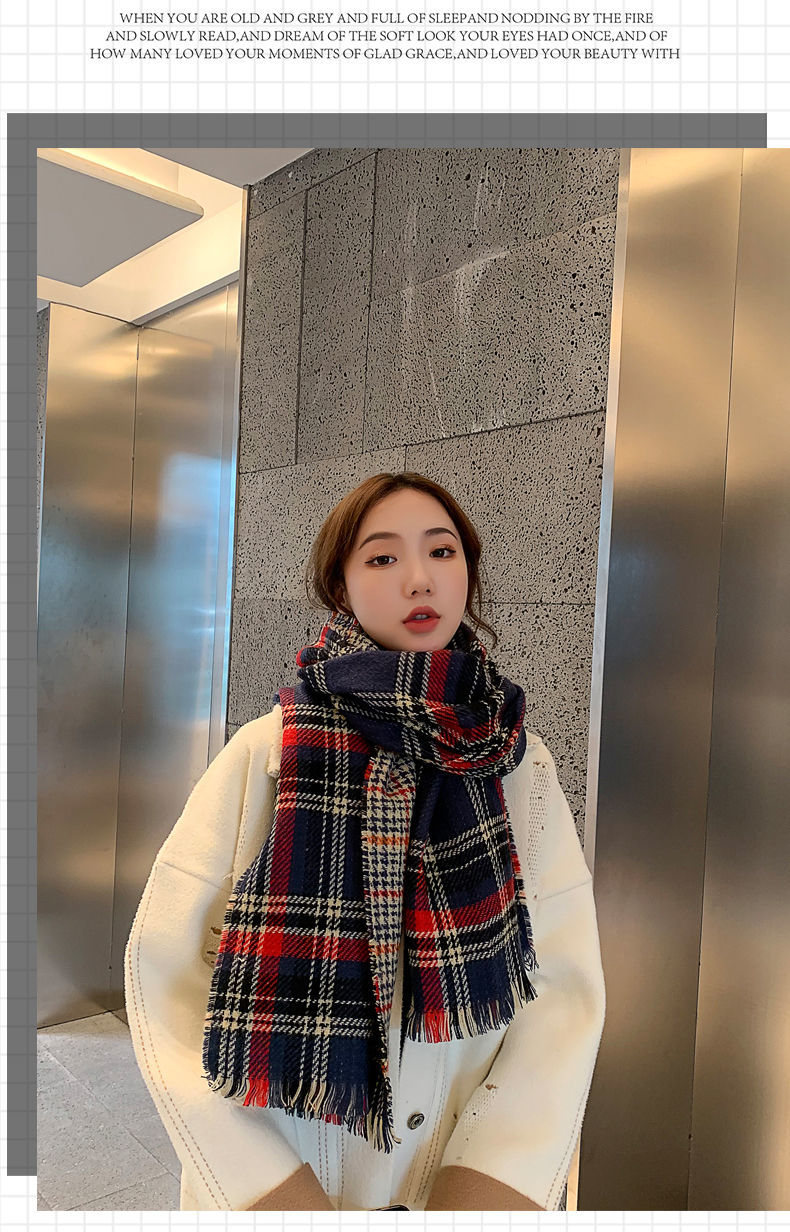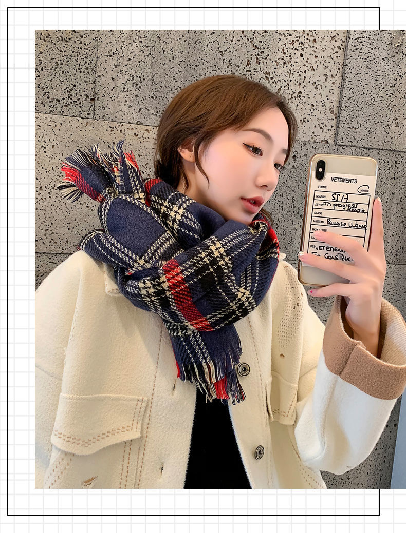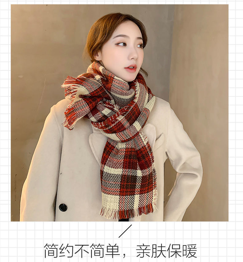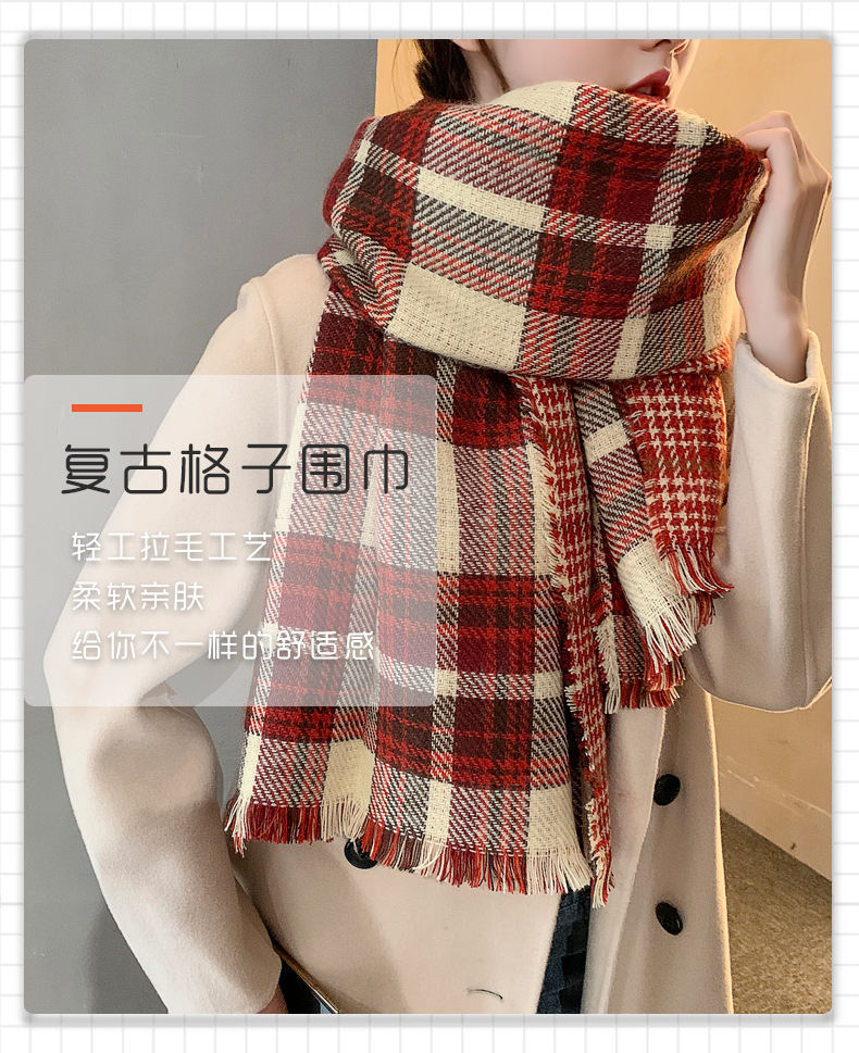 韩版圣诞红双面格子围巾女秋冬季百搭长款加厚学生可爱网红围脖七夕情人节