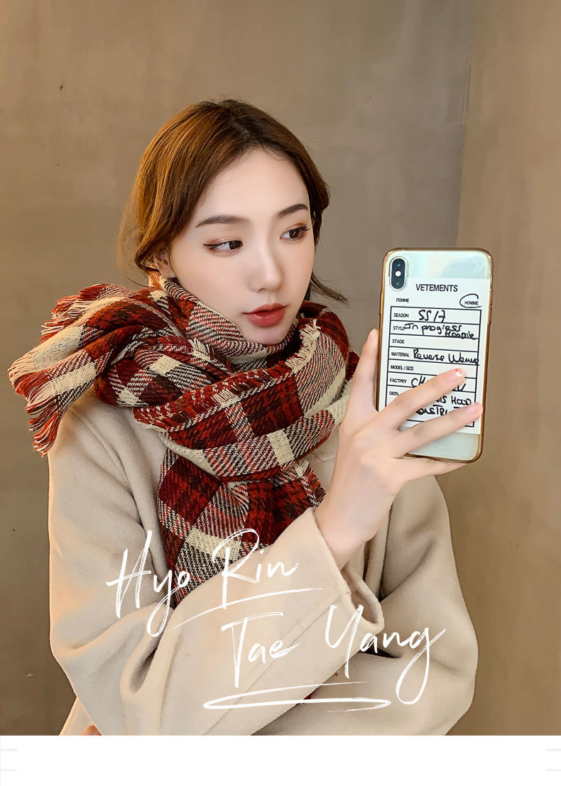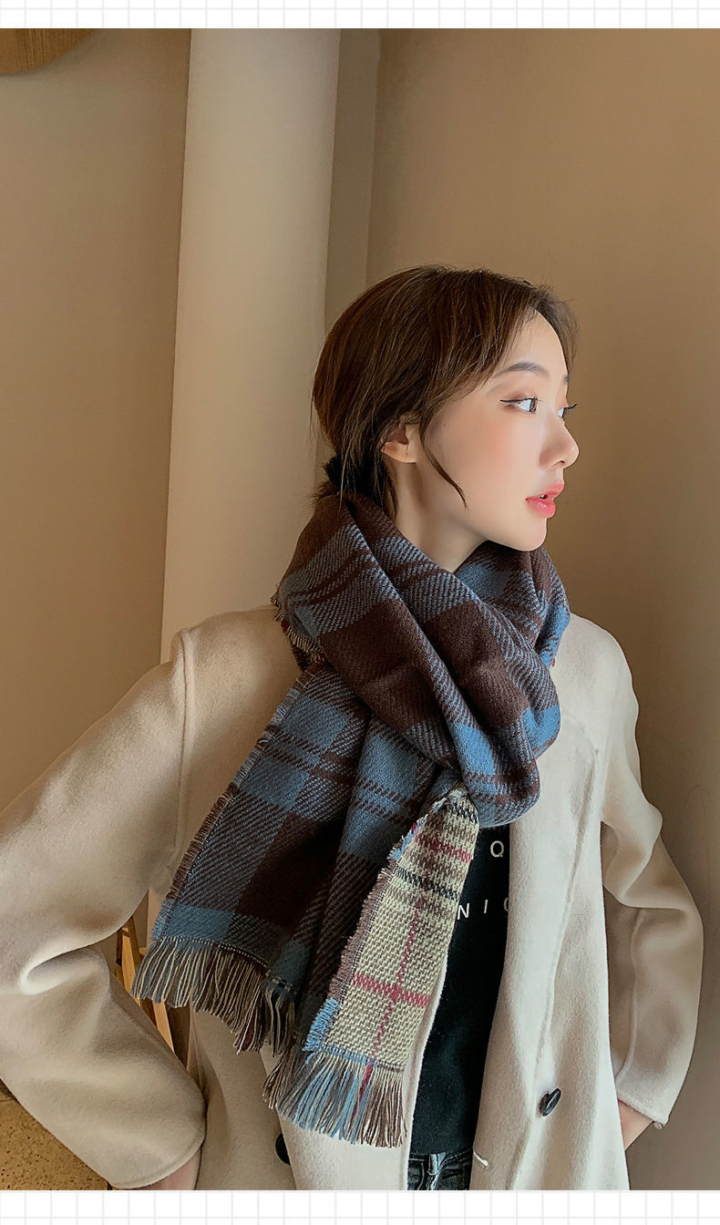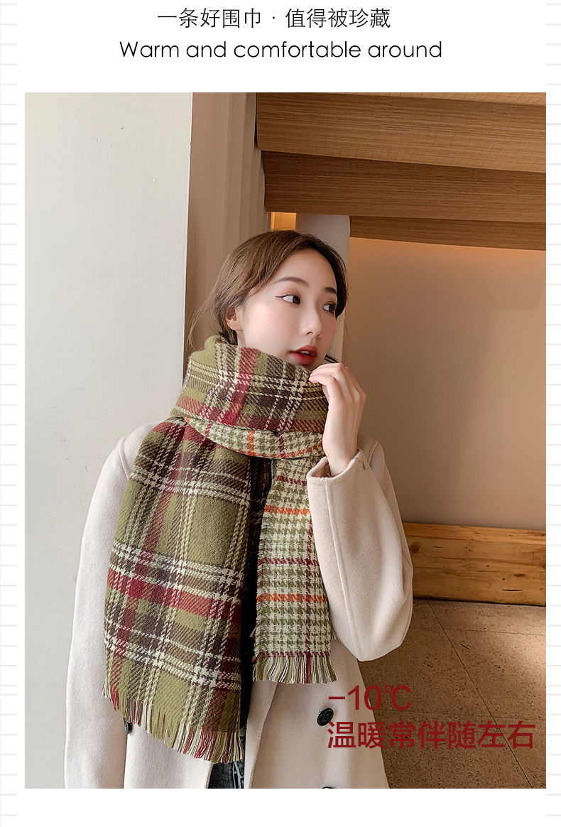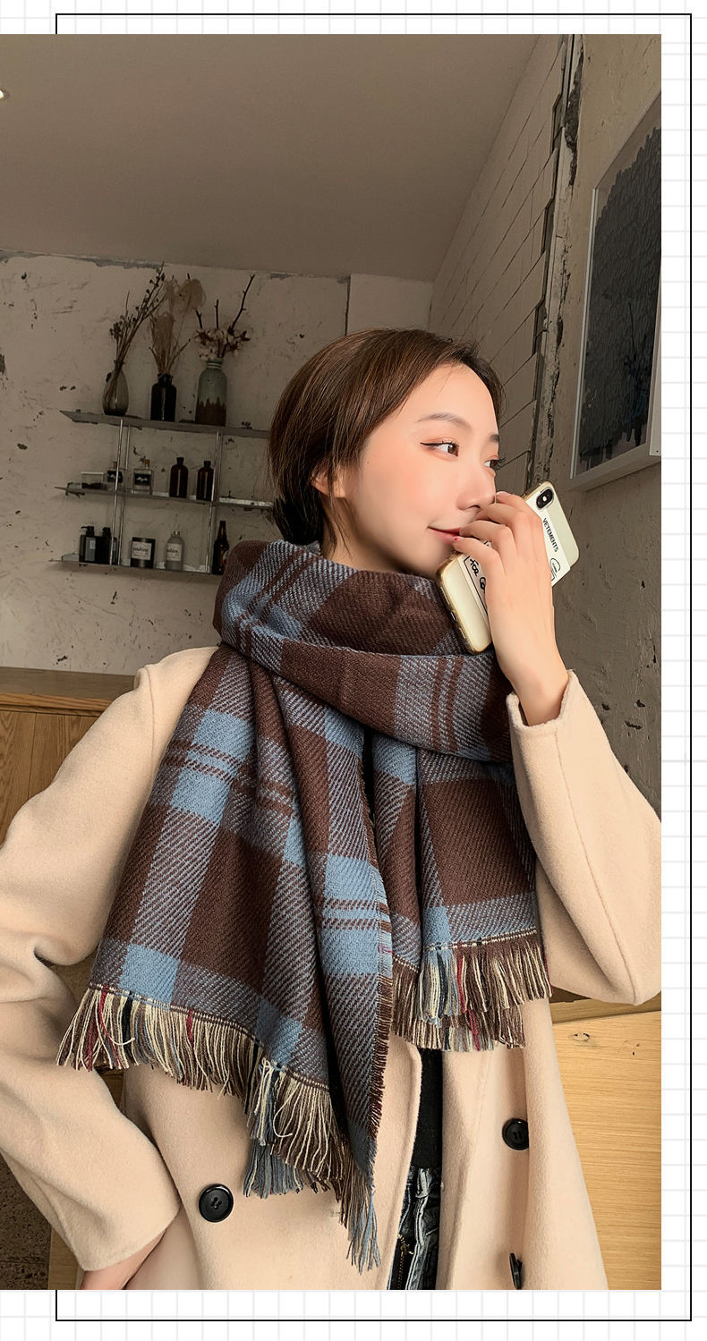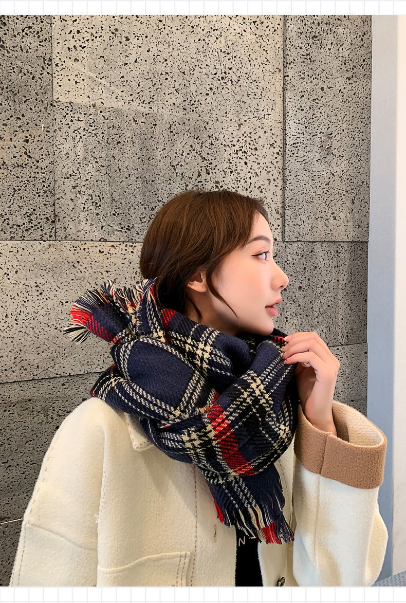 韩版圣诞红双面格子围巾女秋冬季百搭长款加厚学生可爱网红围脖七夕情人节