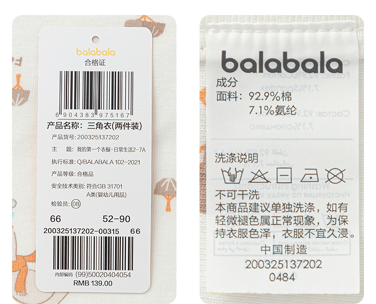 【商场同款】巴拉巴拉婴儿连体衣三角衣2025新款两件装文艺清新萌