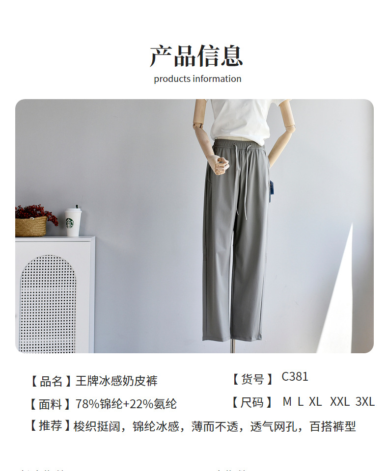 【专柜大牌品质】【王牌奶皮裤】男女同款夏薄锦纶冰感直筒九分防晒透气孔休闲裤