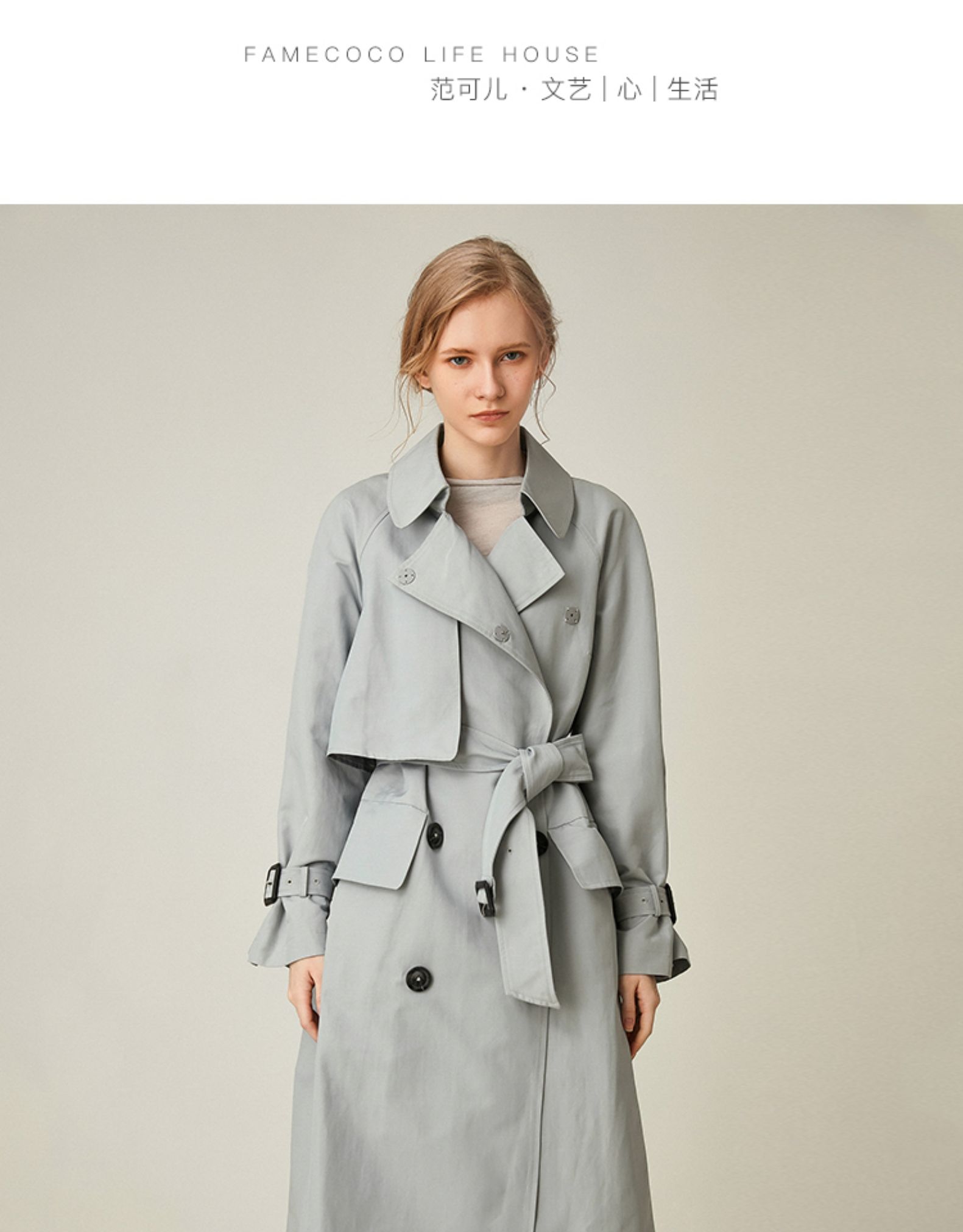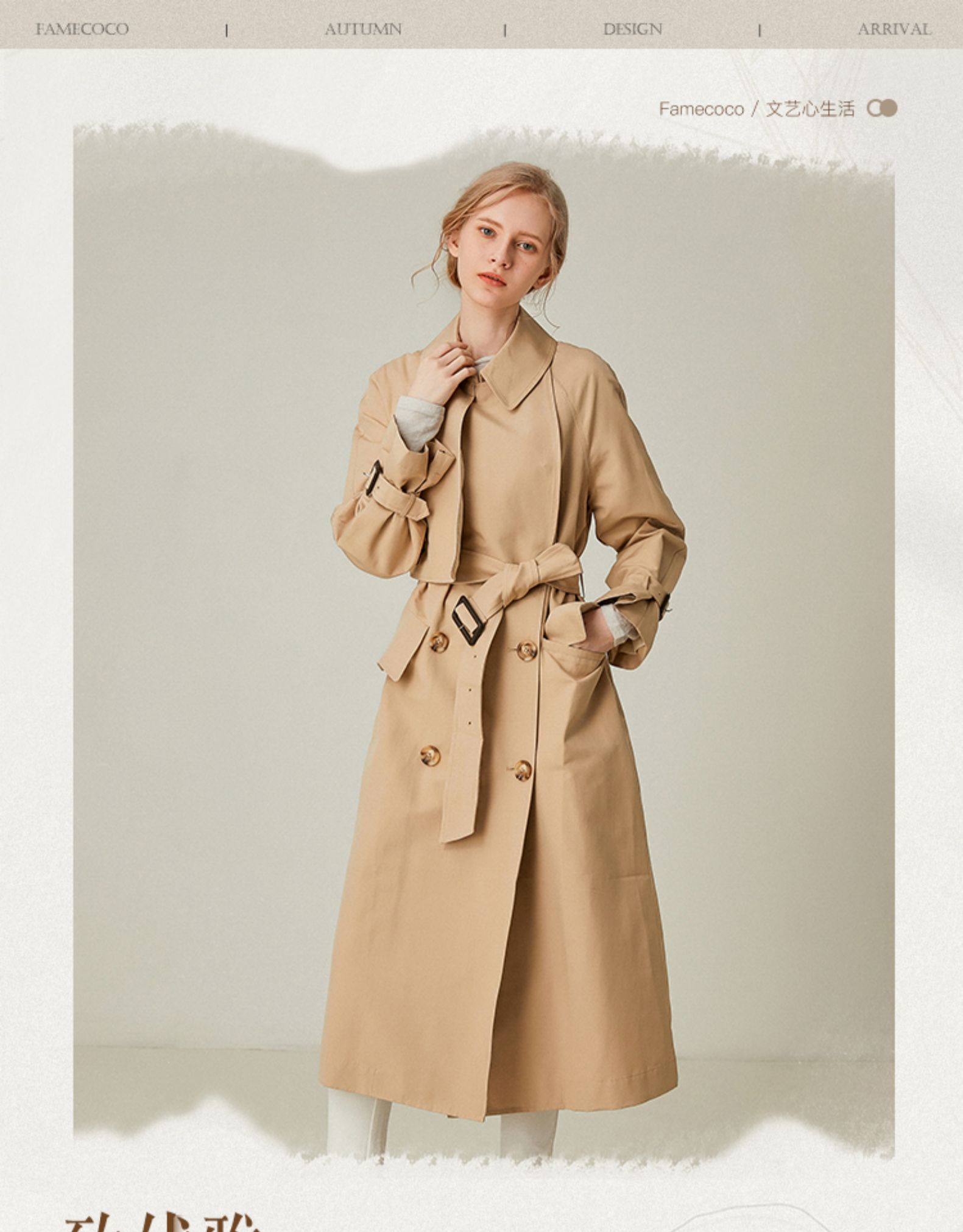 Famecoco范可儿高端大气风衣中长款秋季过膝收腰气质外套F195AA018