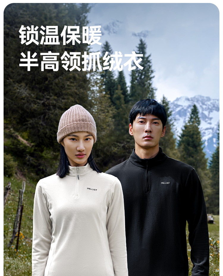 伯希和户外抓绒衣女冲锋衣内胆摇粒绒半拉链运动打底衫男休闲上衣