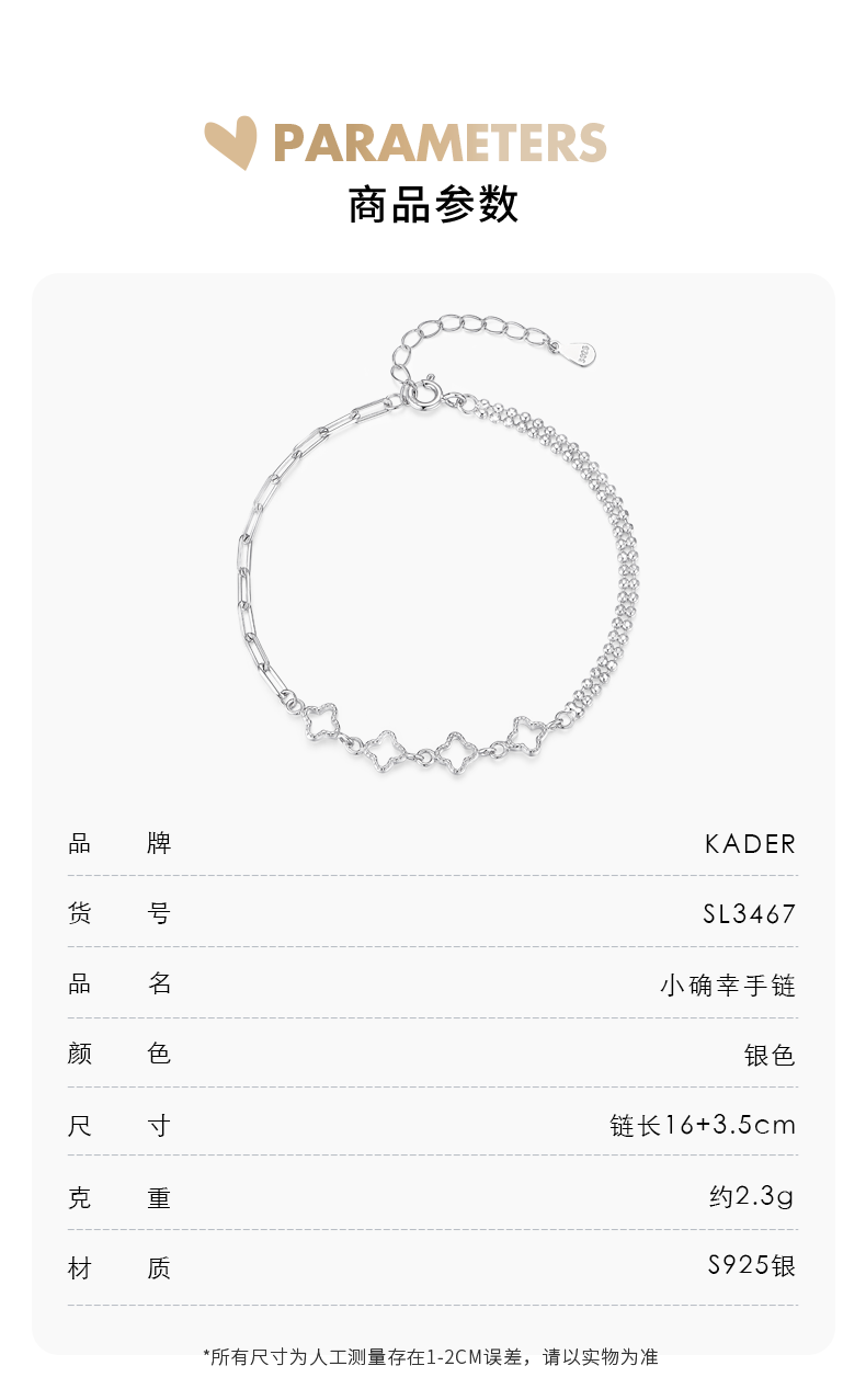 卡蒂罗/KADER 小确幸手链 925银经典四叶草造型璀璨好运镂空设计手饰 清新简约时尚典雅大气配饰 母亲节 礼盒
