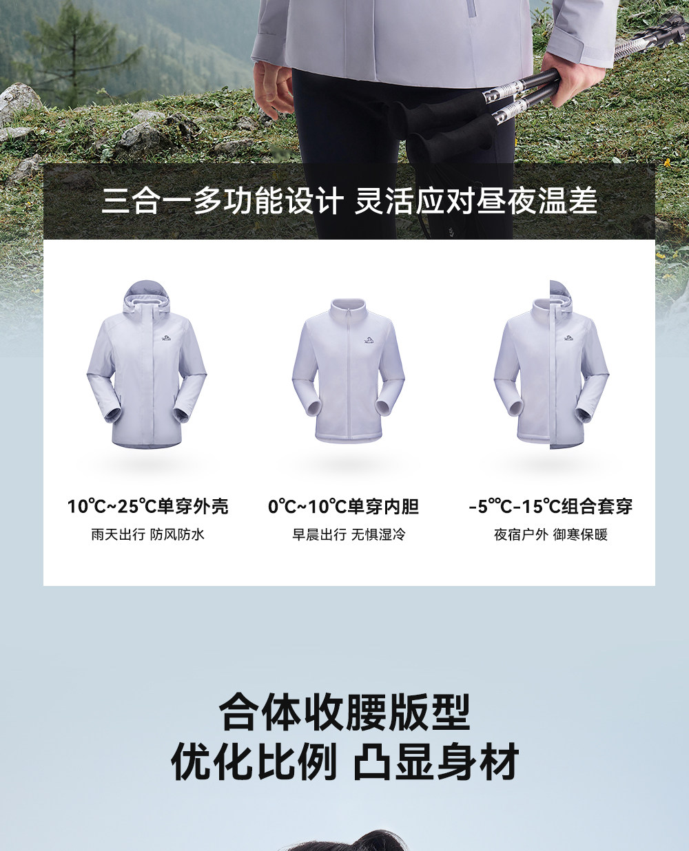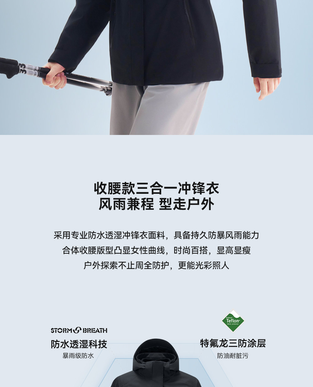 伯希和户外三合一冲锋衣女防风摇粒绒内胆Teflon防水收腰登山外套